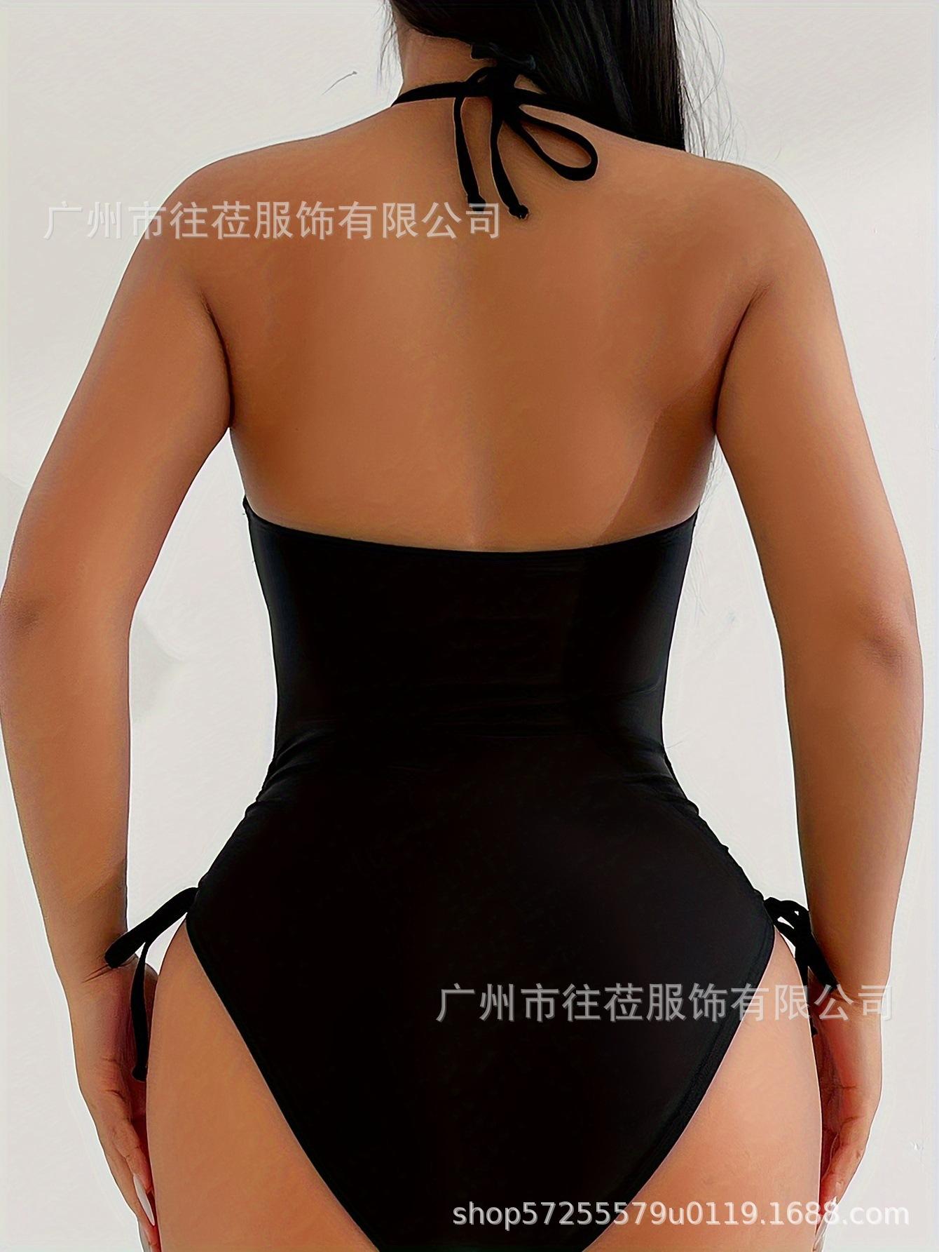 Traje de Baño Entero Estampado Nuevo Europeo y Americano Transfronterizo 2025 Sexy Ajustado con Cordón Bikini Traje de Baño Amazon