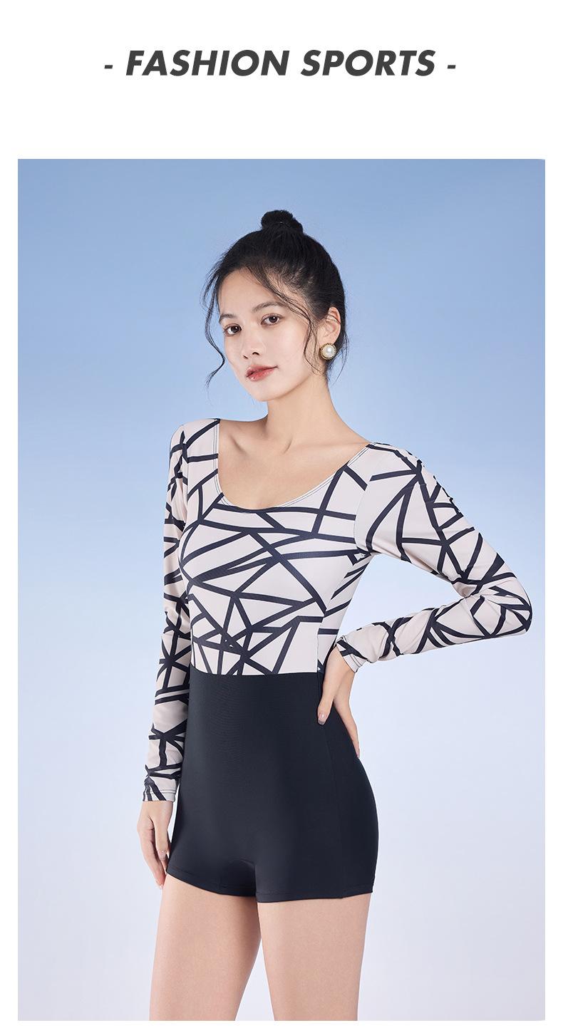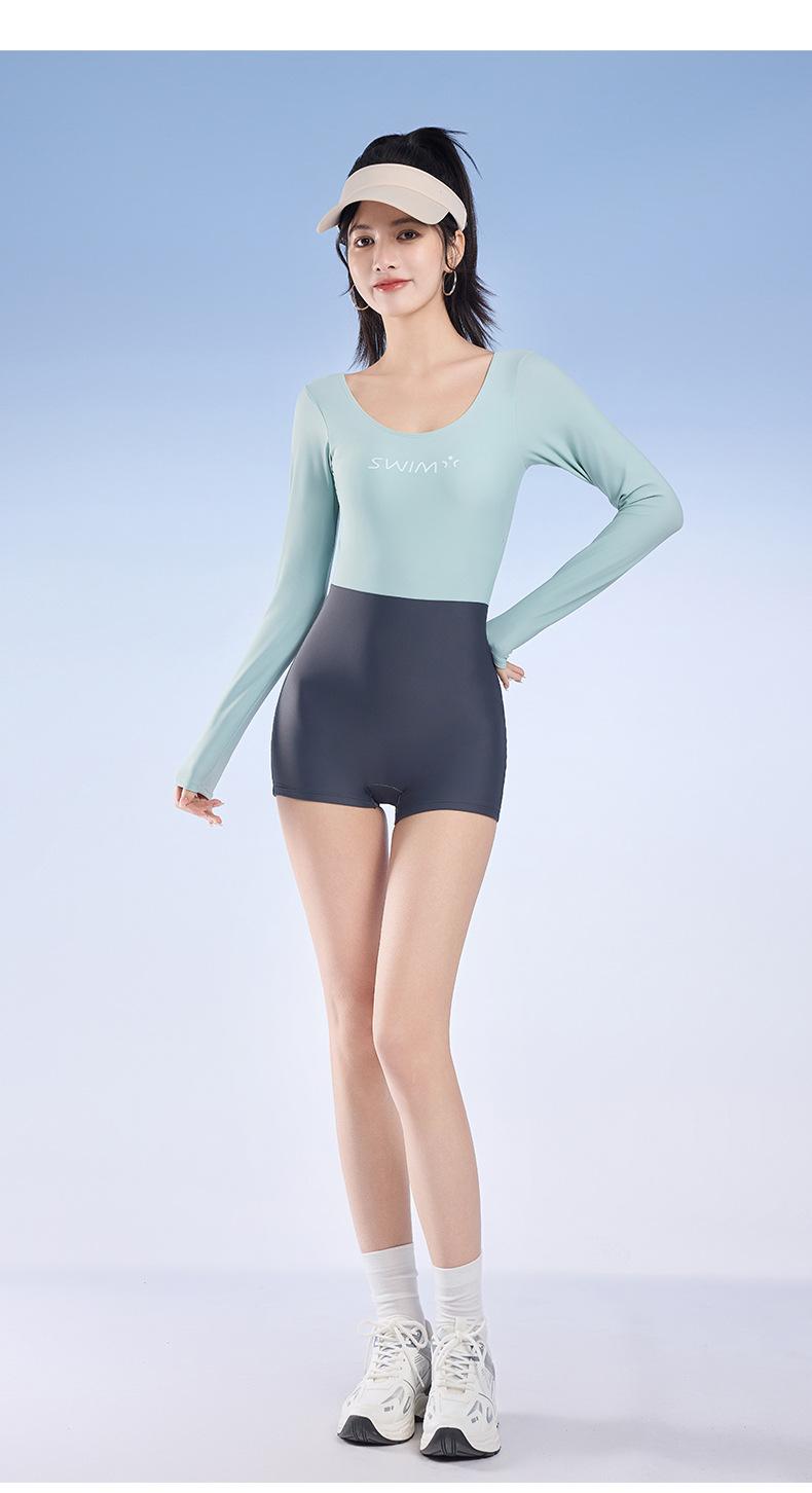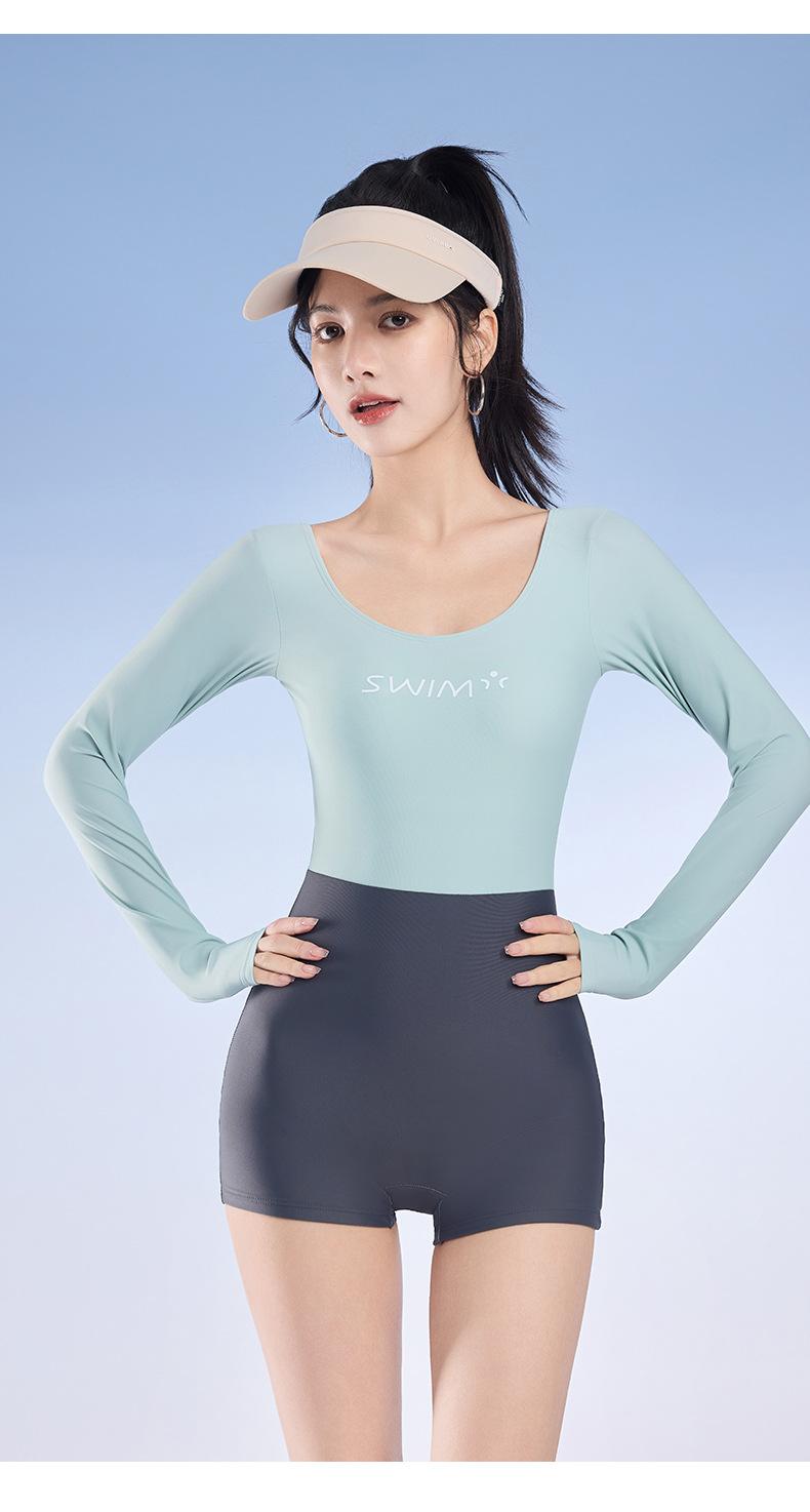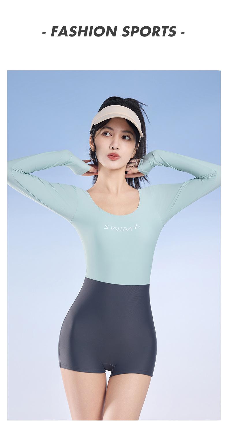 Traje de Baño de Una Pieza Estilo Coreano Adelgazante de Secado Rápido de Manga Larga Conservador Tipo Bóxer para Mujer para Surf y Snorkel Traje de Baño de Talla Grande