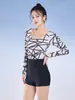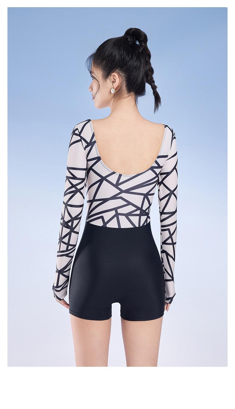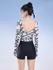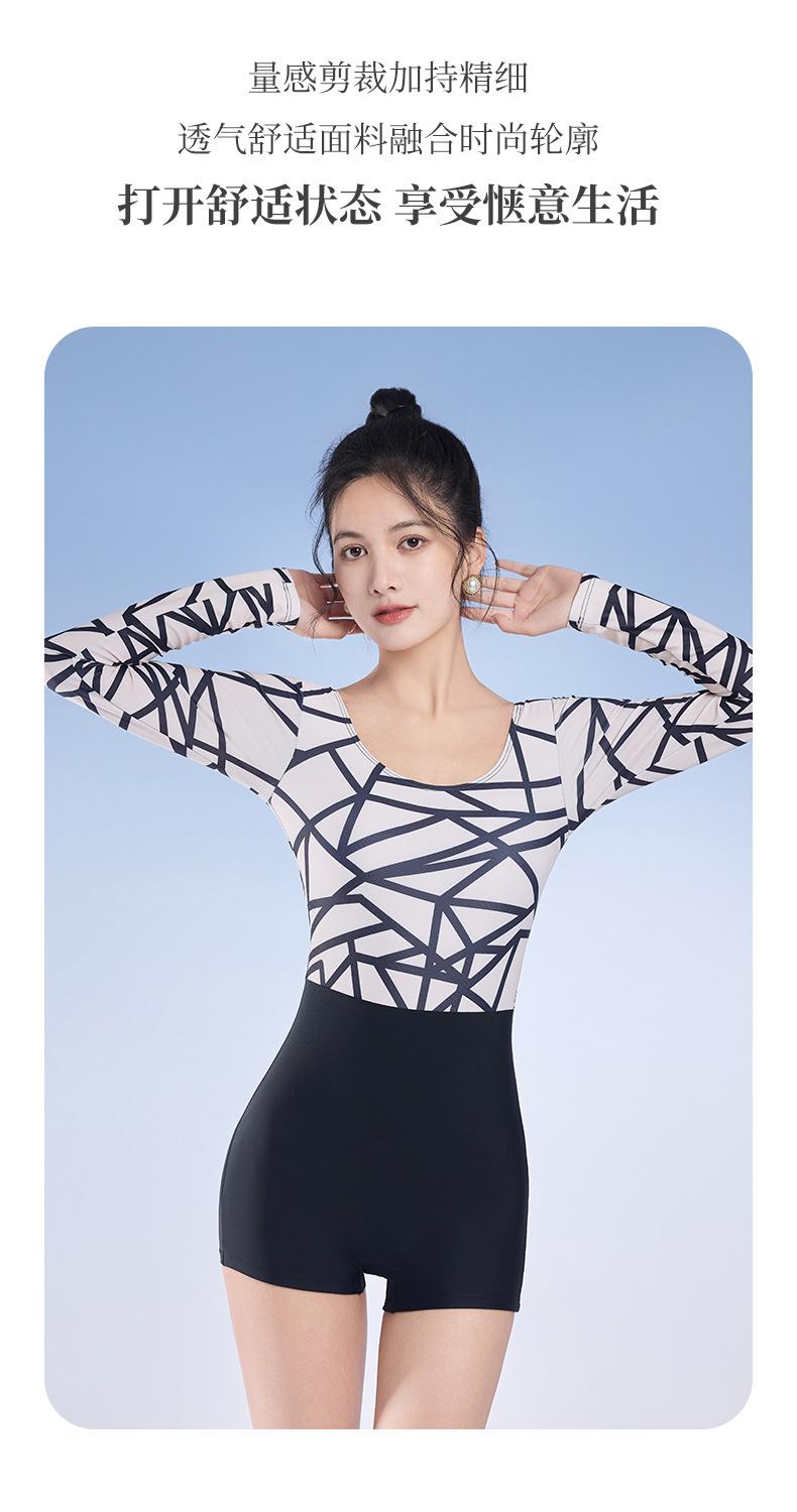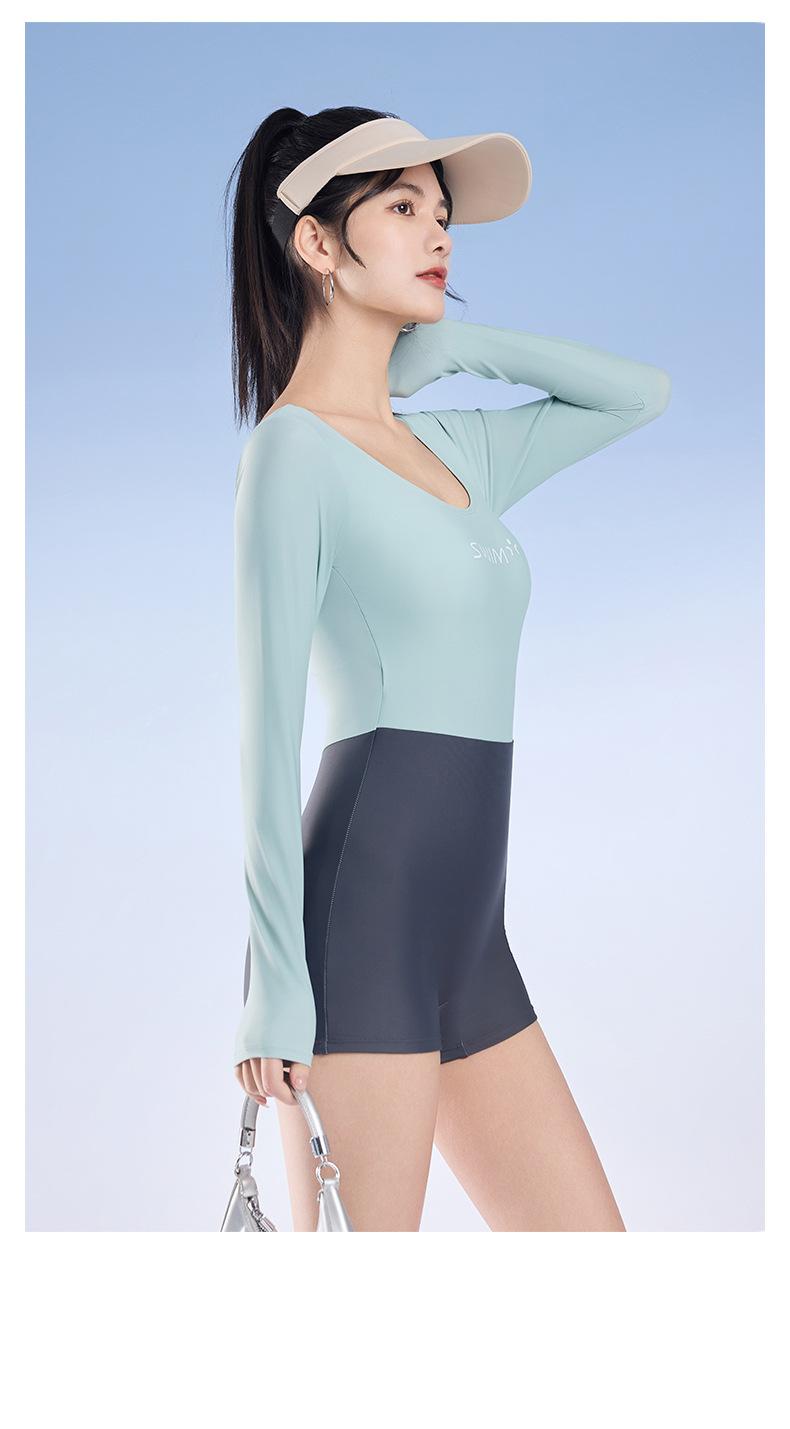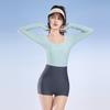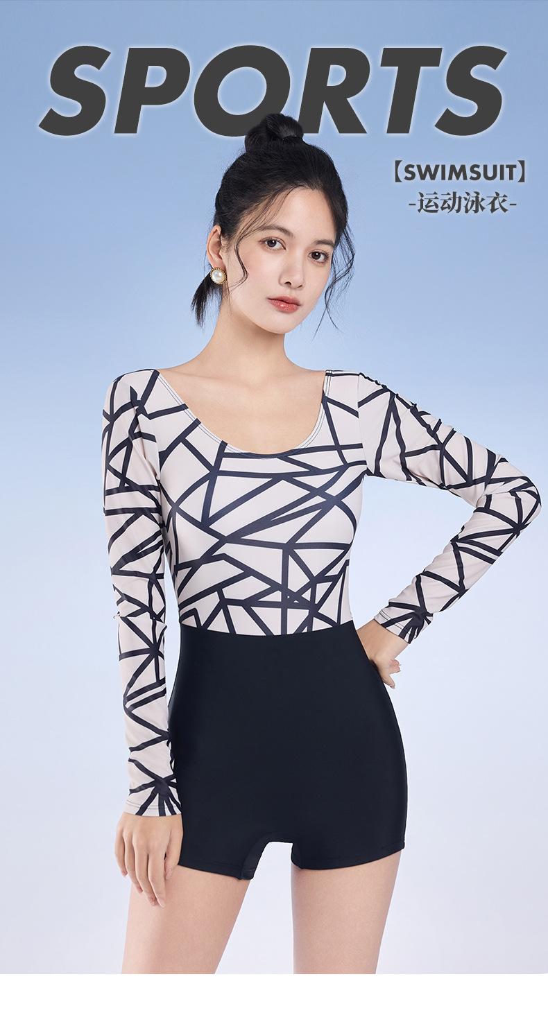 Traje de Baño de Una Pieza Estilo Coreano Adelgazante de Secado Rápido de Manga Larga Conservador Tipo Bóxer para Mujer para Surf y Snorkel Traje de Baño de Talla Grande