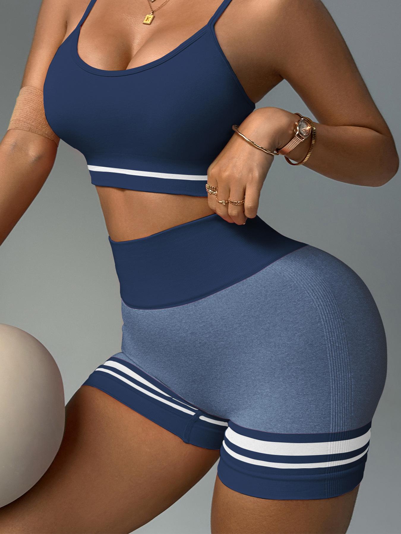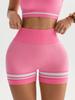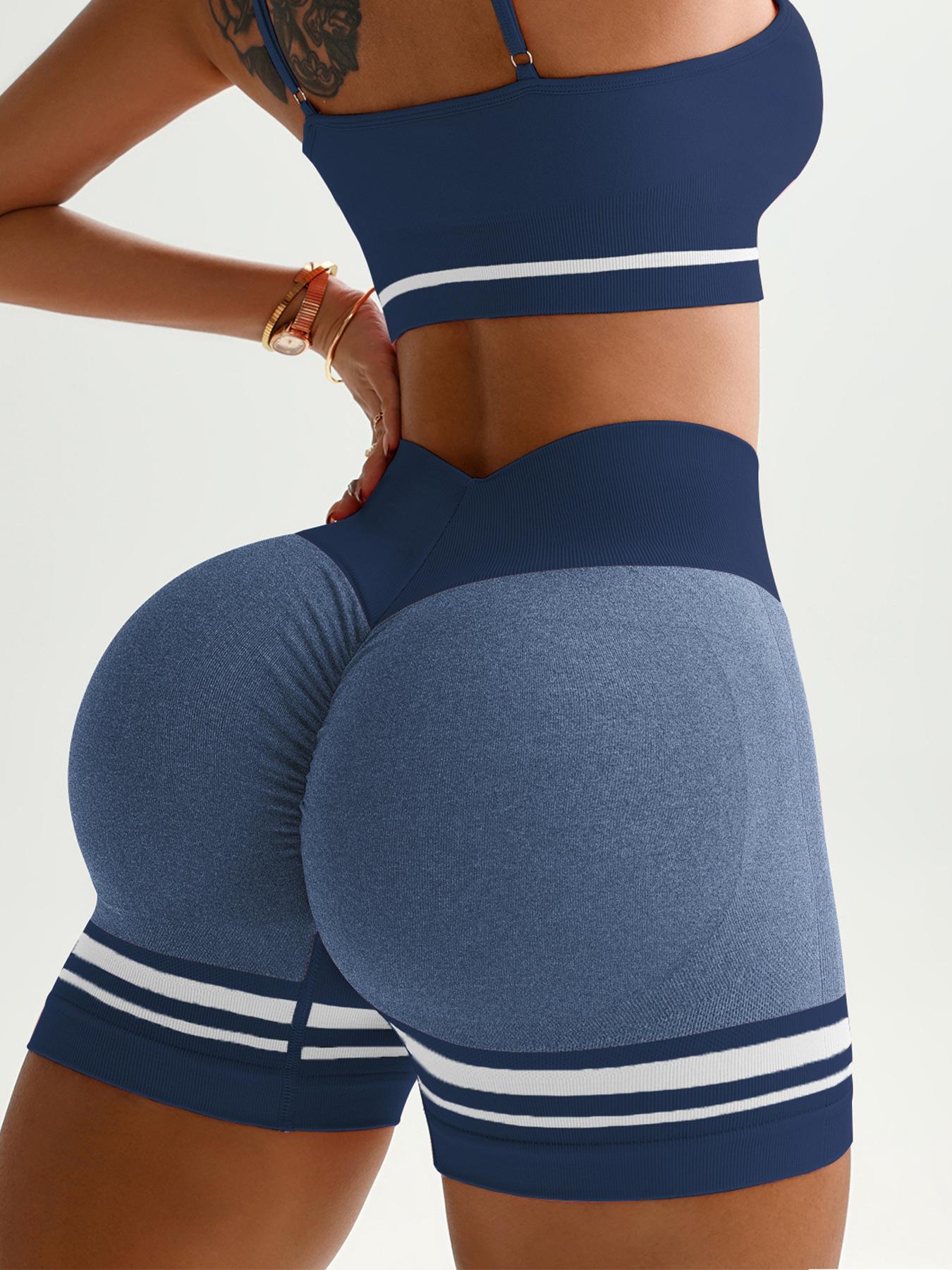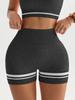 Pantalones cortos de yoga transpirables sin costuras de talle alto ajustados sexys levanta glúteos con bloques de color para mujeres para correr, deportes, fitness, pantalones cortos de tres puntos