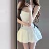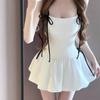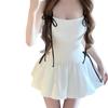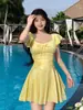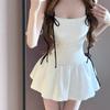 Traje de Baño Nuevo 2025 para Mujer Una Pieza Falda Tirantes Lazo Look Adelgazante Cubre Vientre Conservador Vacaciones Aguas Termales Dulce Blanco