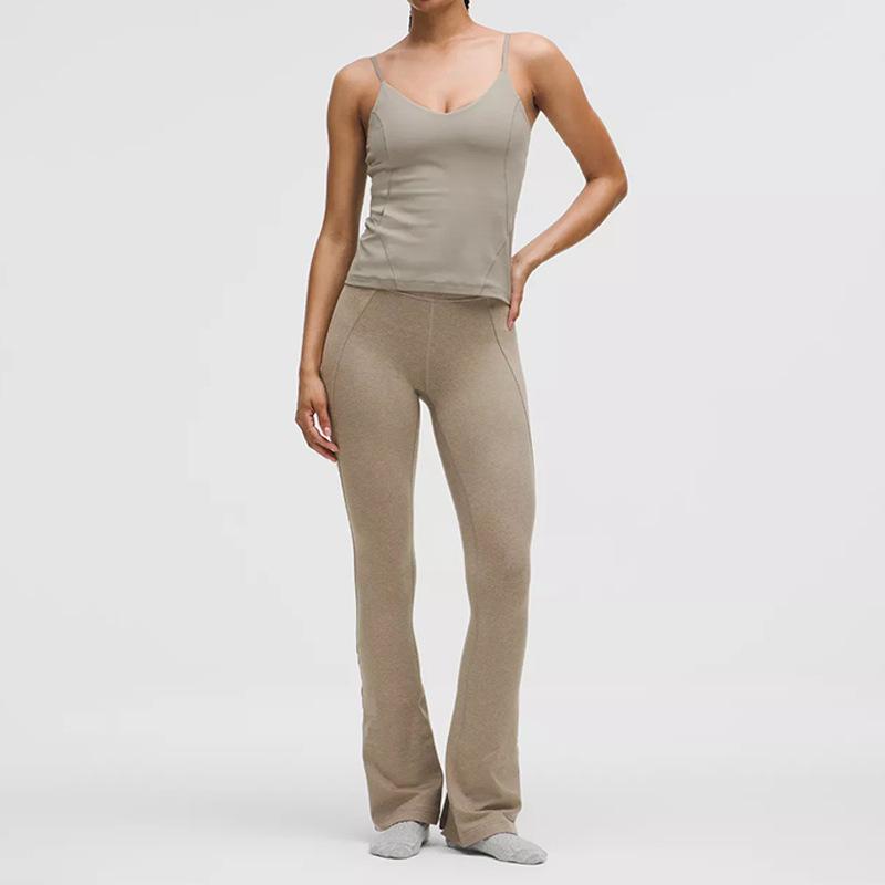 Nuevo Pantalón Acampanado de Yoga de Cintura Alta Ajustado Sensación Desnuda Levanta Glúteos para Mujer Danza Fitness Deportes al Aire Libre Abertura Pantalón Largo