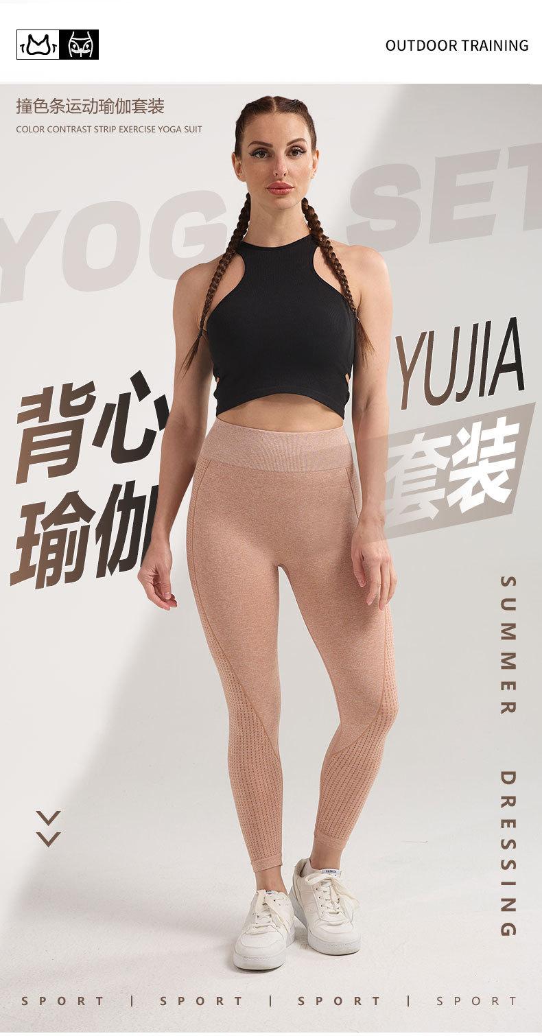 Chaleco de yoga fitness de espalda hermosa ahuecada, ropa exterior deportiva ajustada, pantalones de yoga de cintura alta con realce de cadera, conjunto de yoga para mujer, conjunto de verano