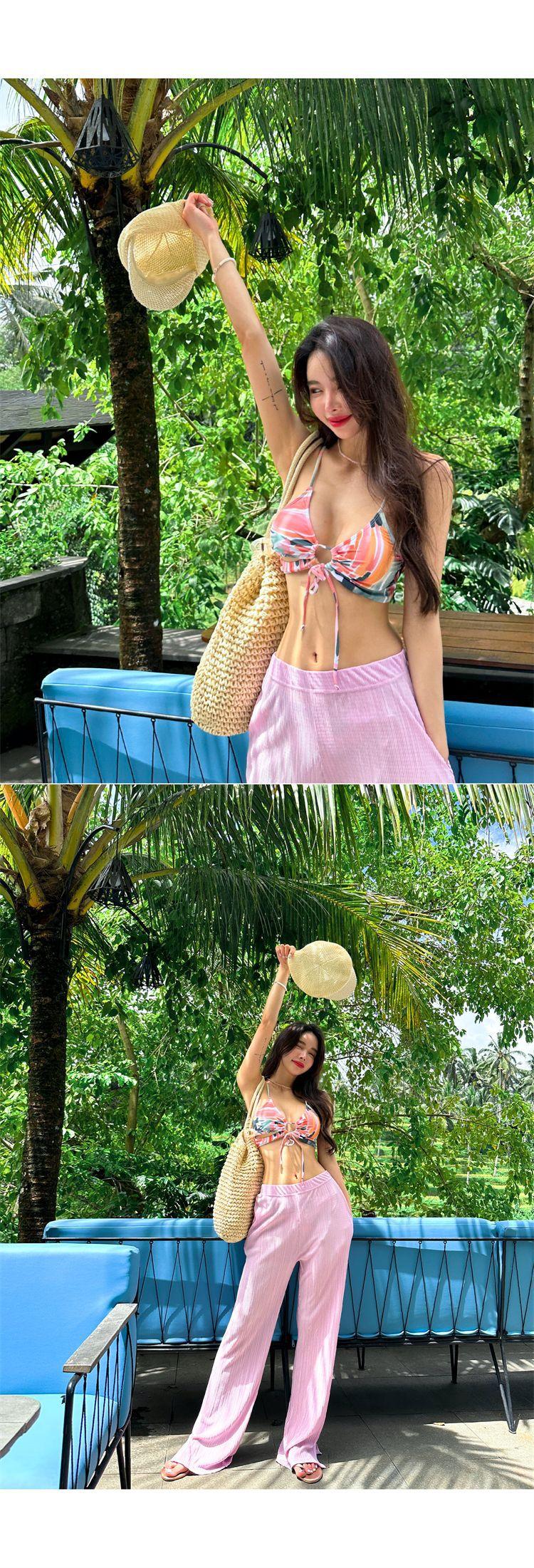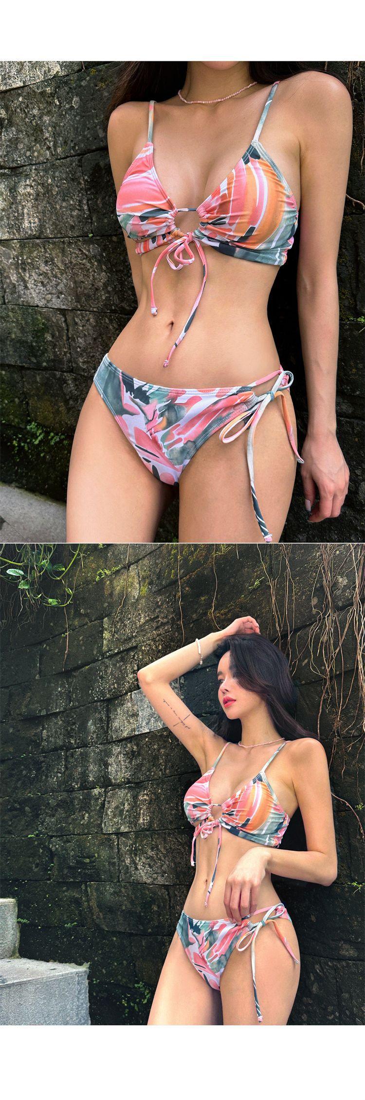 Bikini Japonés y Coreano Nuevo de Mujer Estampado Dividido Delgado Sexy Pecho Pequeño Push-up Ajustado Spice Girl Traje de Baño para Vacaciones