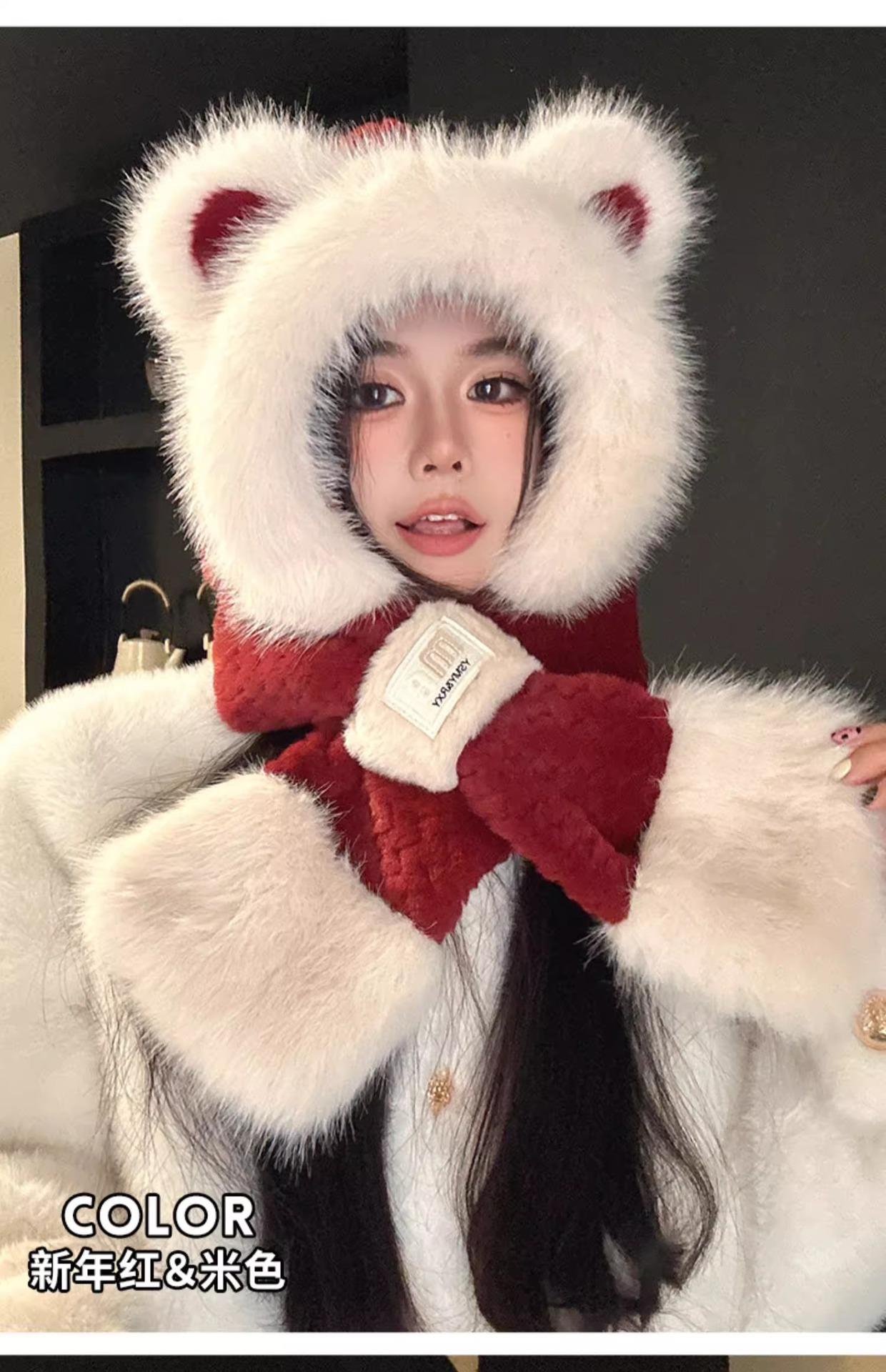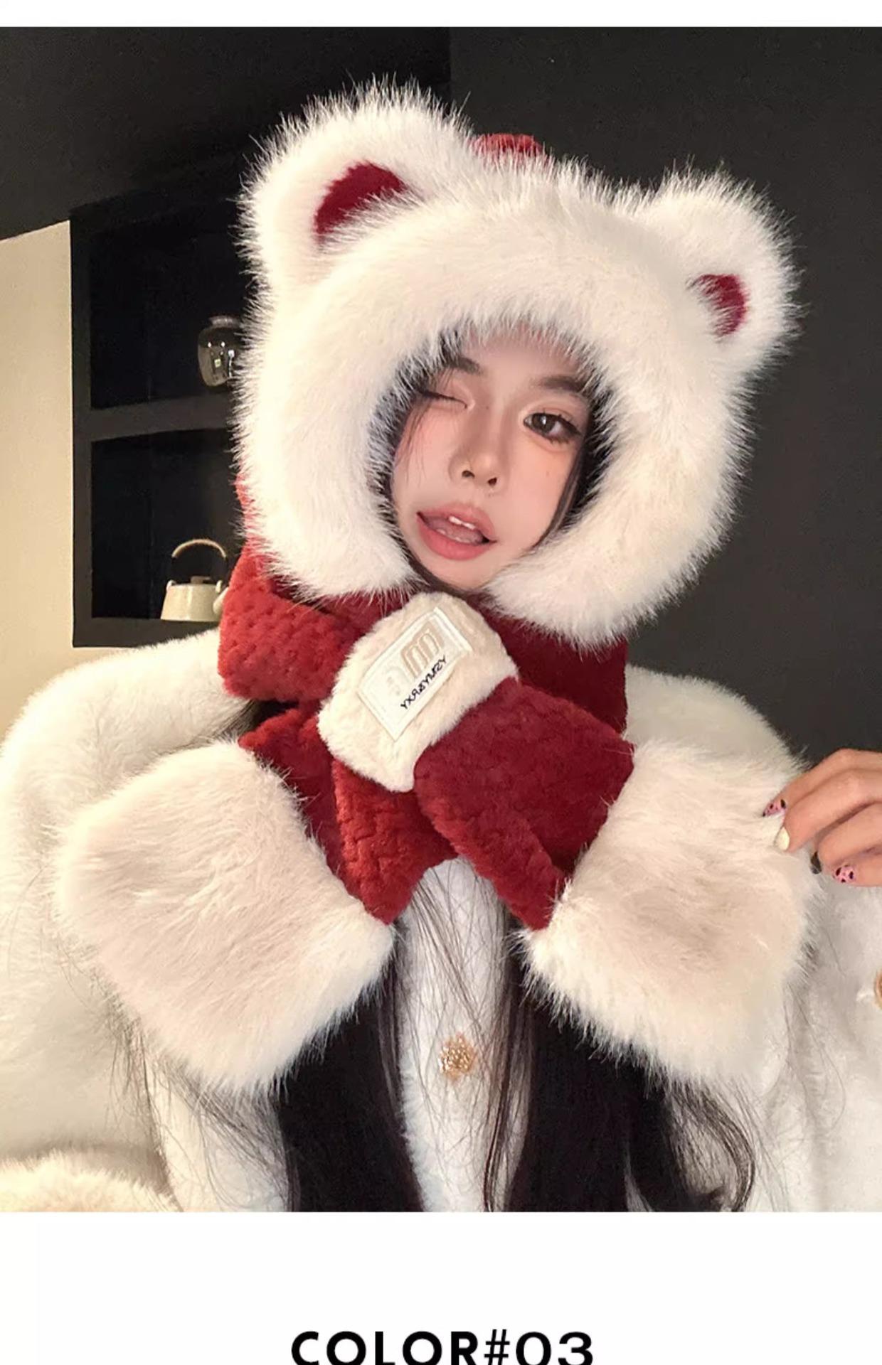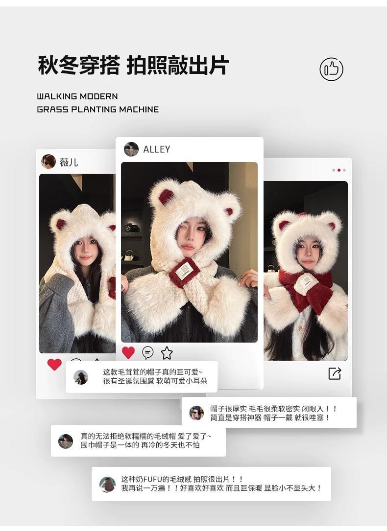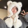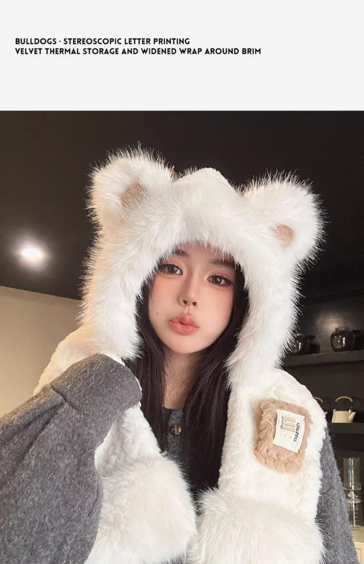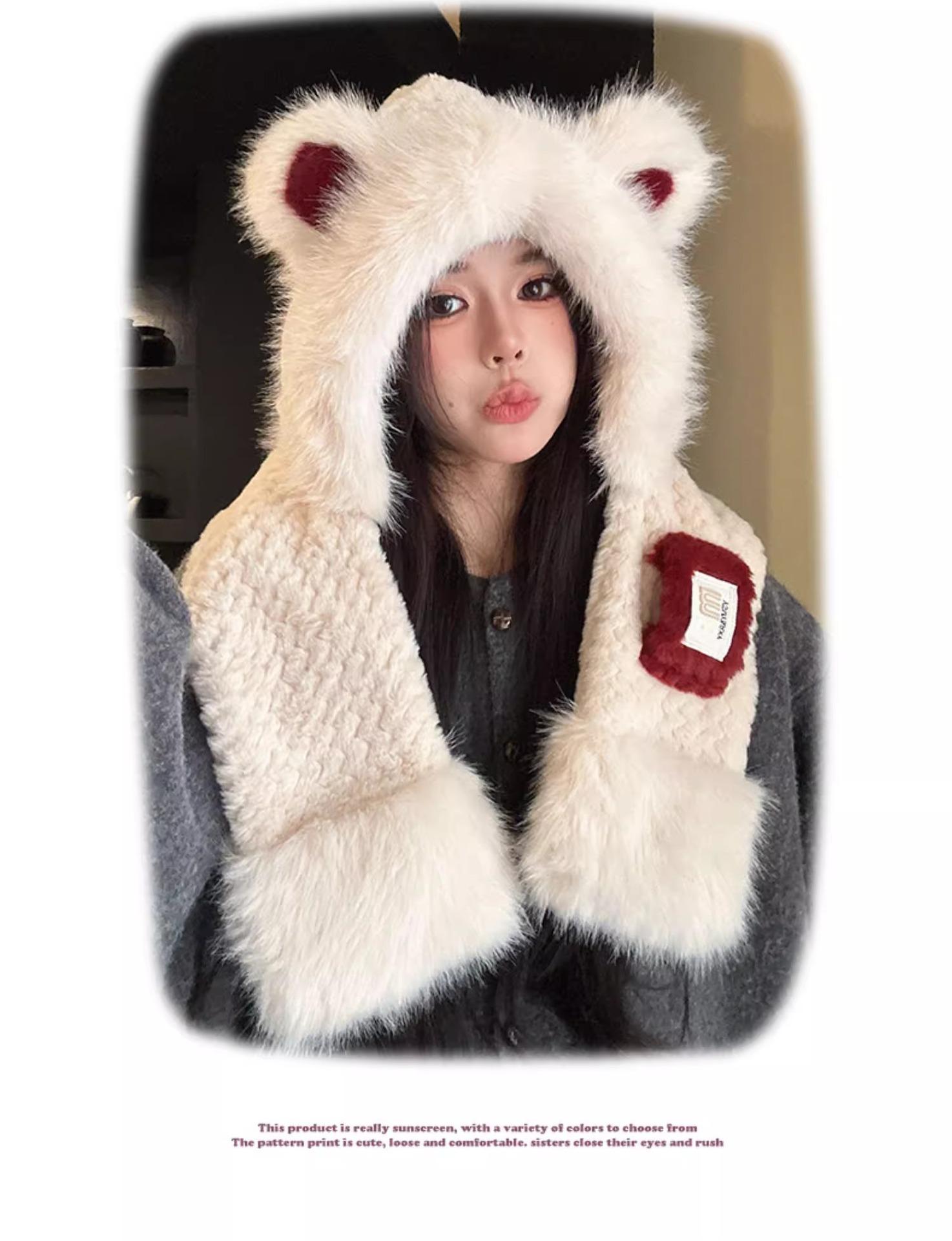 Lindo Gorro de Oso de Peluche Bufanda de Una Pieza para Mujer Estilo Coreano Invierno Cortavientos Cálido Protección para las Orejas para Montar Calentador de Cuello Gorro de Peluche