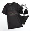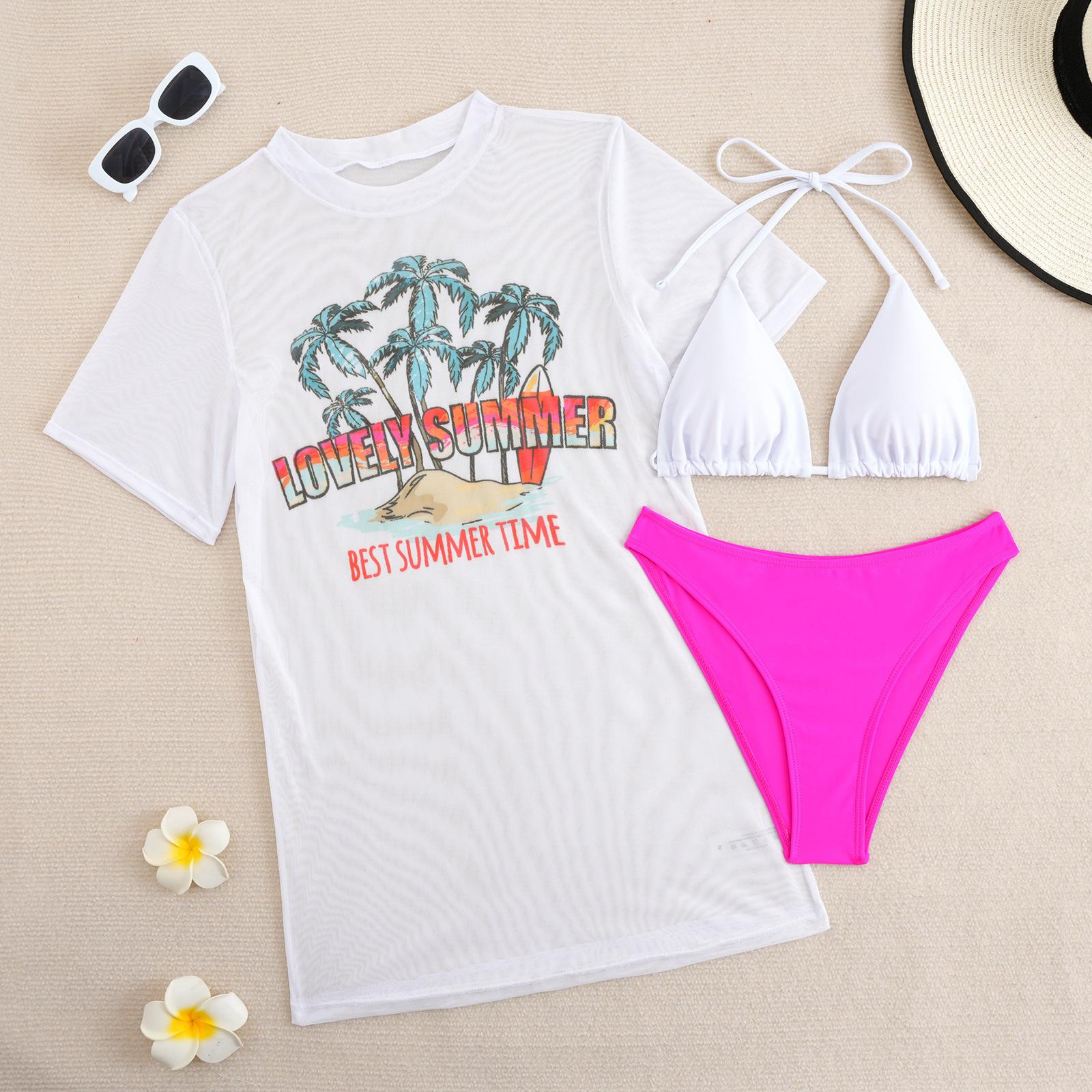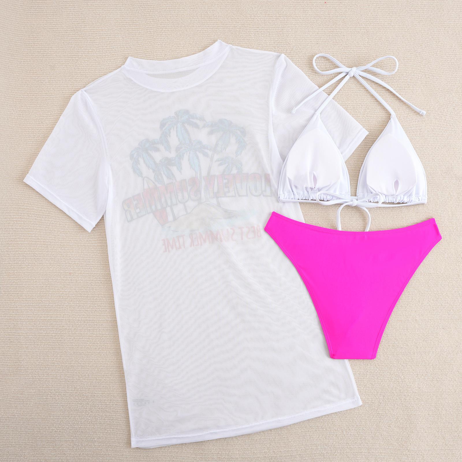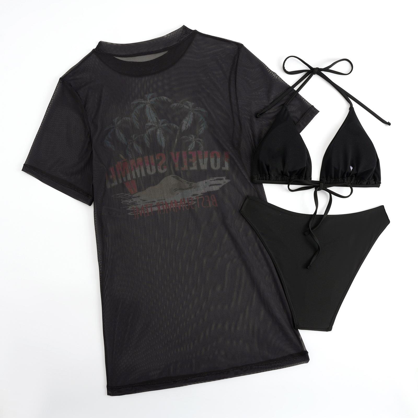 Traje de baño dividido transfronterizo nuevo europeo y americano 2025 para mujer con estampado sexy bikini para dama conjunto de tres piezas con encubrimiento