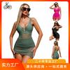 Traje de Baño Sexy de Una Pieza para Mujer de Moda Europea y Americana 2025 Estilo Grulla Fruncida con Abertura Amazon