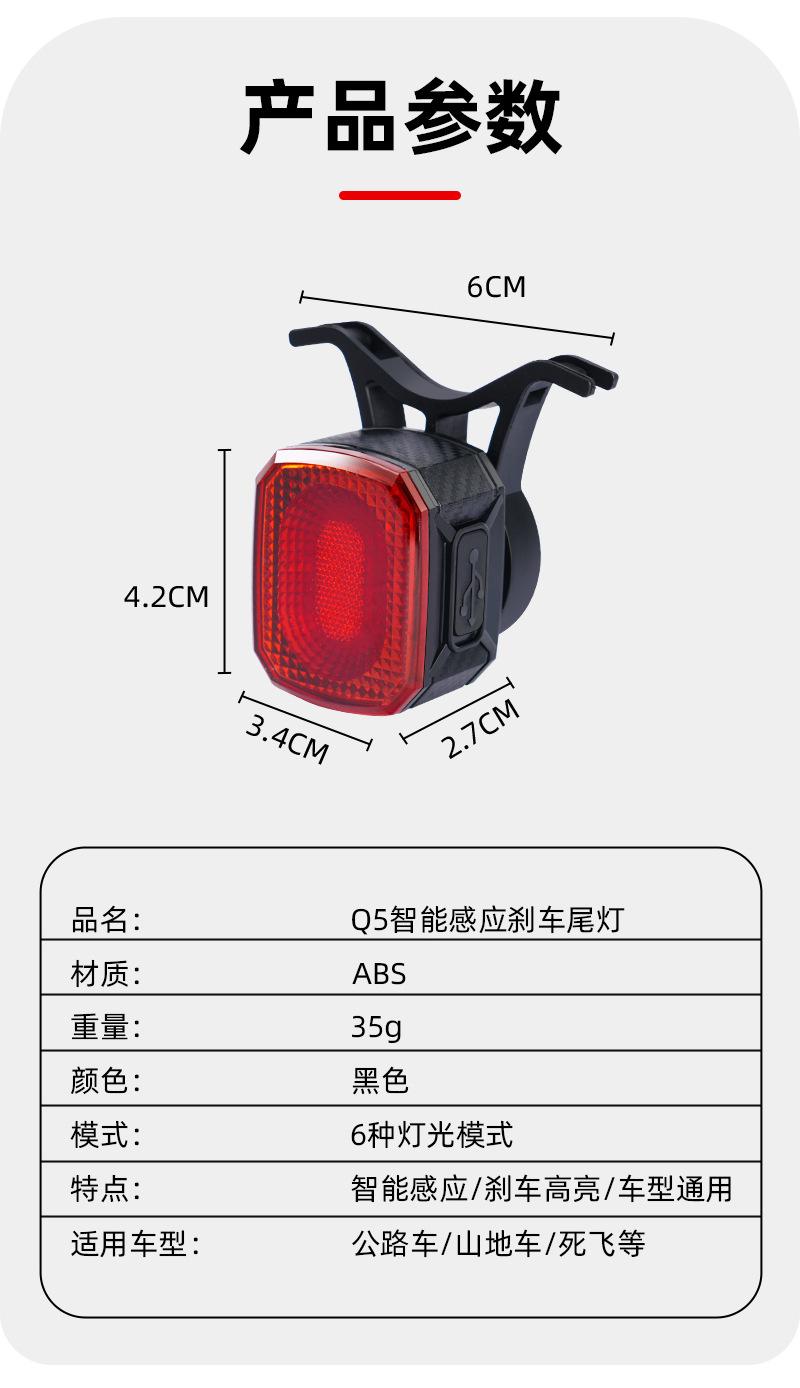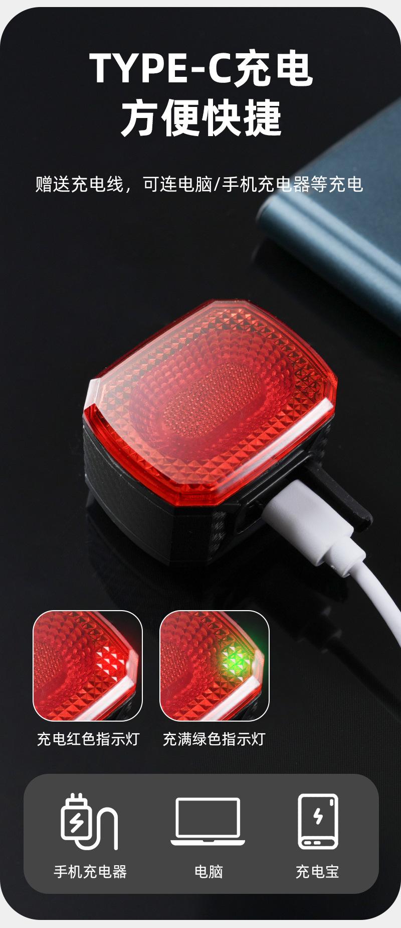Luz trasera de bicicleta inteligente con inducción de vibración por frenado, luz de advertencia para ciclismo de montaña y carretera nocturno, luz para ciclismo, equipo para ciclismo