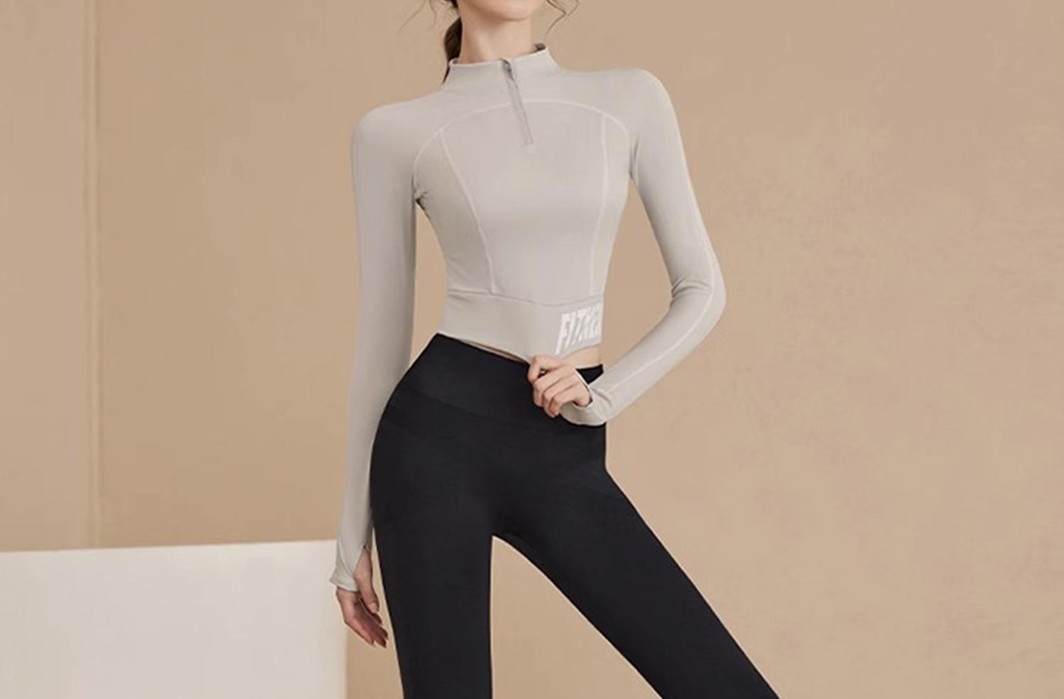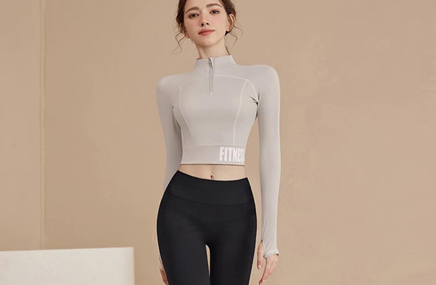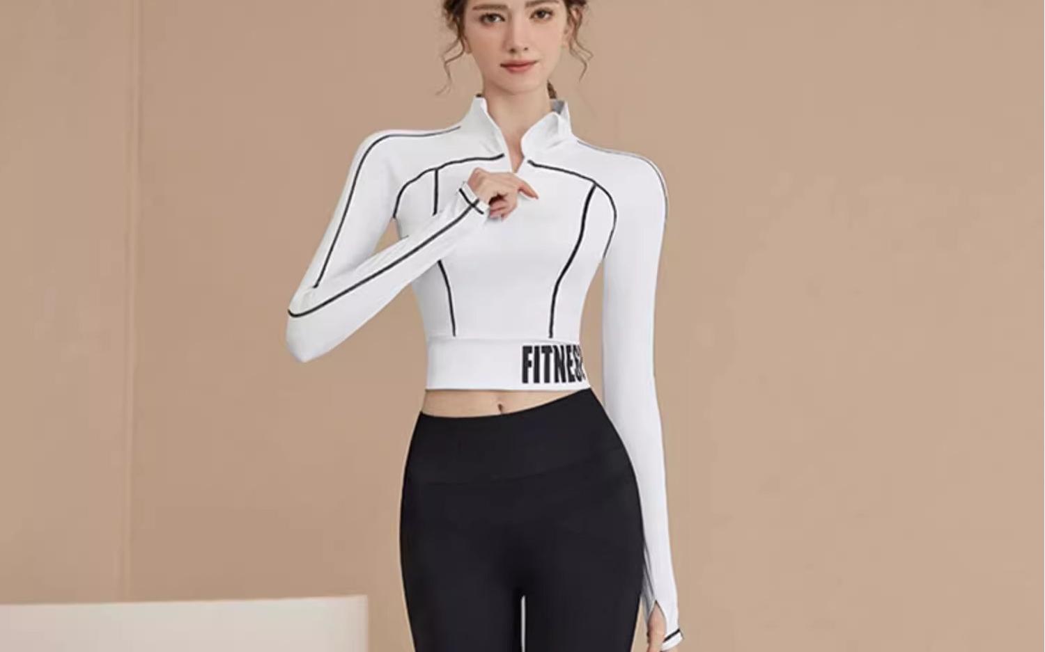 Traje Deportivo de Alta Gama para Primavera y Verano para Gimnasio de Mujer con Almohadilla en el Pecho Top de Running Yoga Ropa de Entrenamiento de Manga Larga