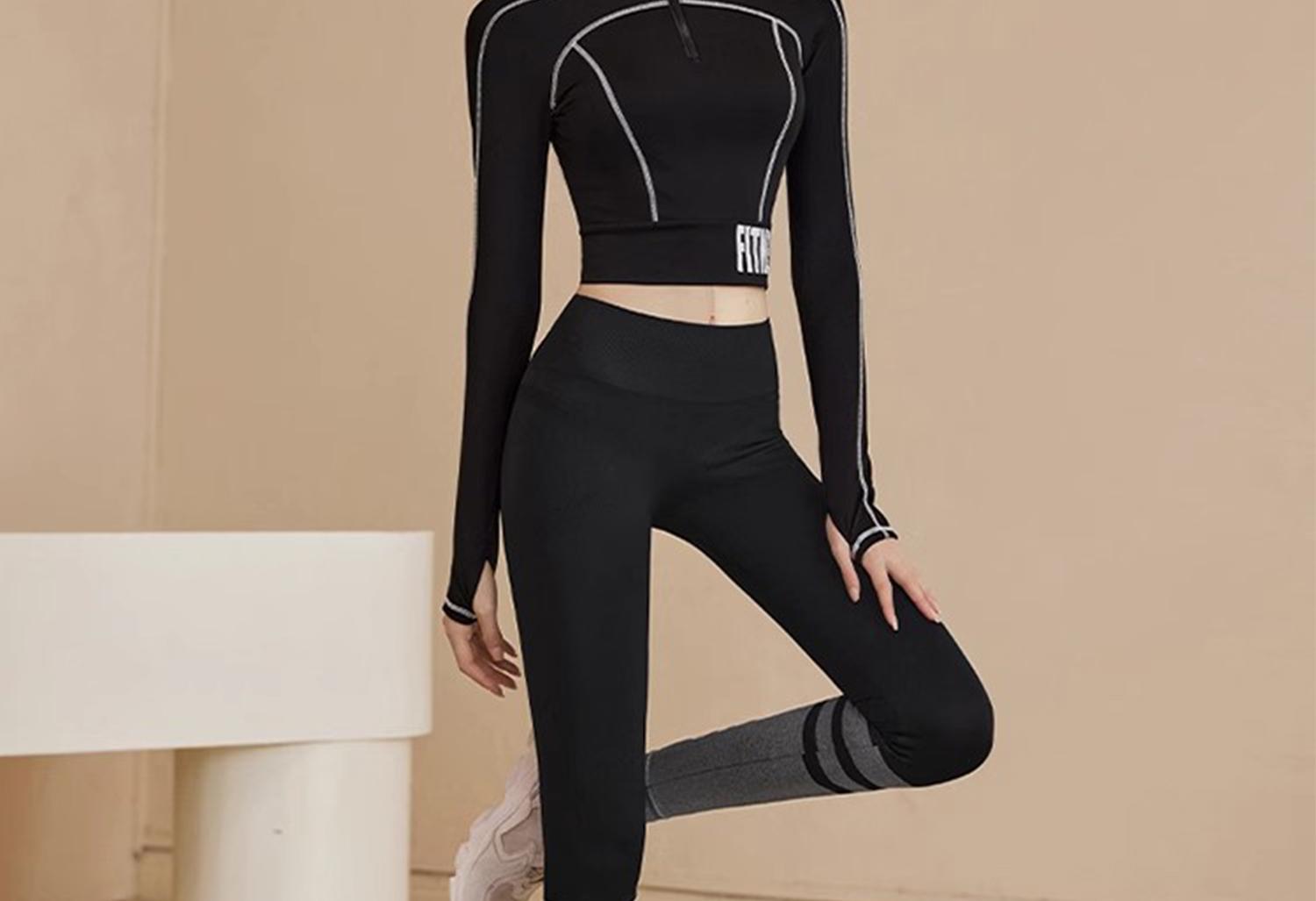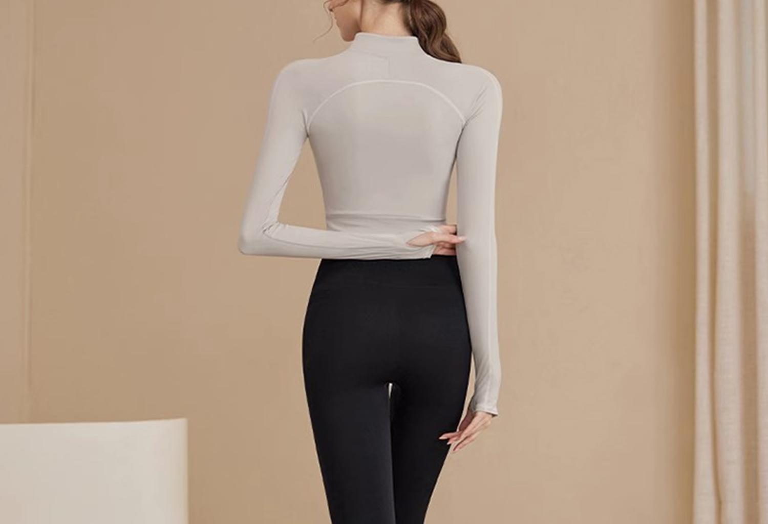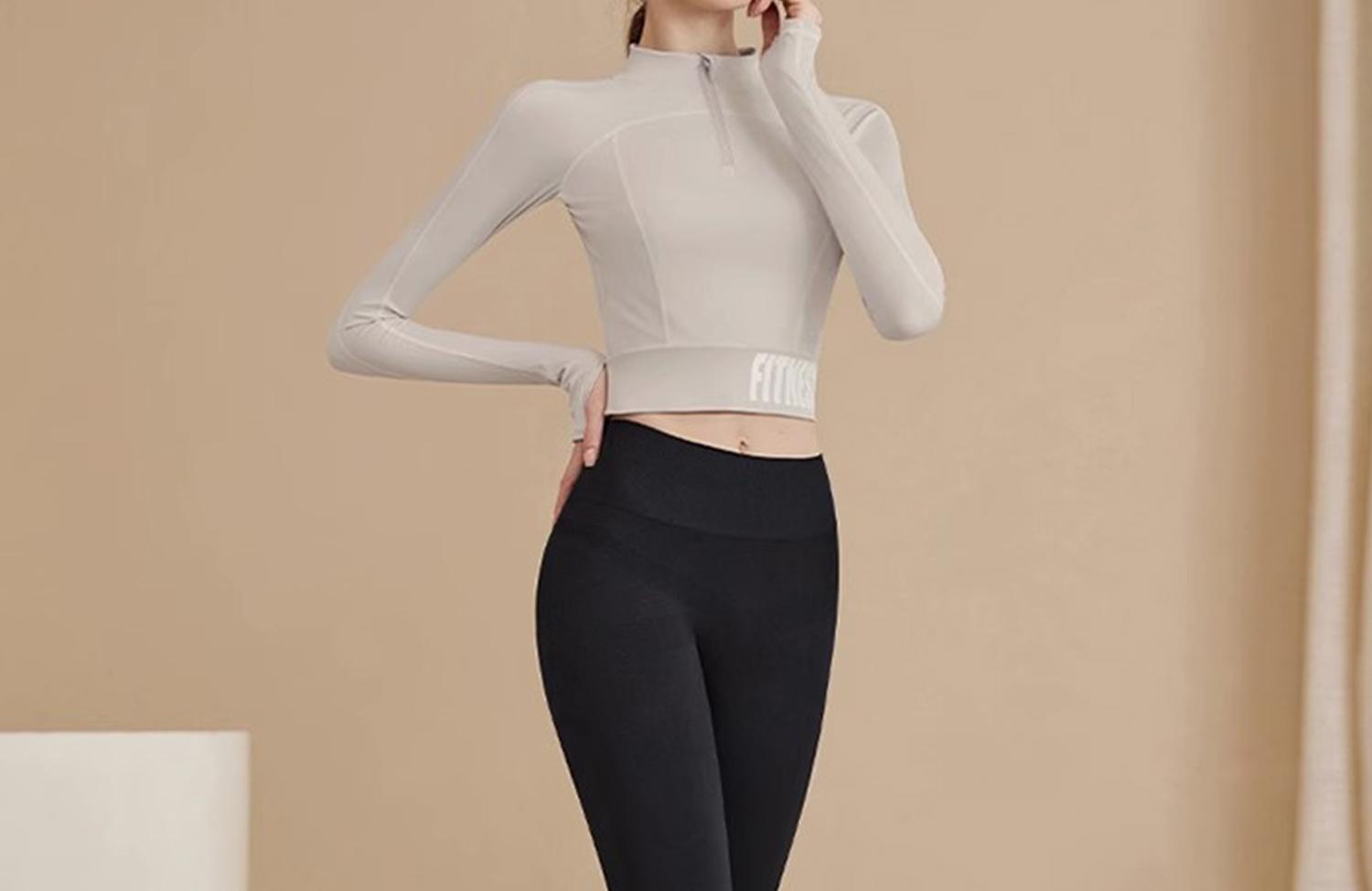 Traje Deportivo de Alta Gama para Primavera y Verano para Gimnasio de Mujer con Almohadilla en el Pecho Top de Running Yoga Ropa de Entrenamiento de Manga Larga