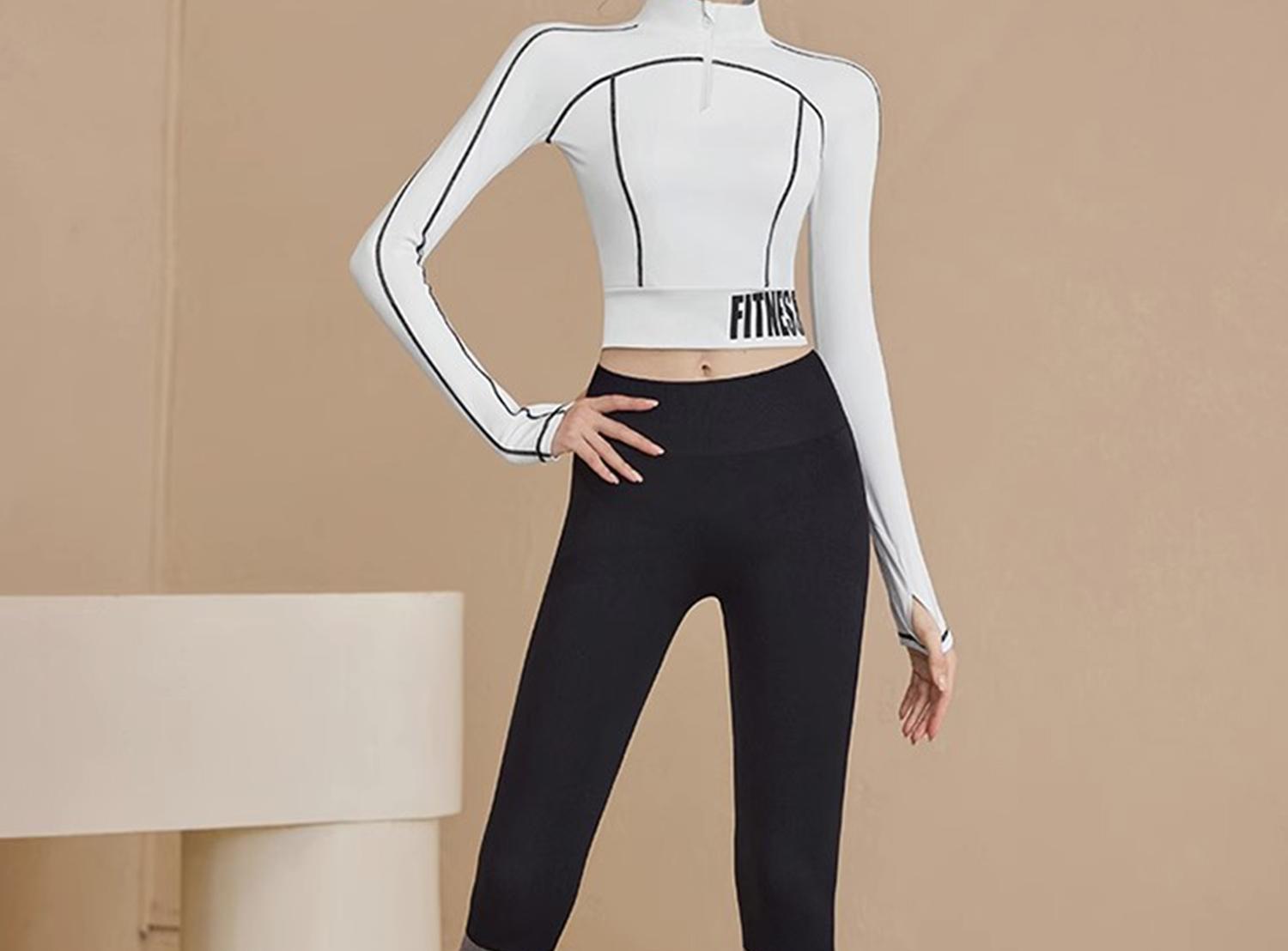 Black - top [comes with chest pad], White - top [comes with chest pad], Black top + black striped fitness pant...