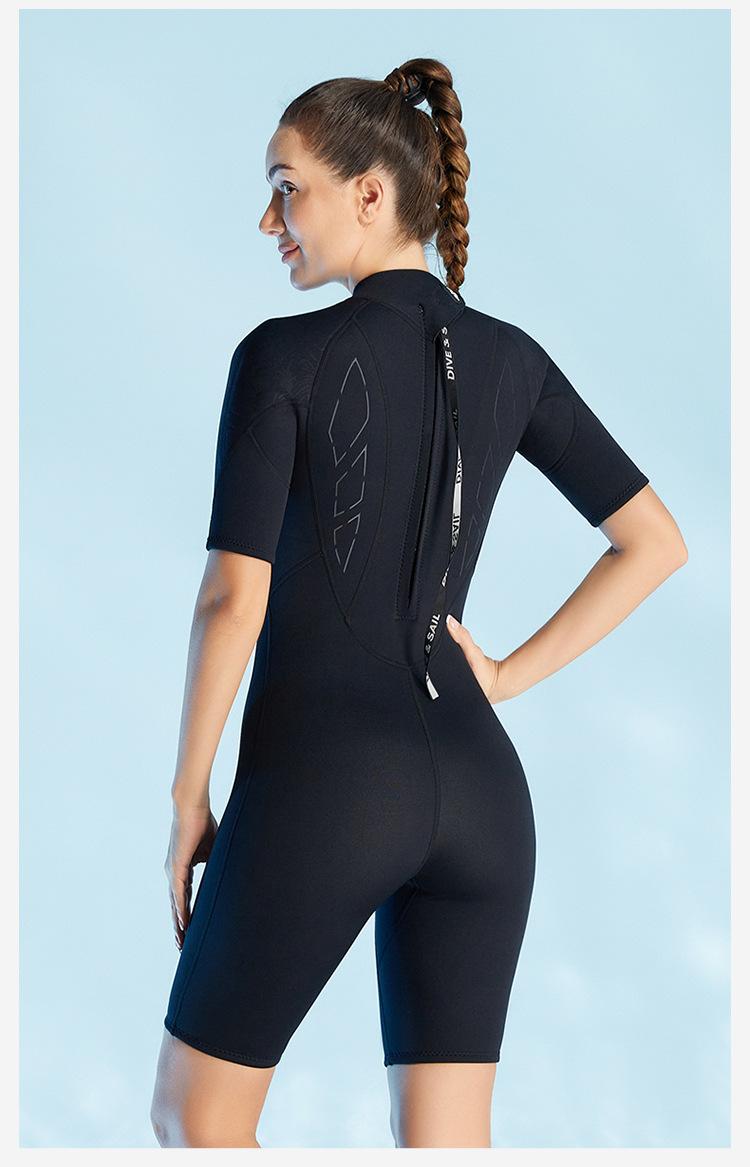 Traje de buceo de una pieza de 3 mm para mujer, manga corta, shorts, traje de buceo cálido engrosado, traje de baño a prueba de frío para esnórquel, surf