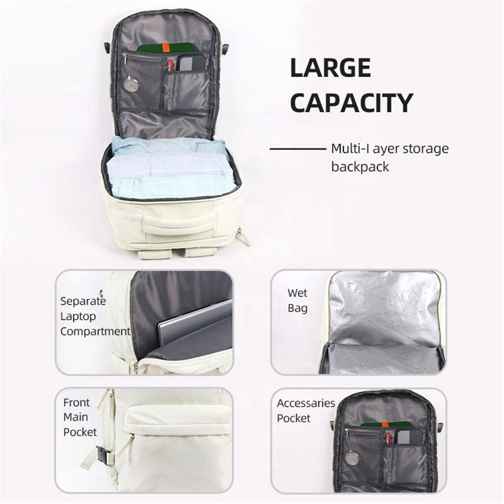 Bolsillos para accesorios: Múltiples compartimentos pequeños para bolígrafos, cargadores o artículos esenciales de viaje.