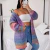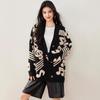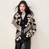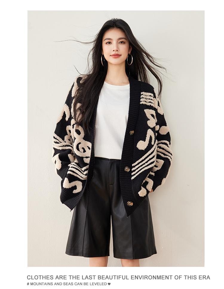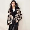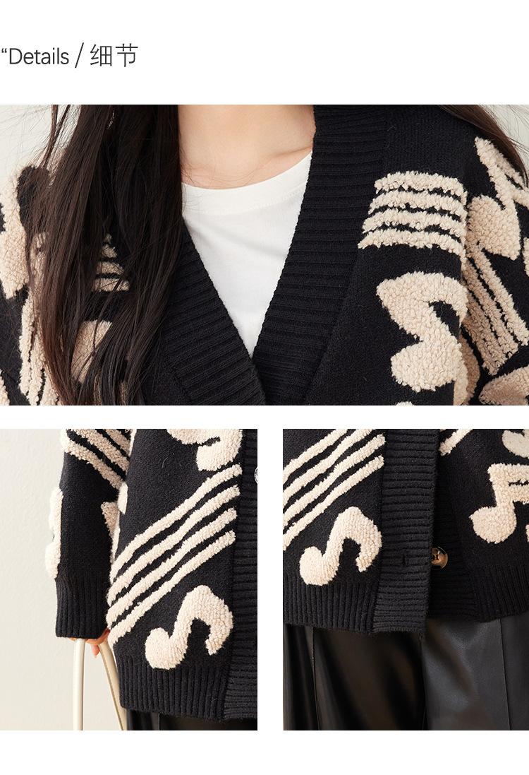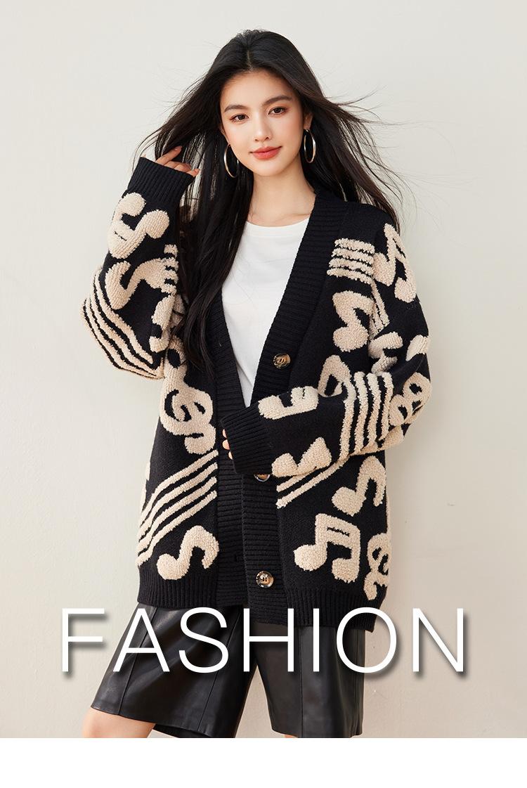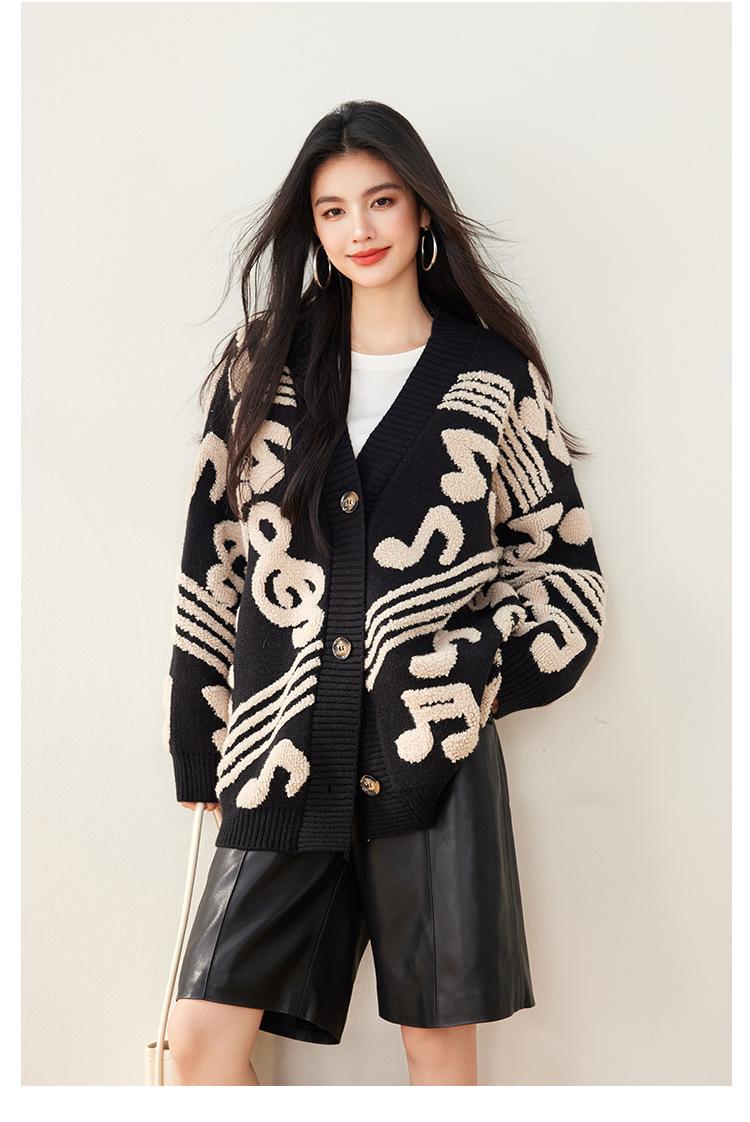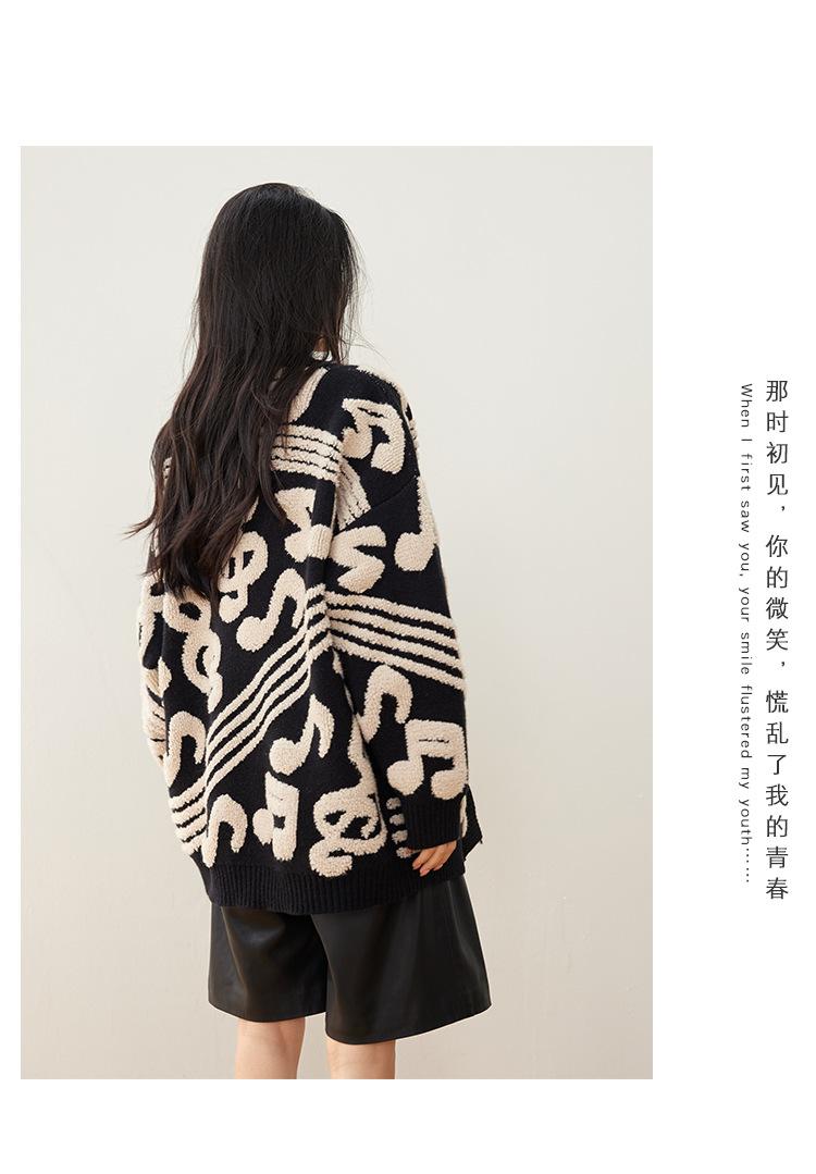 Fuente de Comercio Exterior Manga Larga Nota Bloque de Color Tejido de Punto Cárdigan Abrigo Top de Otoño e Invierno para Mujer Estilo Holgado Perezoso