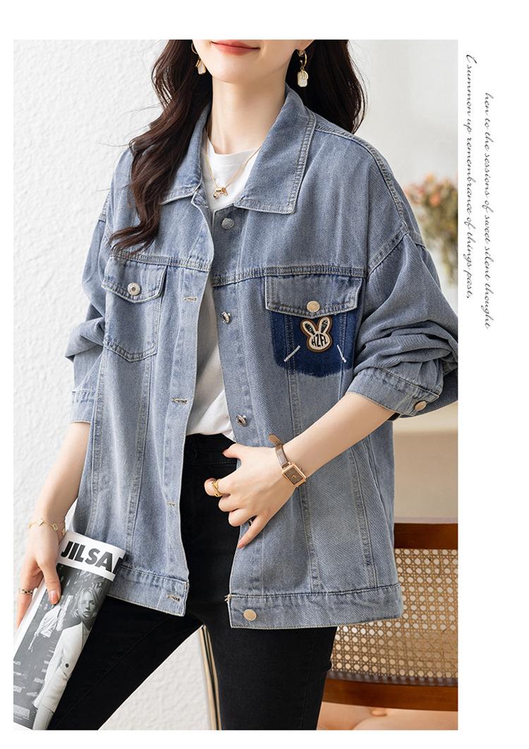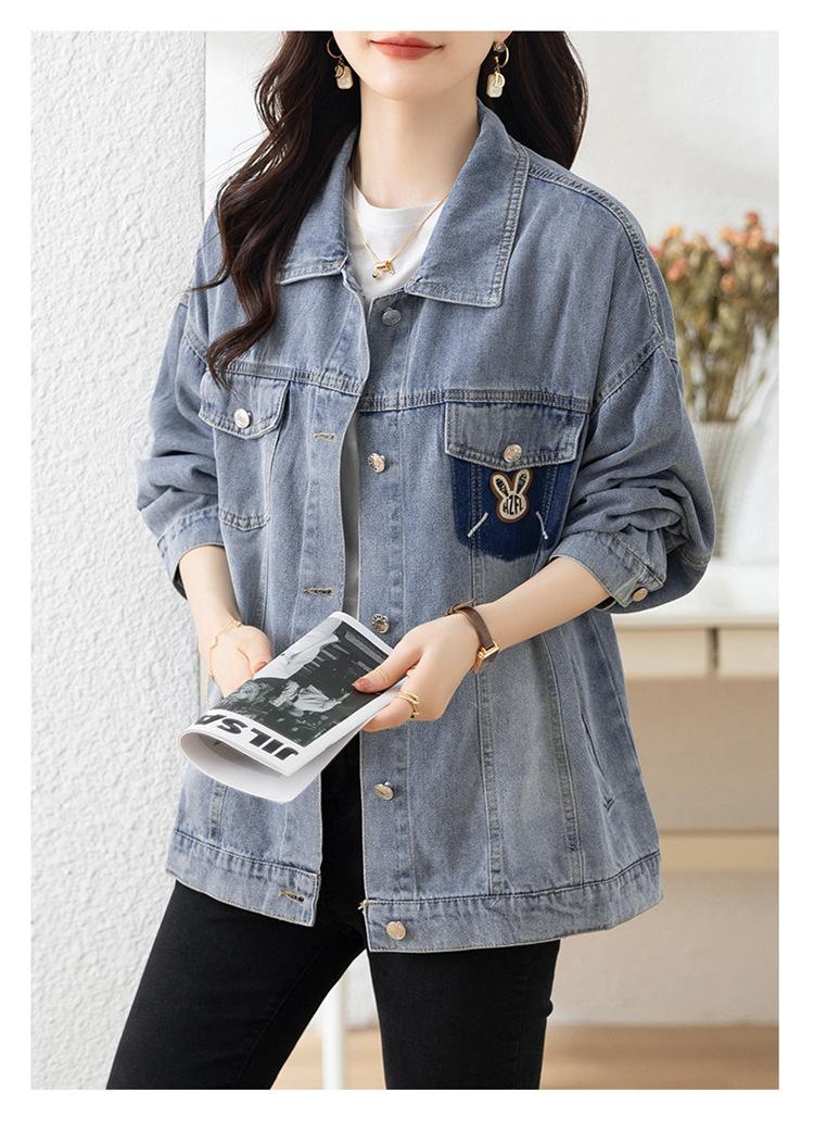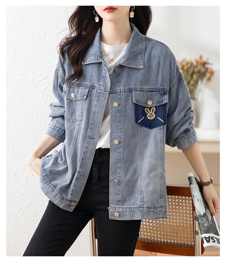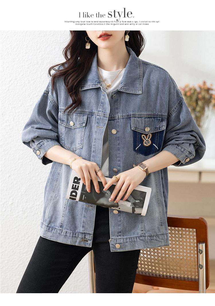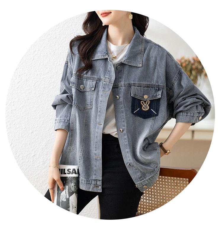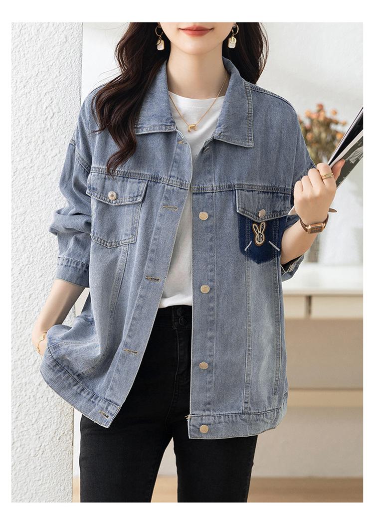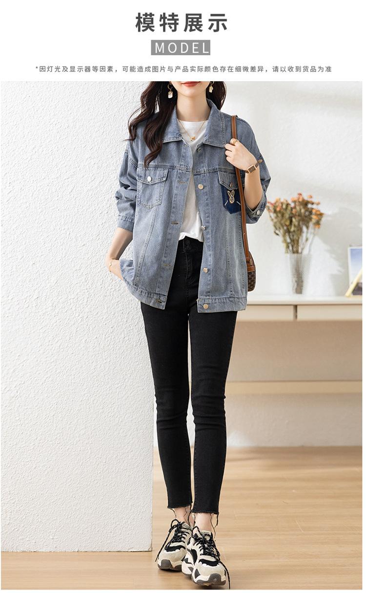 Chaqueta de mezclilla de solapa Top de longitud media 2025 Nueva ropa de moda de primavera y otoño Color de la imagen de moda Spandex