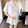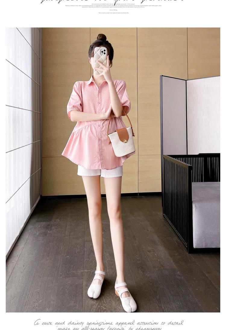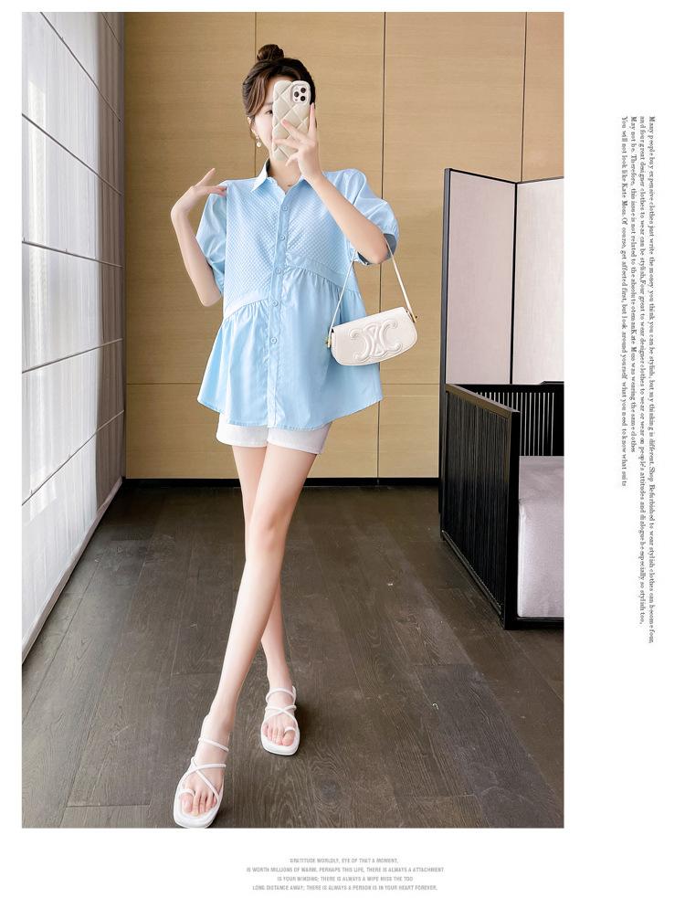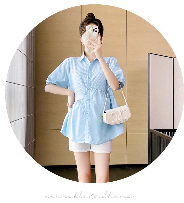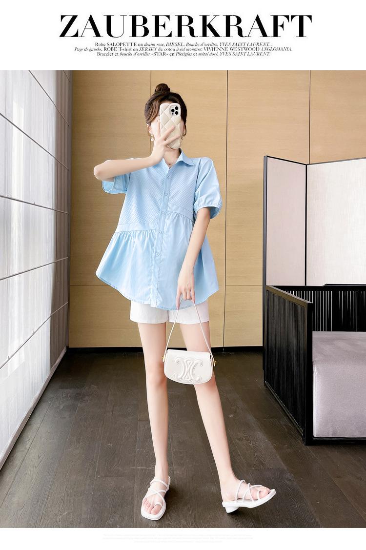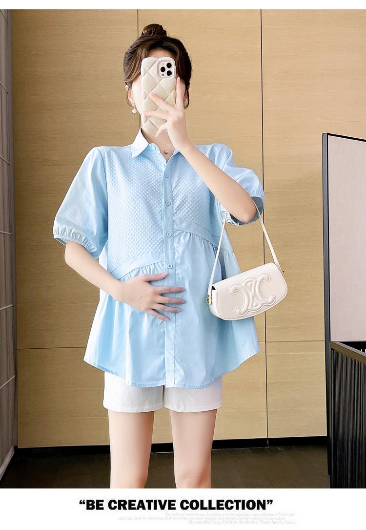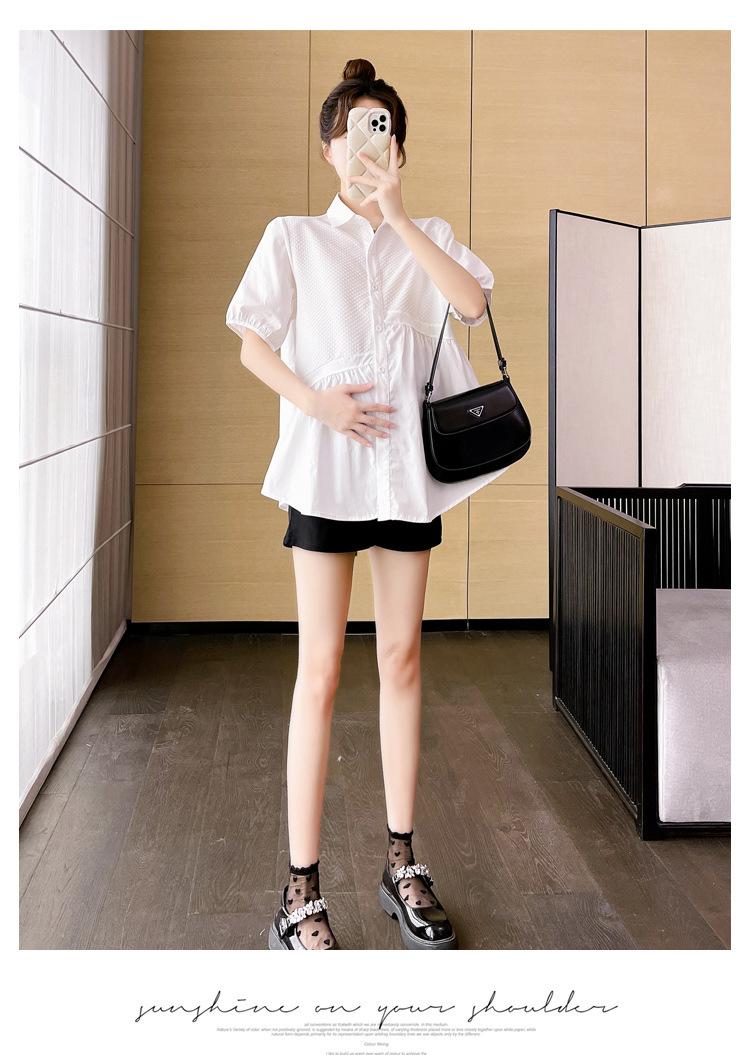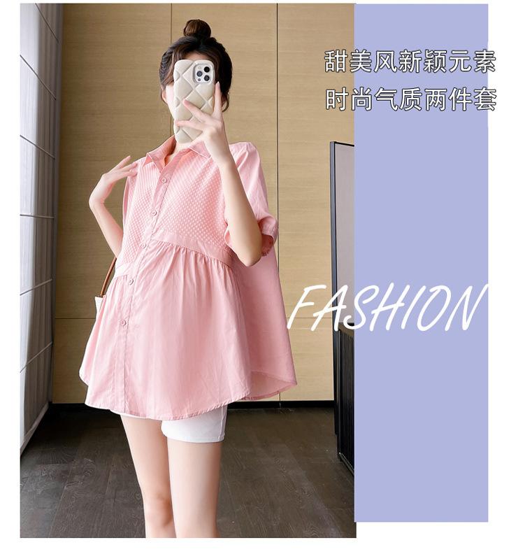 Ropa de Maternidad 2025 Nuevo Verano Estilo Coreano Burbuja Estampado Suelto Top Babydoll + Shorts de Soporte para Vientre Conjunto de Dos Piezas