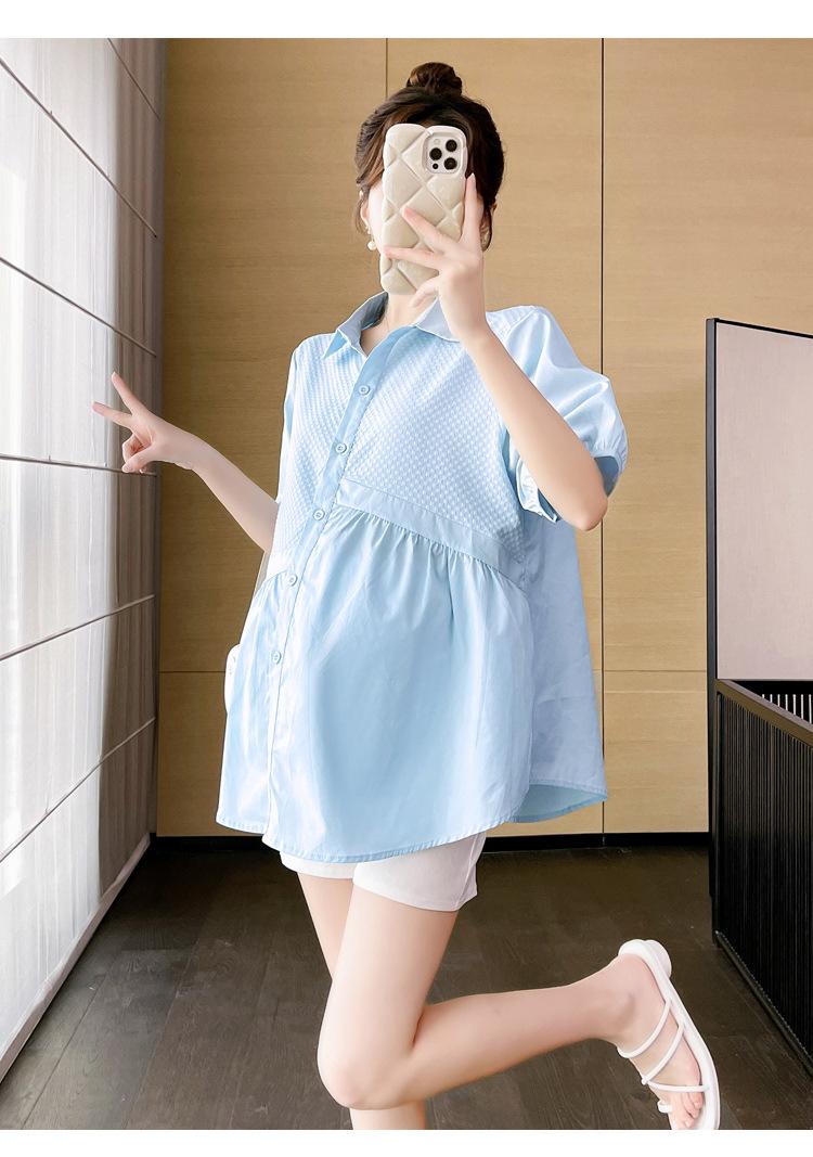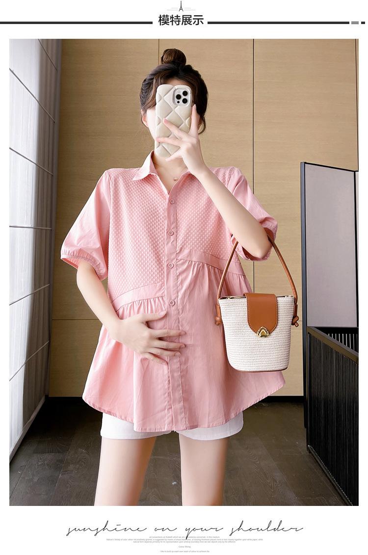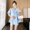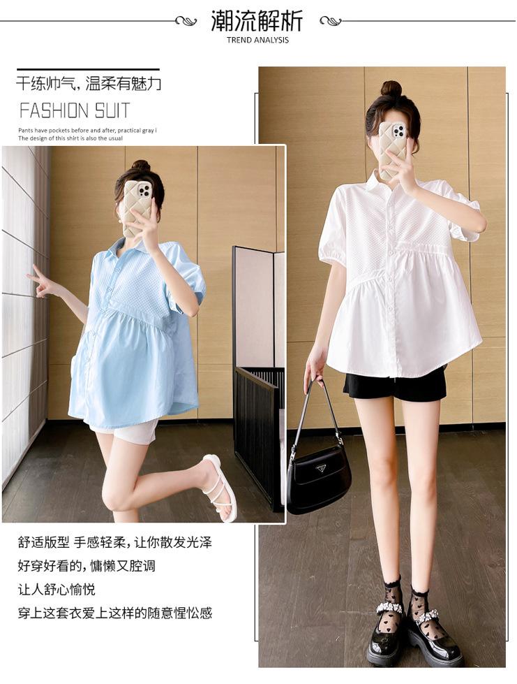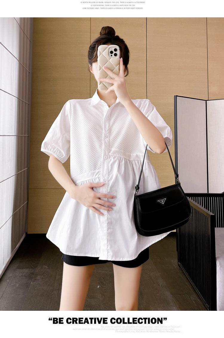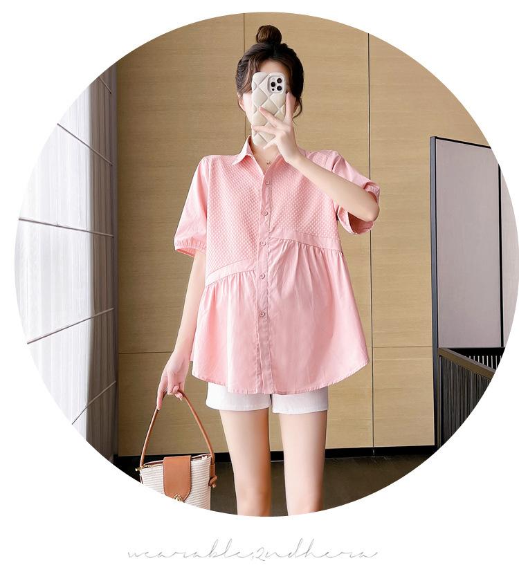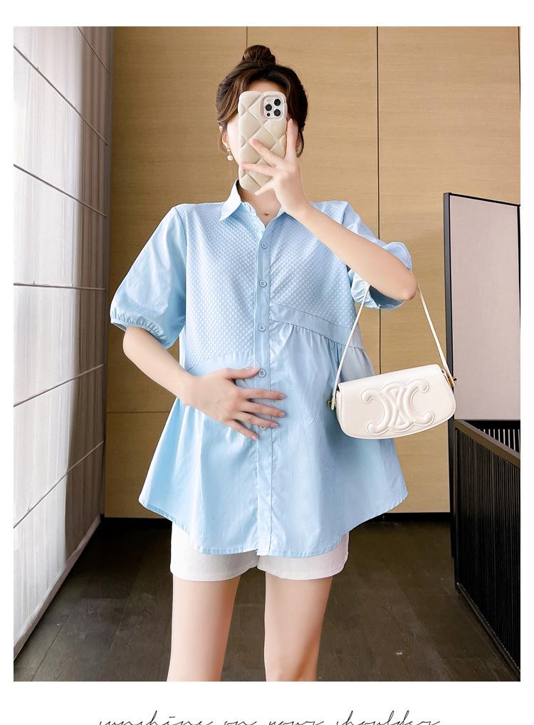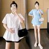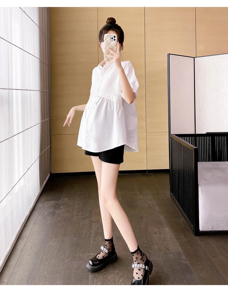 Ropa de Maternidad 2025 Nuevo Verano Estilo Coreano Burbuja Estampado Suelto Top Babydoll + Shorts de Soporte para Vientre Conjunto de Dos Piezas