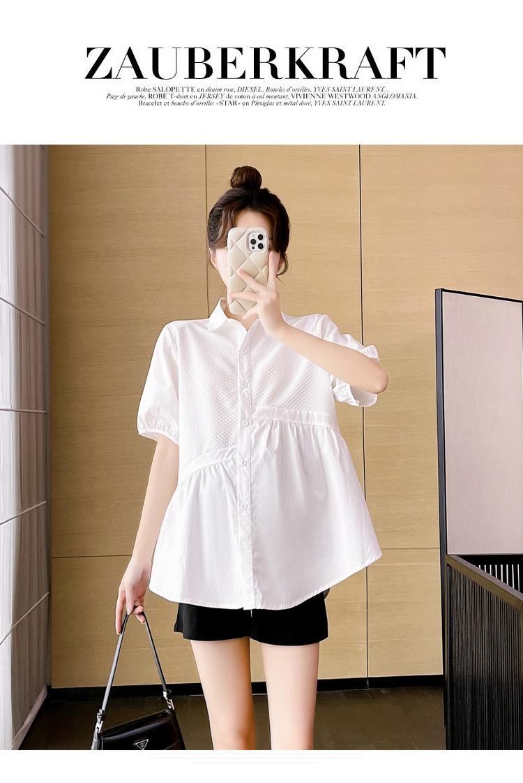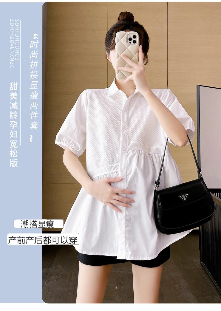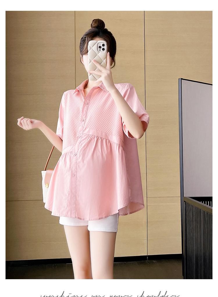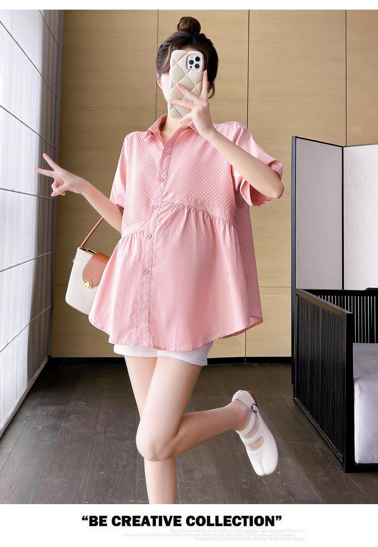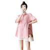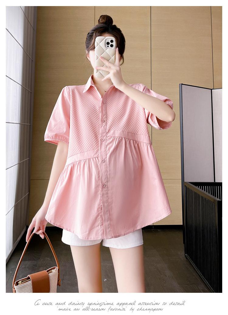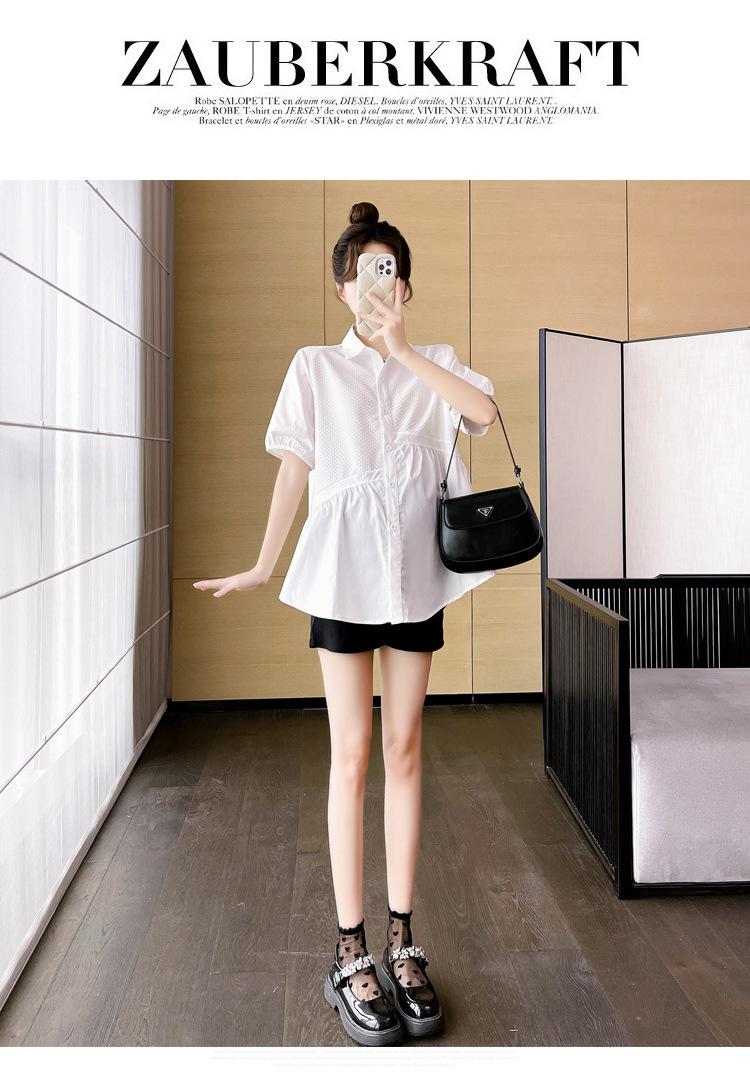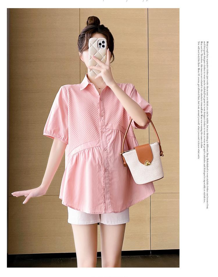 Ropa de Maternidad 2025 Nuevo Verano Estilo Coreano Burbuja Estampado Suelto Top Babydoll + Shorts de Soporte para Vientre Conjunto de Dos Piezas