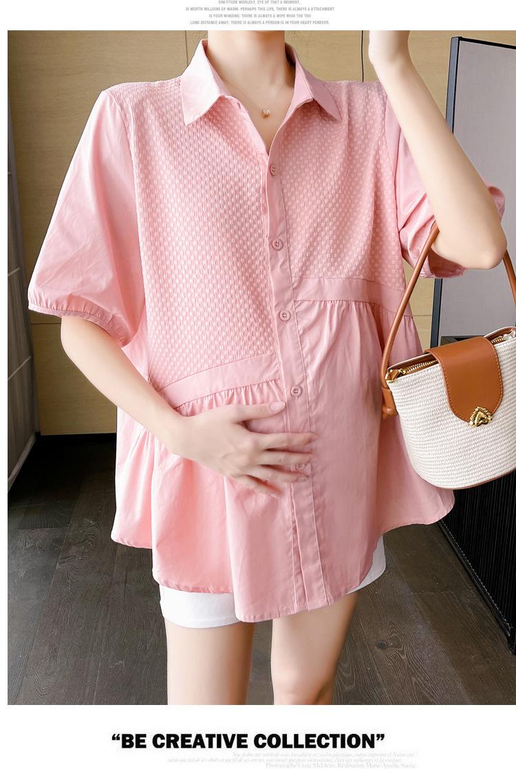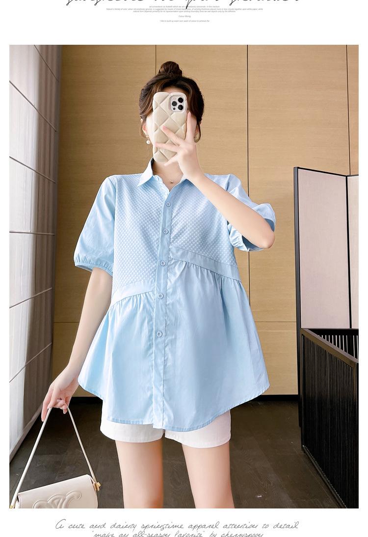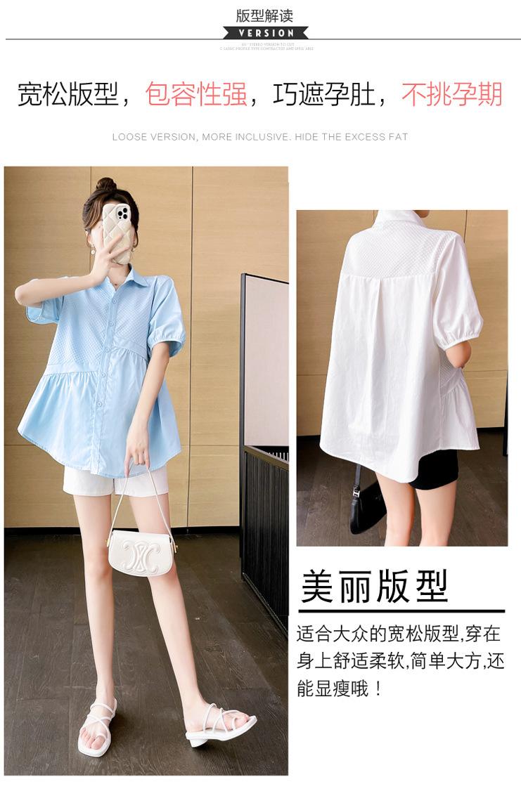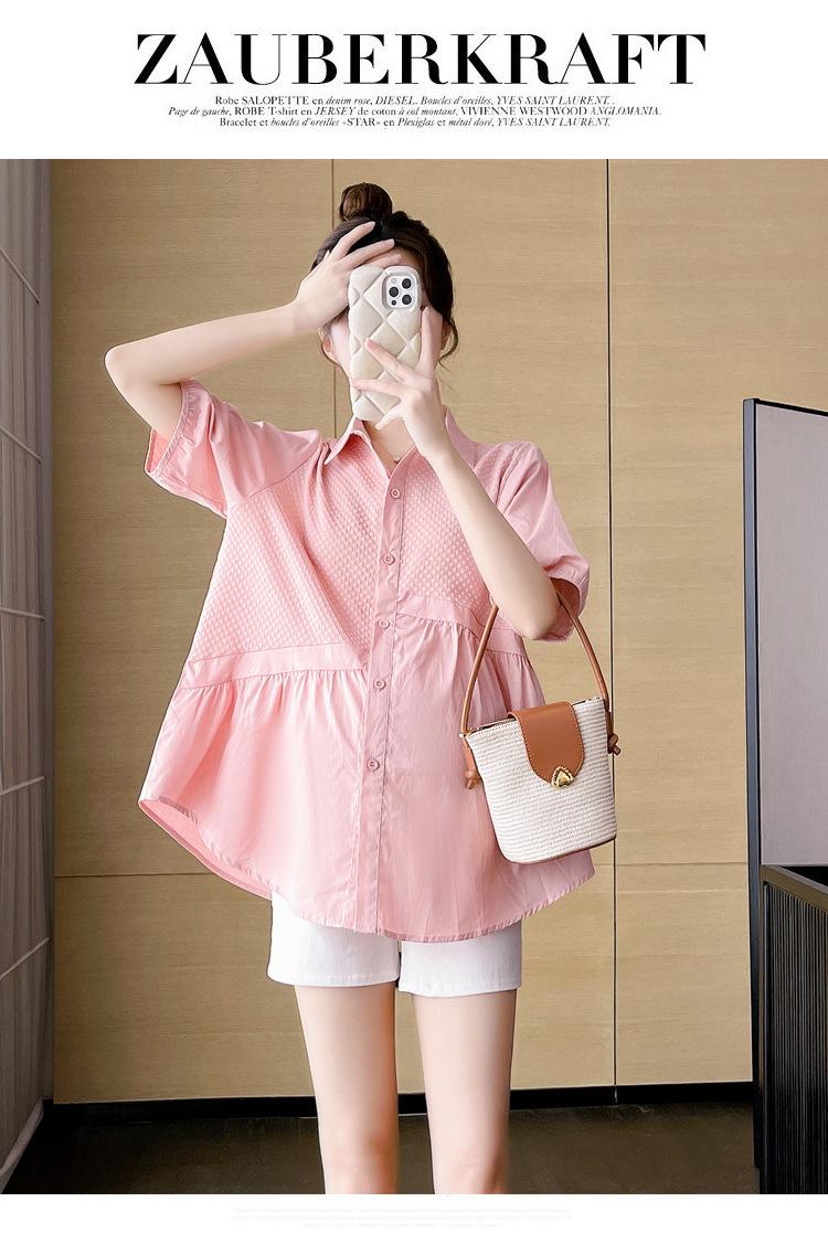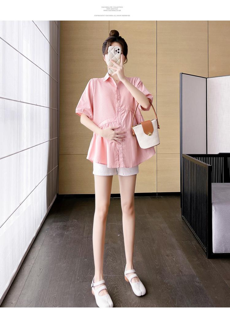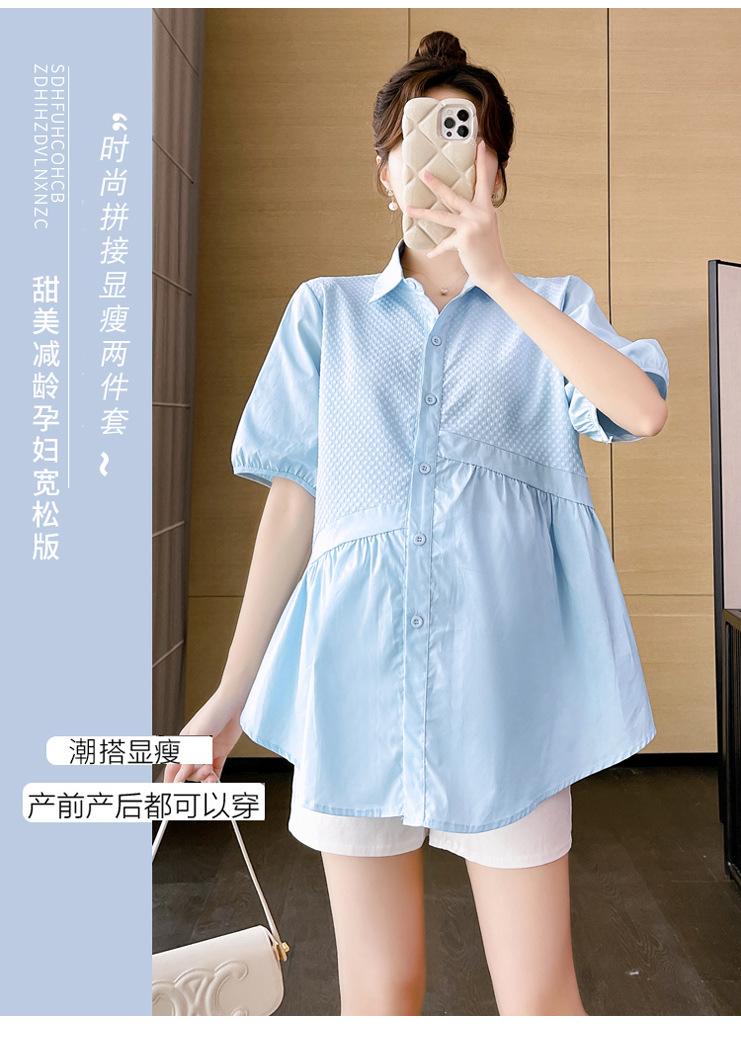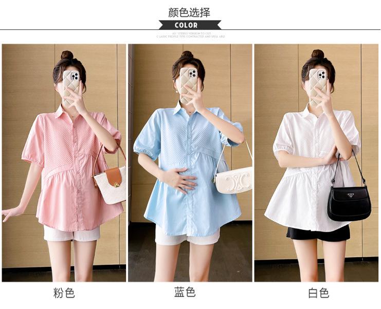 Ropa de Maternidad 2025 Nuevo Verano Estilo Coreano Burbuja Estampado Suelto Top Babydoll + Shorts de Soporte para Vientre Conjunto de Dos Piezas