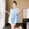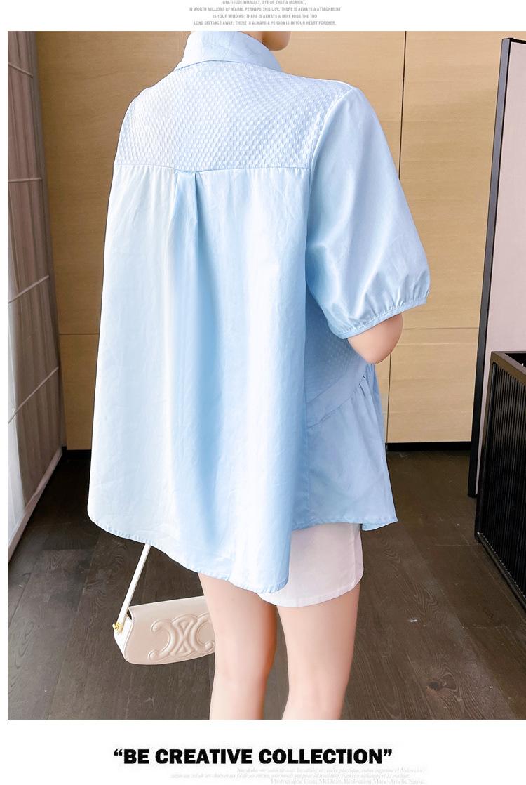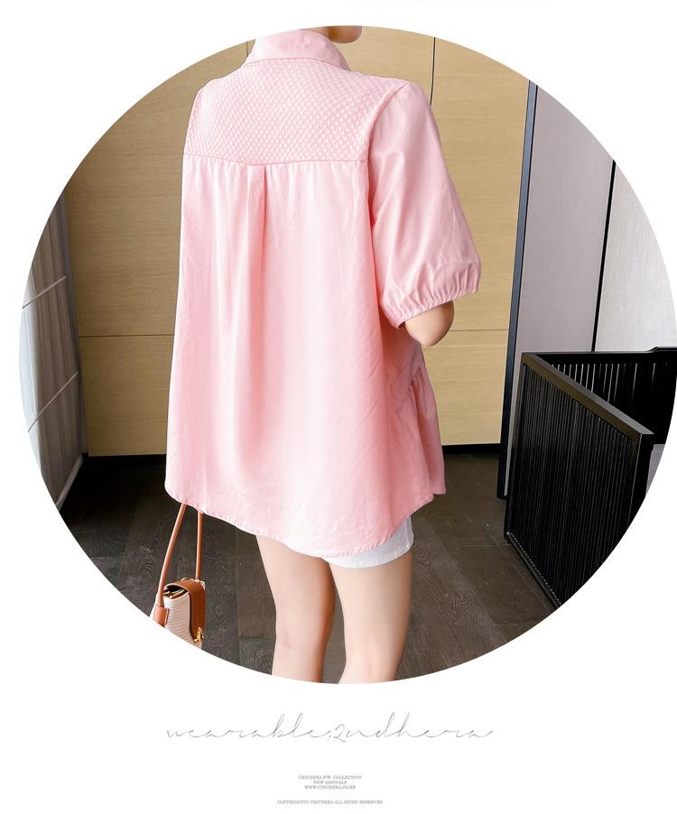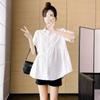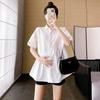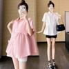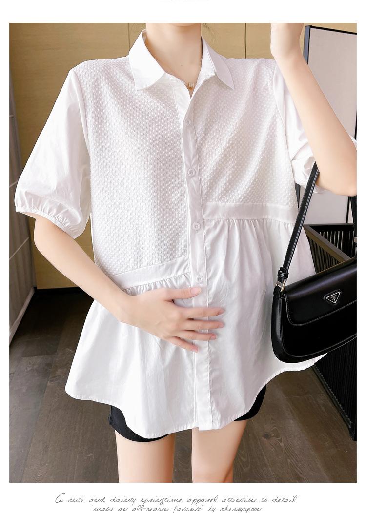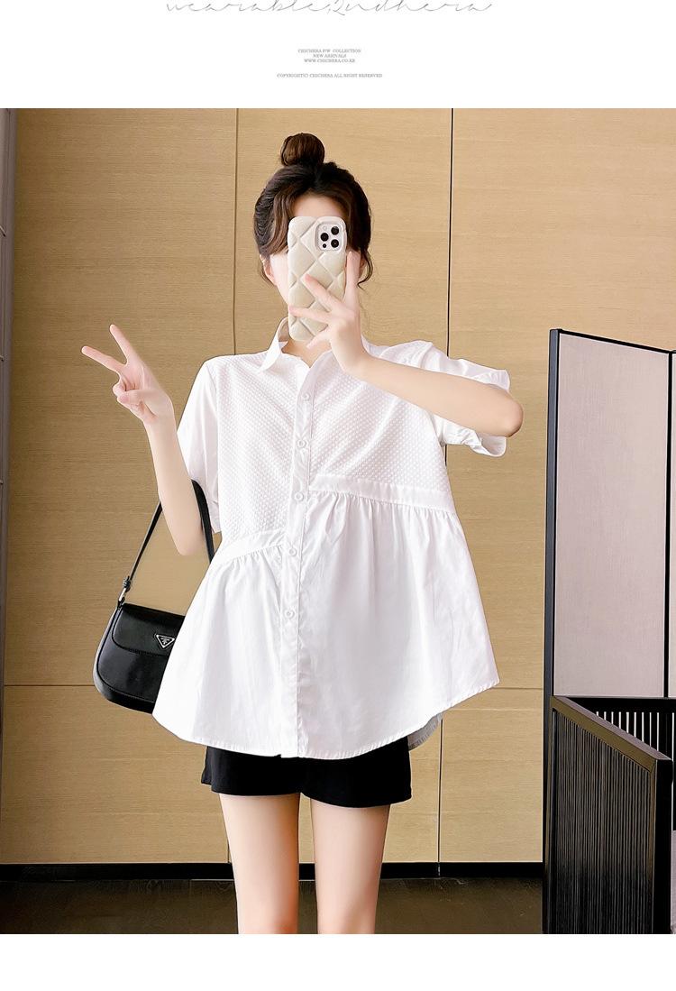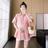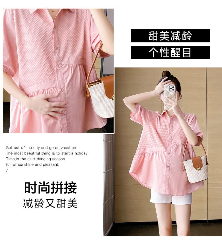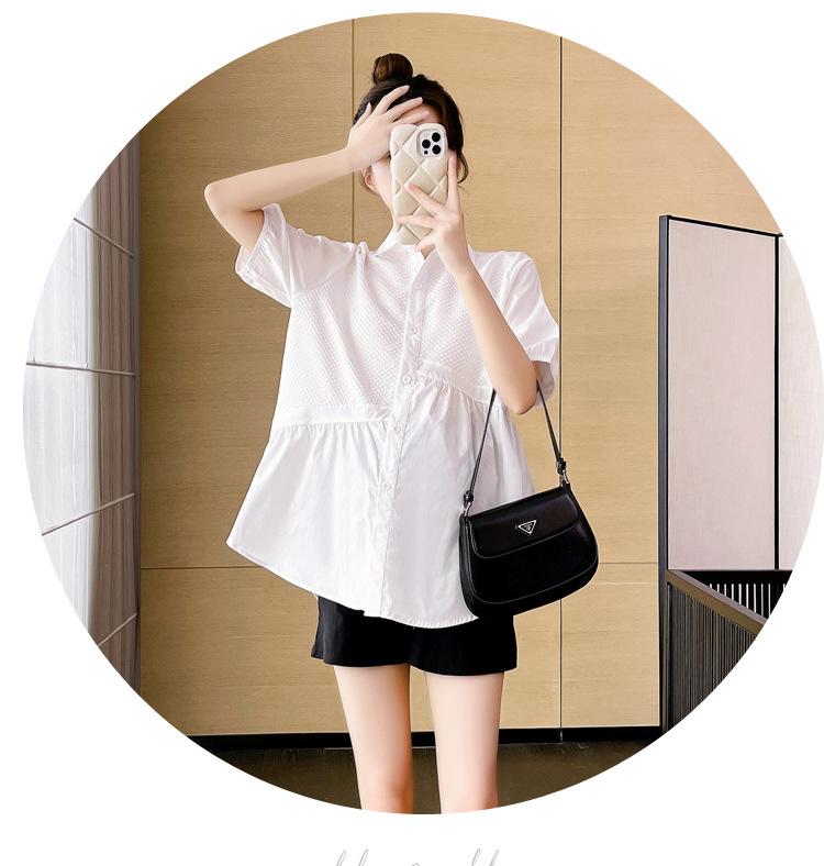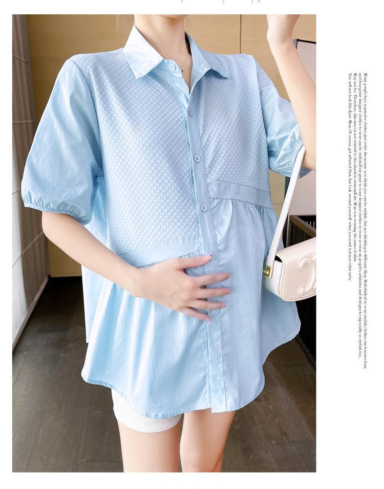Ropa de Maternidad 2025 Nuevo Verano Estilo Coreano Burbuja Estampado Suelto Top Babydoll + Shorts de Soporte para Vientre Conjunto de Dos Piezas