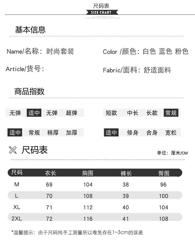 White top, Blue top, Pink top, Blue top + white shorts, White top + black shorts, Pink top + white shorts
