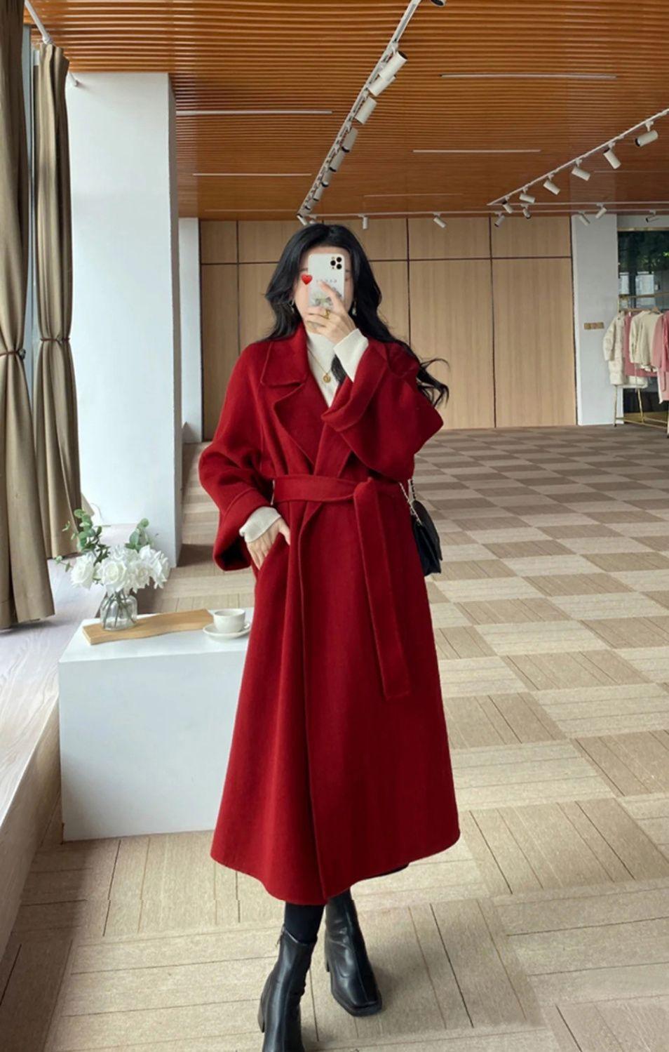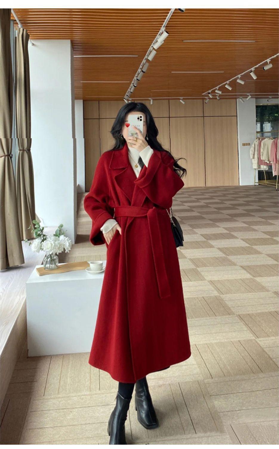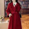 2025 Popular Abrigo de Terciopelo de Doble Vista para Mujer en Otoño e Invierno de Largo Medio Versátil Pequeño Abrigo de Lana
