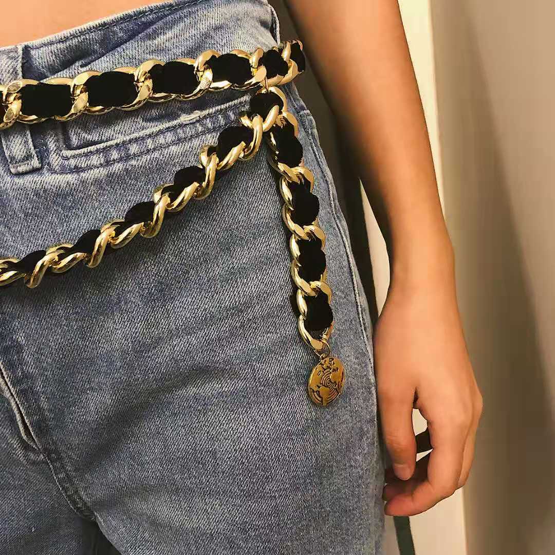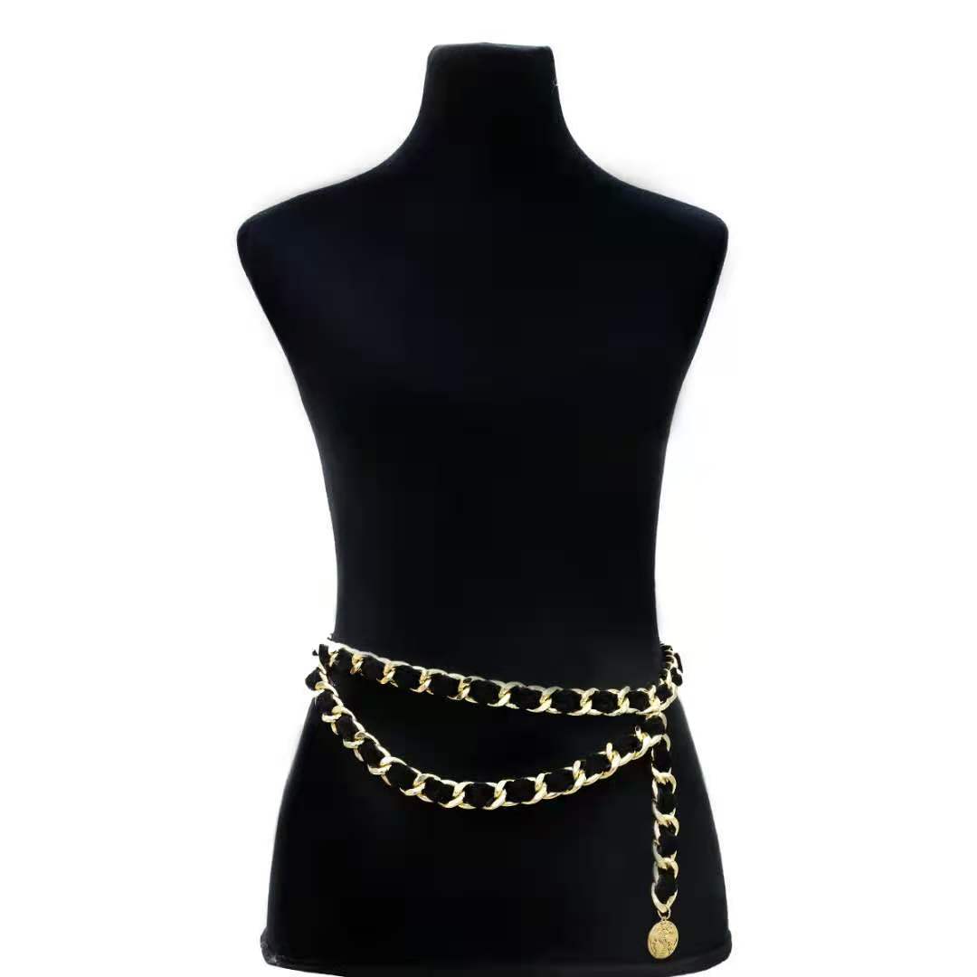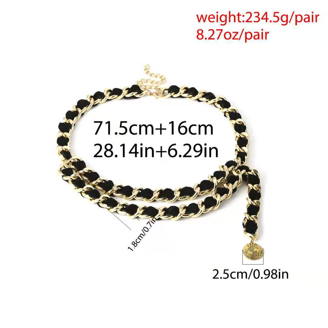 Joyería Transfronteriza Europea y Americana Exagerada Franela Aleación Moneda Adorno de Cintura Cadena Multicapa Retro para Mujer Envuelta en Tela Borla Cadena de Cintura
