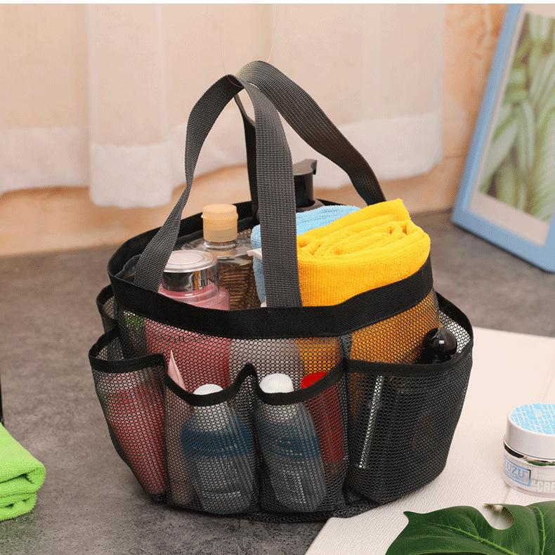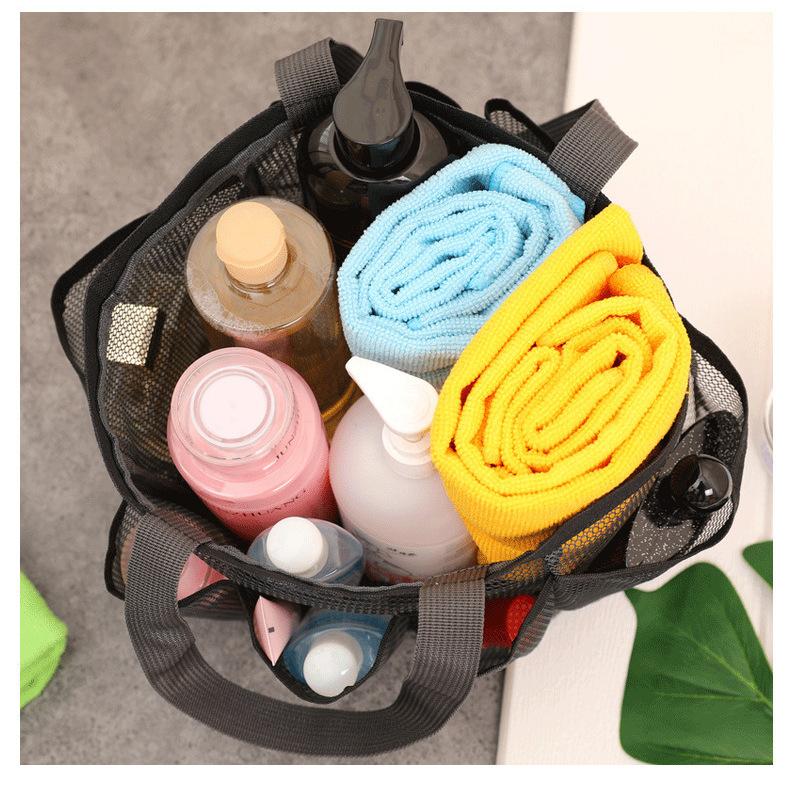 Bath basket black (7 side pockets), Bath basket gray (7 side pockets), Black mesh beach bag (8 side pockets), ...