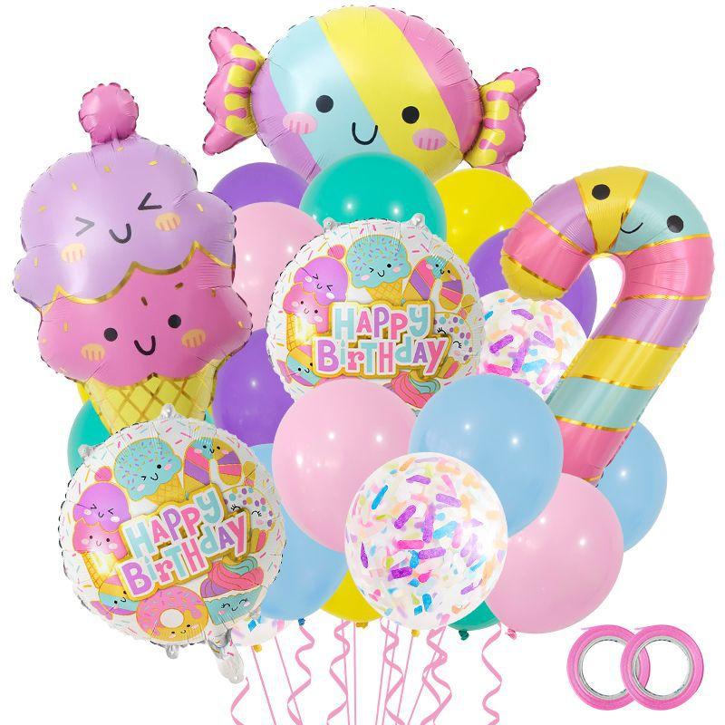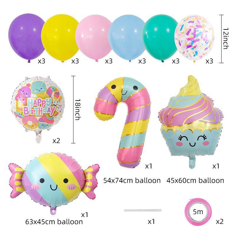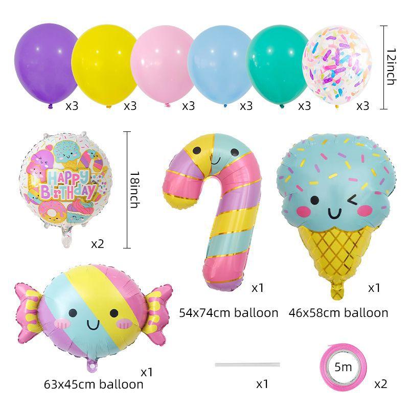 Nuevo Lindo Juego de Globos de Película de Aluminio de Caramelo Helado Látex Lentejuelas Decoración de Cumpleaños para Niños Suministros para Arreglos