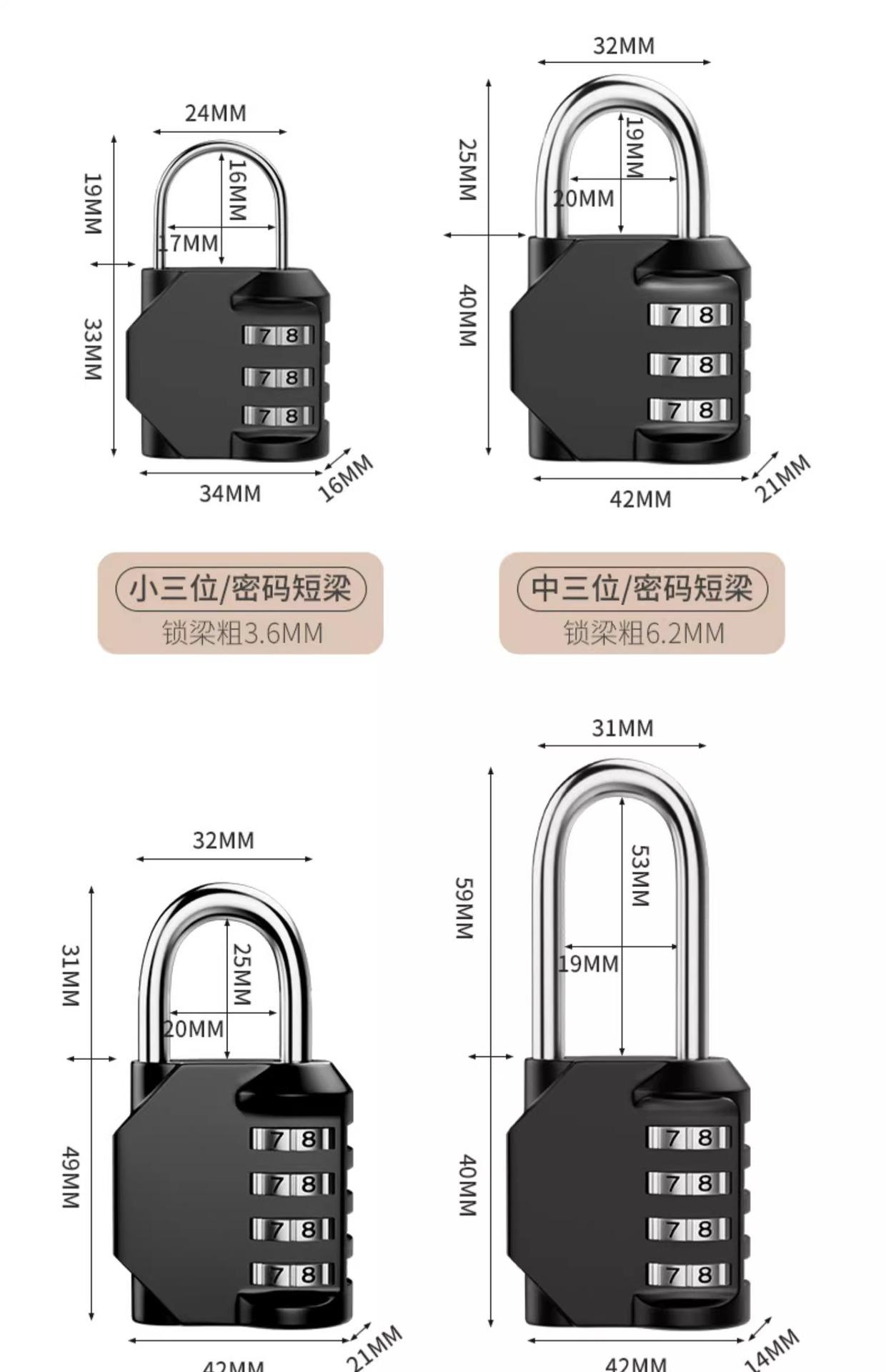 Candado de Contraseña Mini Tamaño Pequeño Almacenamiento en Casa Taquilla Maleta Dormitorio Gimnasio Casco Bicicleta Cesta Mochila Cabeza de Candado