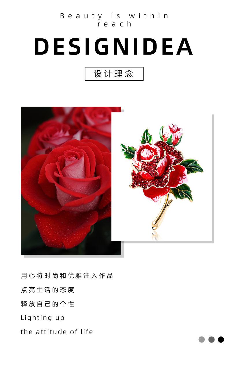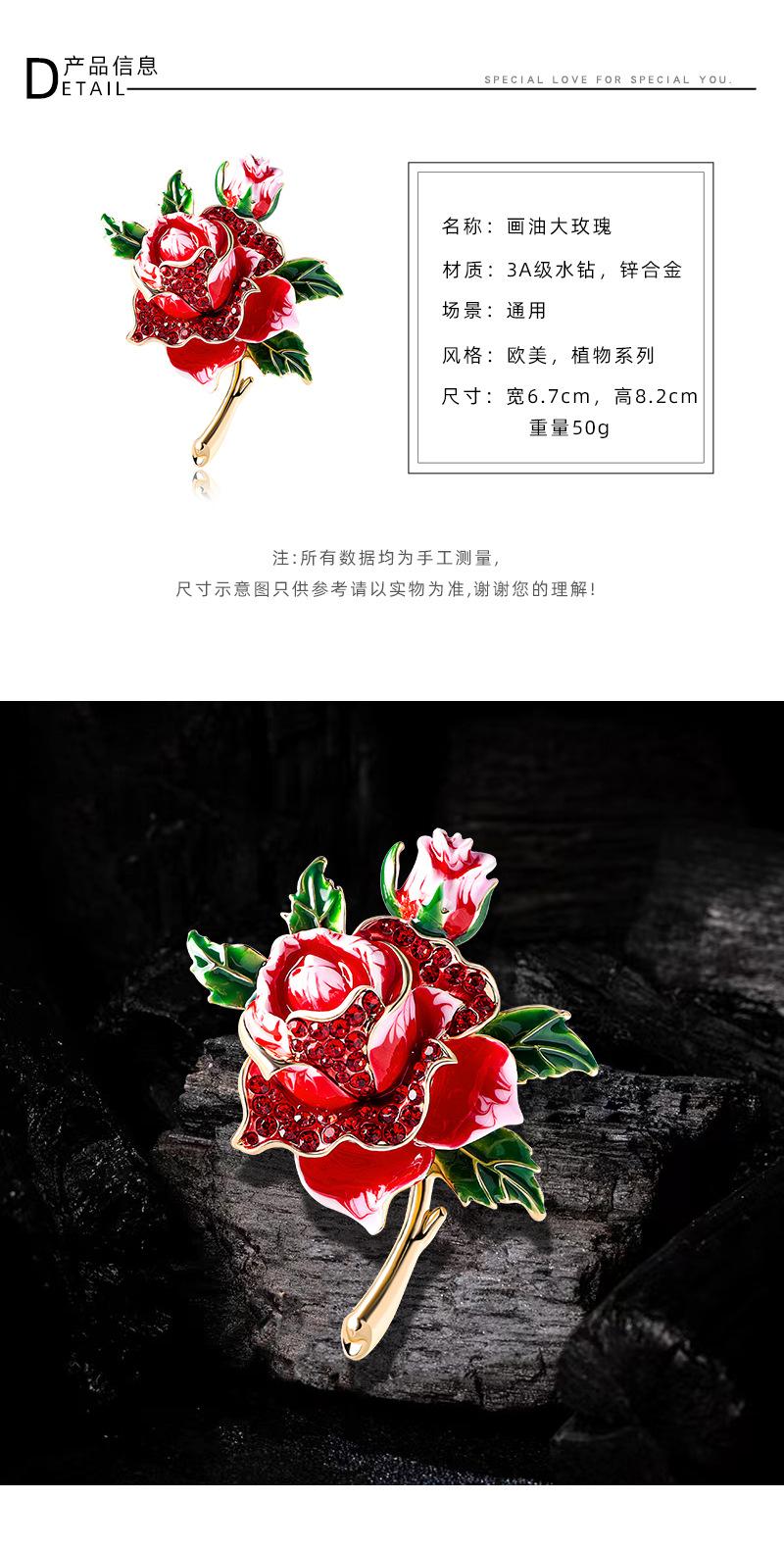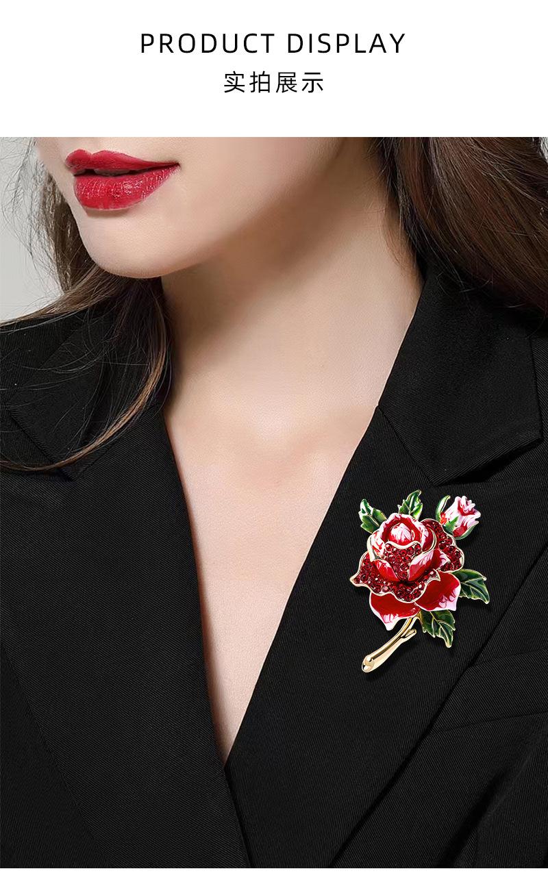 Moda Europea y Americana Broche de Rosa Aleación Esmalte Goteo de Aceite Planta Corsage Ropa Broche de Alta Gama Venta al por Mayor en Vivo