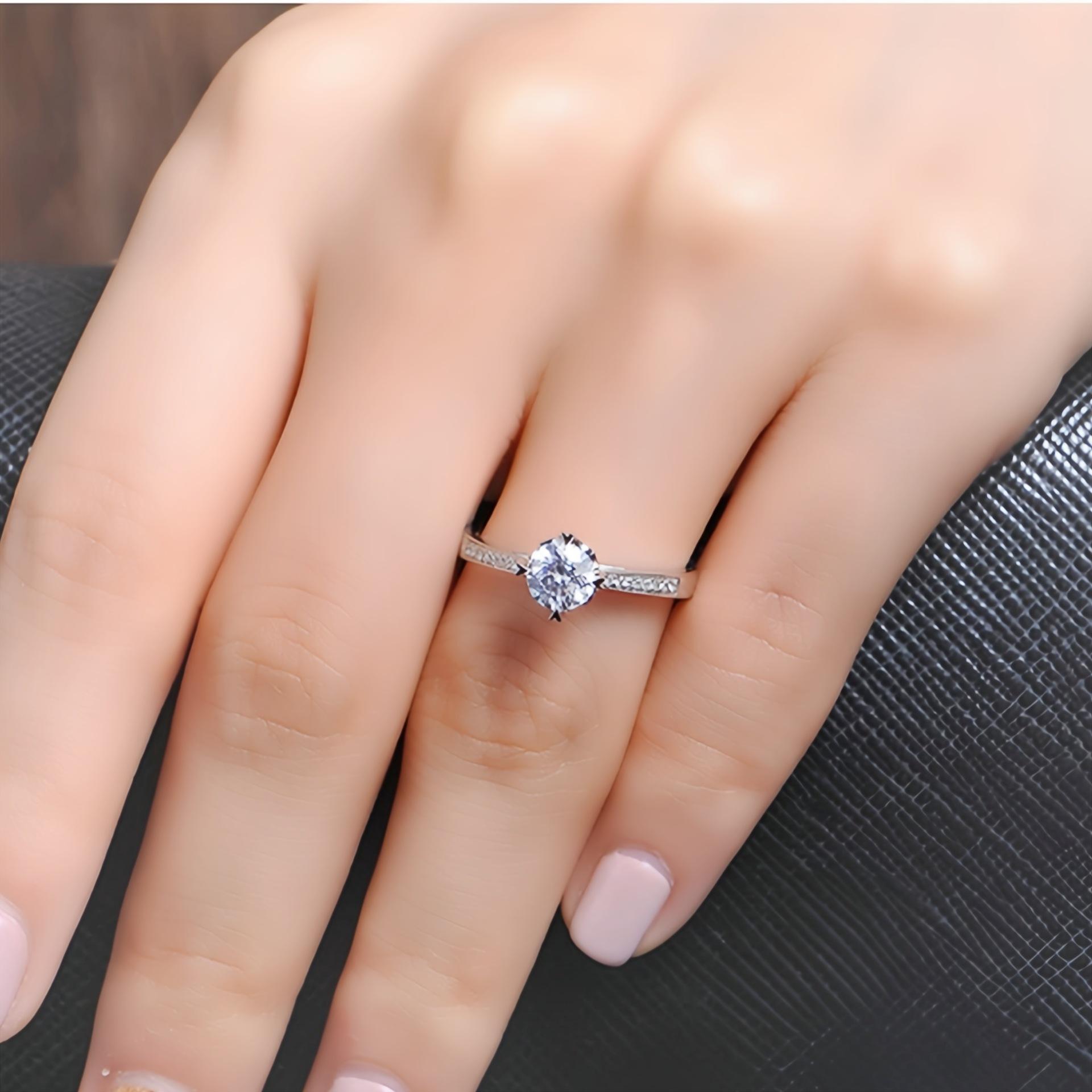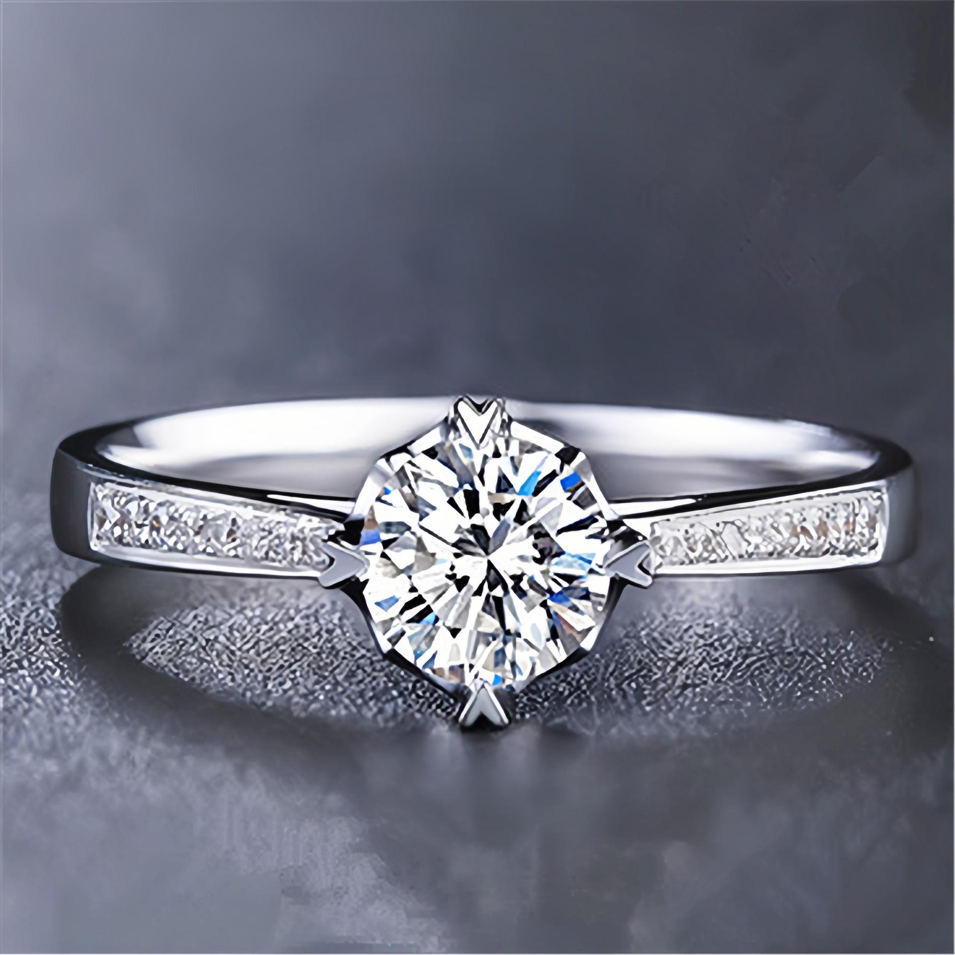 Versión Coreana del Anillo de Amor Copo de Nieve Transfronterizo, Anillo de Diamantes para Boda, Elegante Anillo de Circón con Forma de Corazón, Anillo de Corazón con Fila de Diamantes al por Mayor
