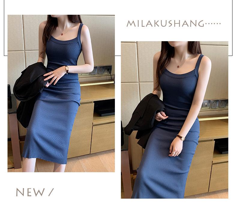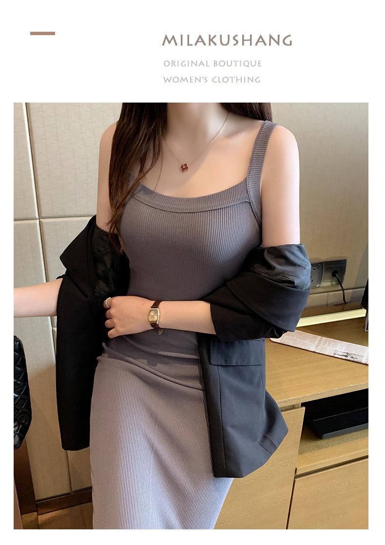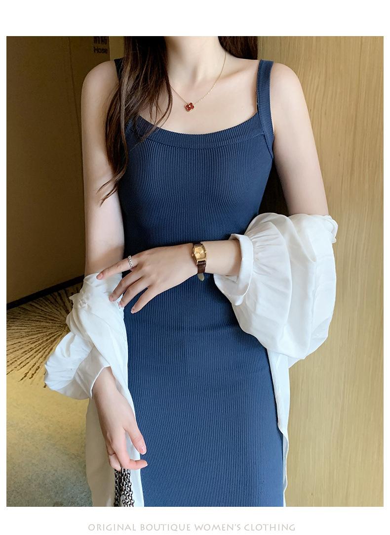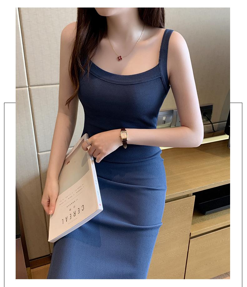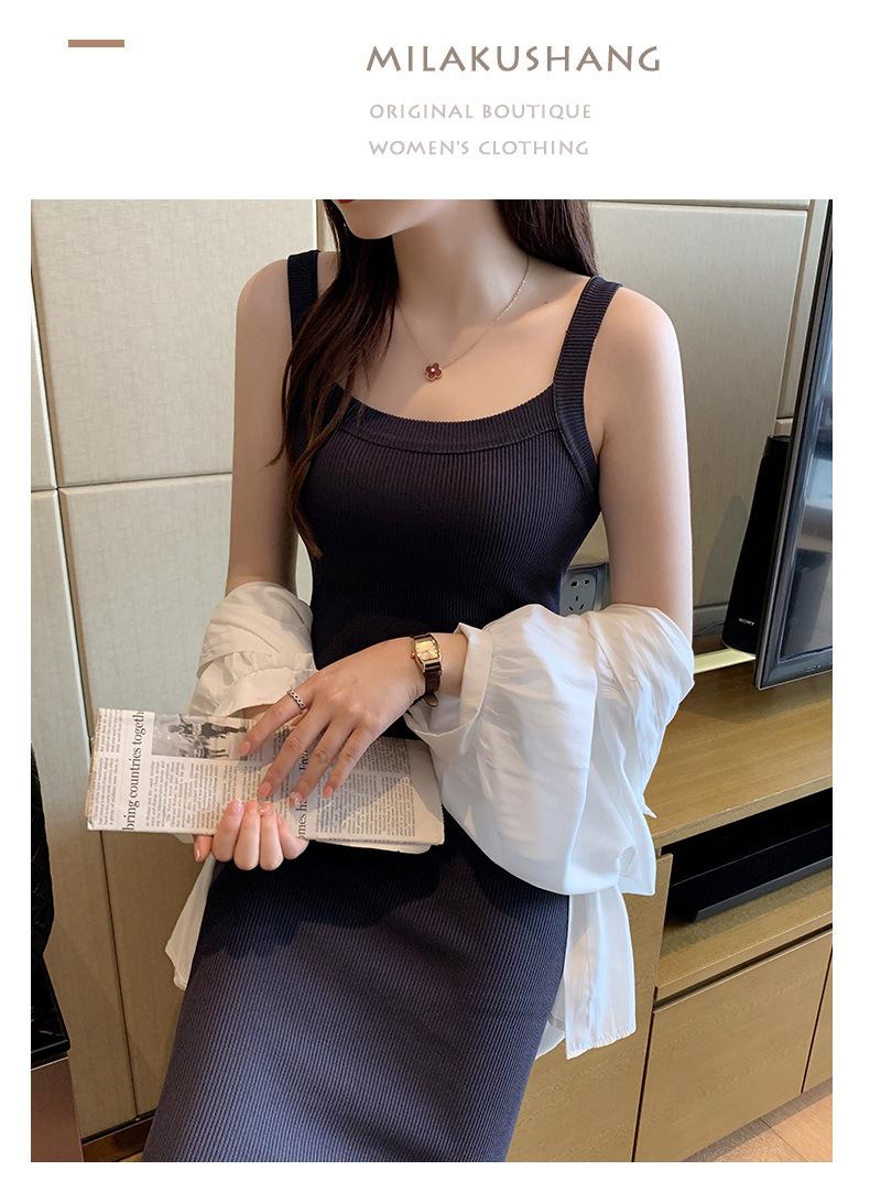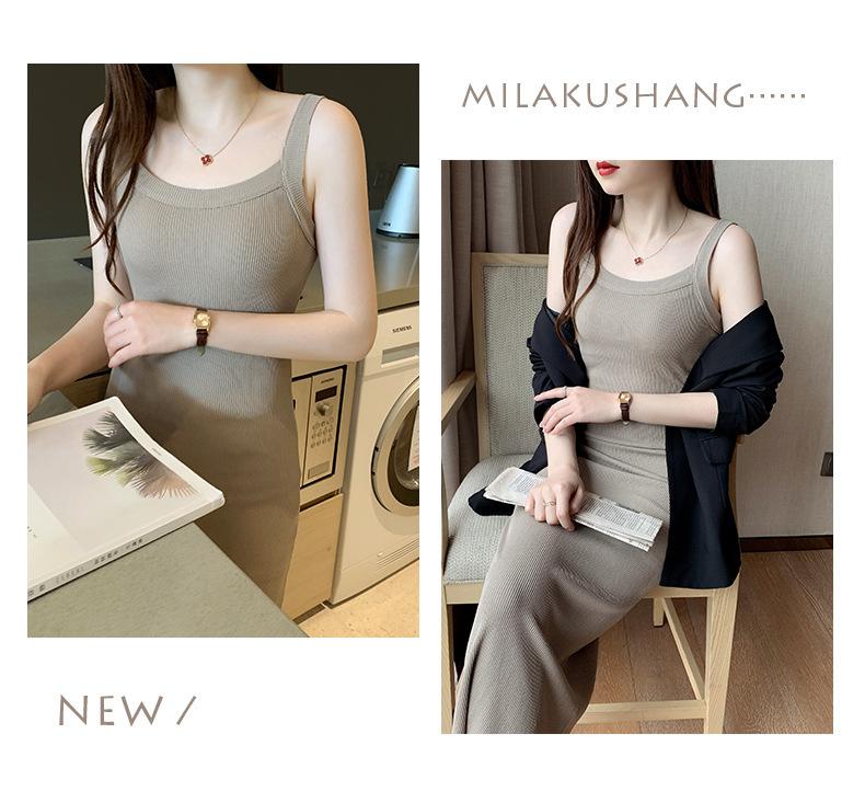 Vestido bandolera de cubo ancho de hombro cruzado para mujer, verano nuevo, largo hasta la rodilla, chaleco largo, corte ajustado, adelgazante, moda combinable