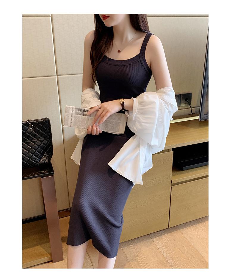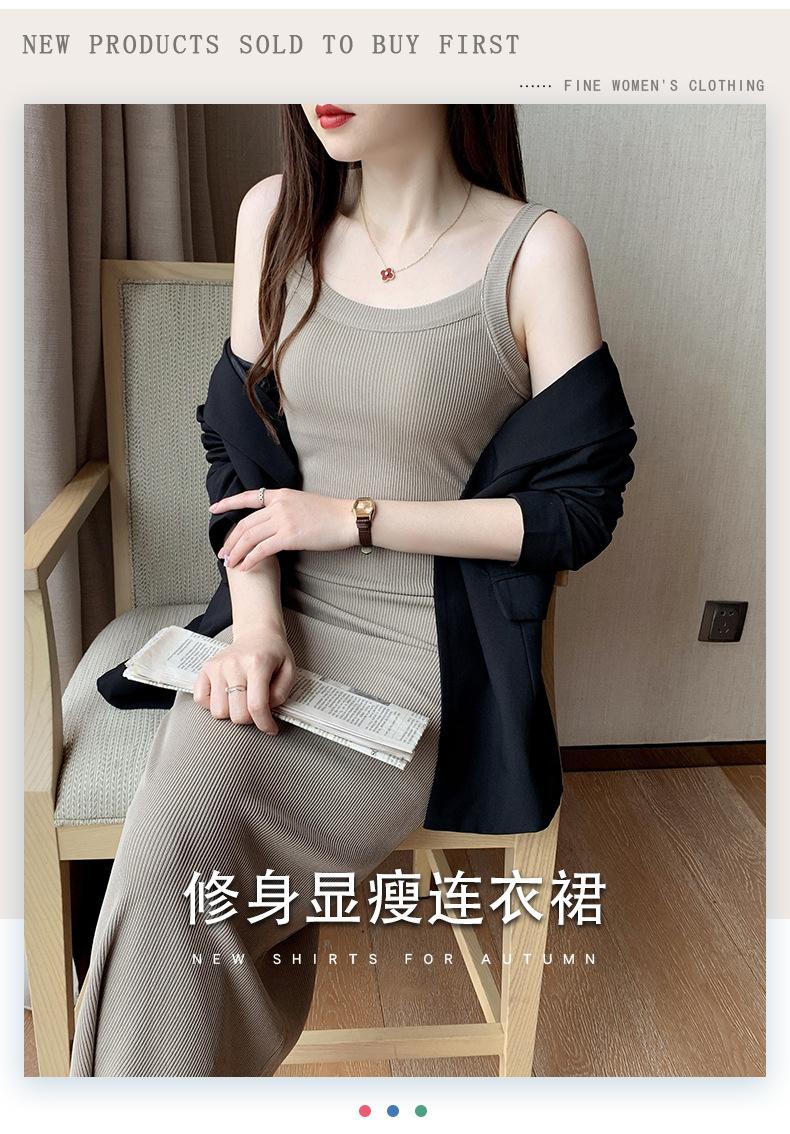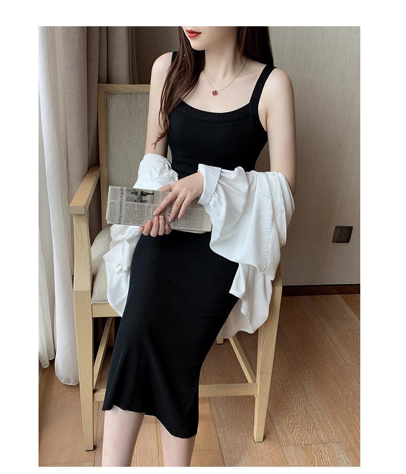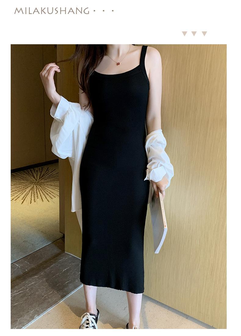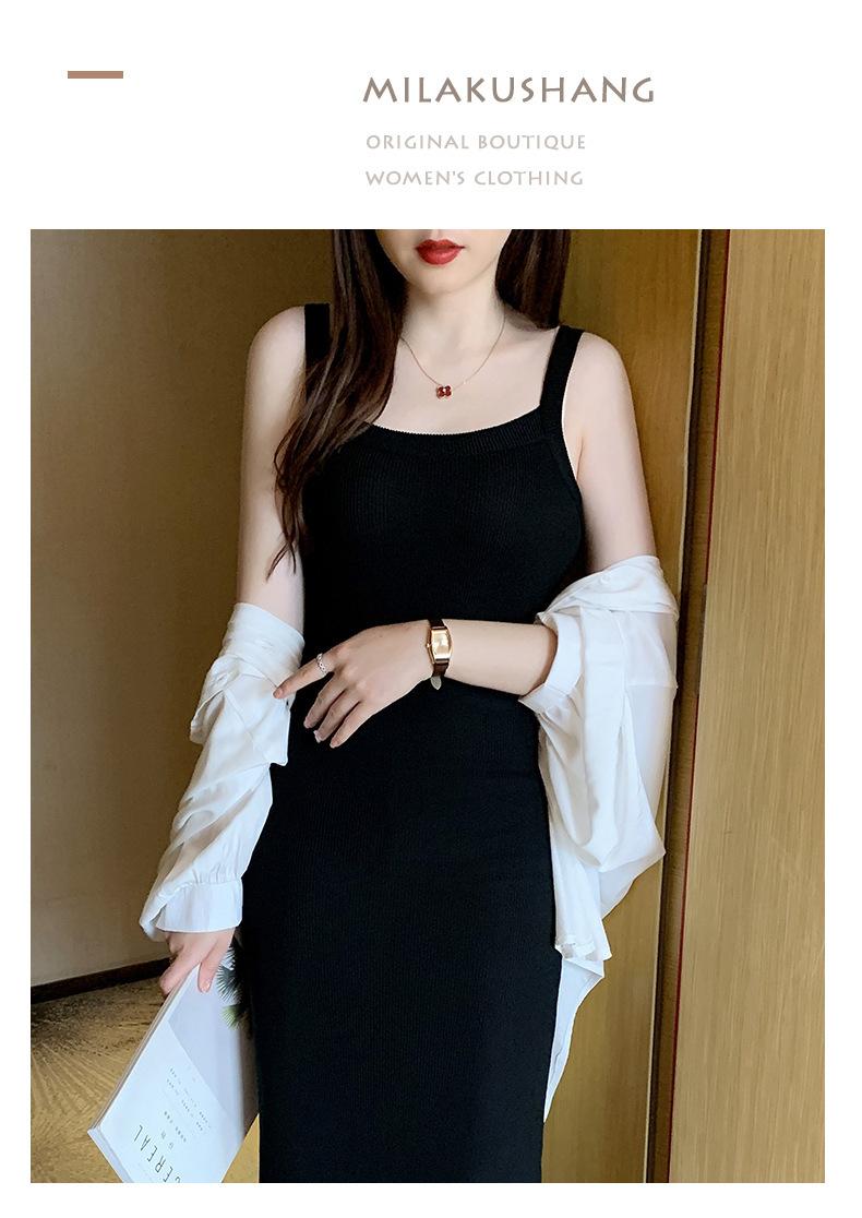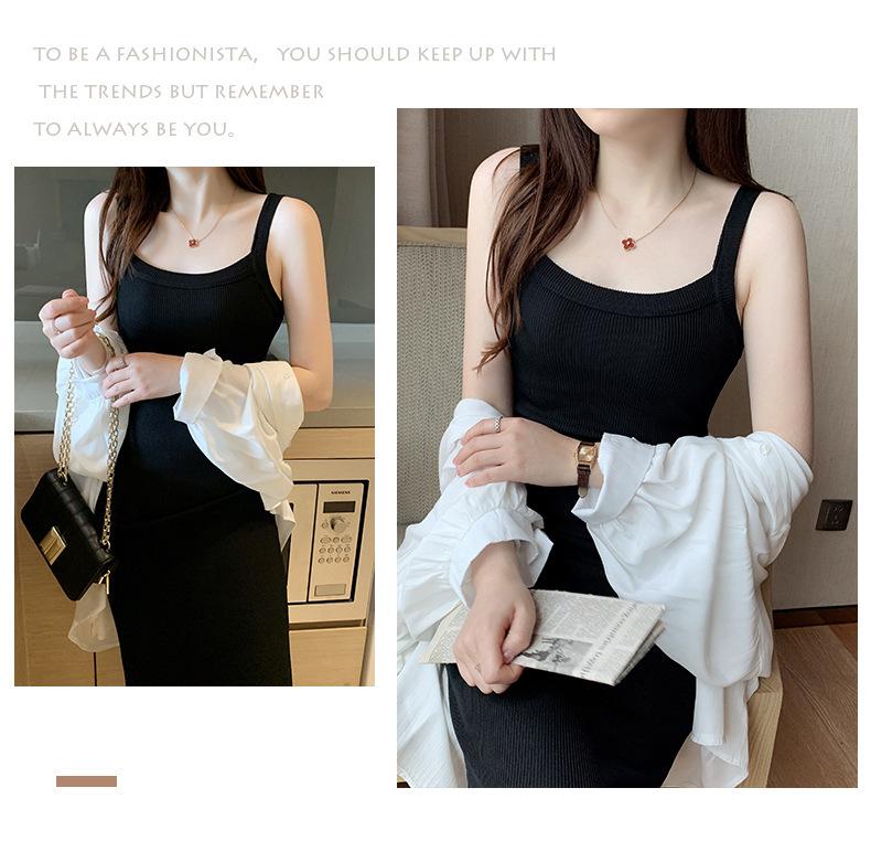 Vestido bandolera de cubo ancho de hombro cruzado para mujer, verano nuevo, largo hasta la rodilla, chaleco largo, corte ajustado, adelgazante, moda combinable