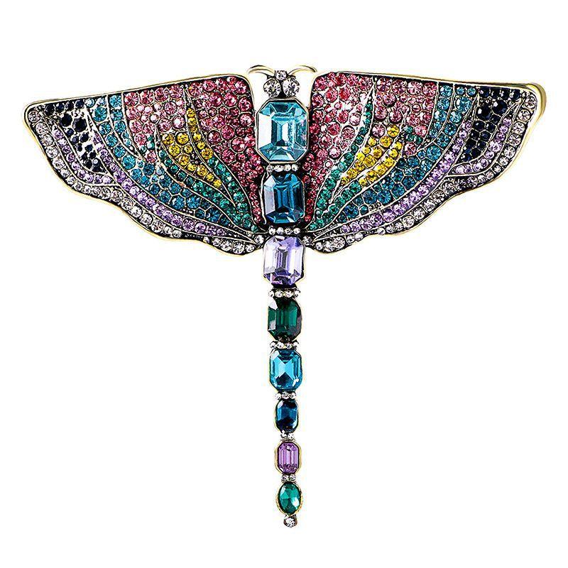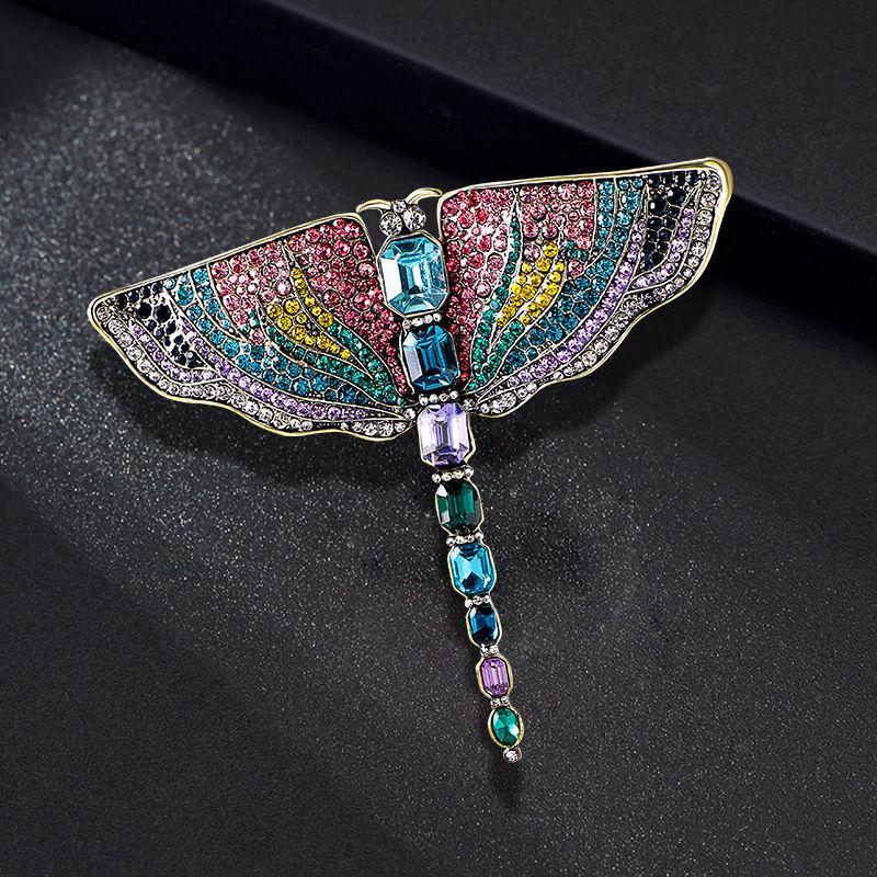 Broche Libélula Europeo y Americano Retro Pedrería Accesorios Moda Versátil Cristal Insecto Pin Hombres y Mujeres Temperamento Ramillete Joyería