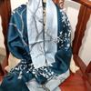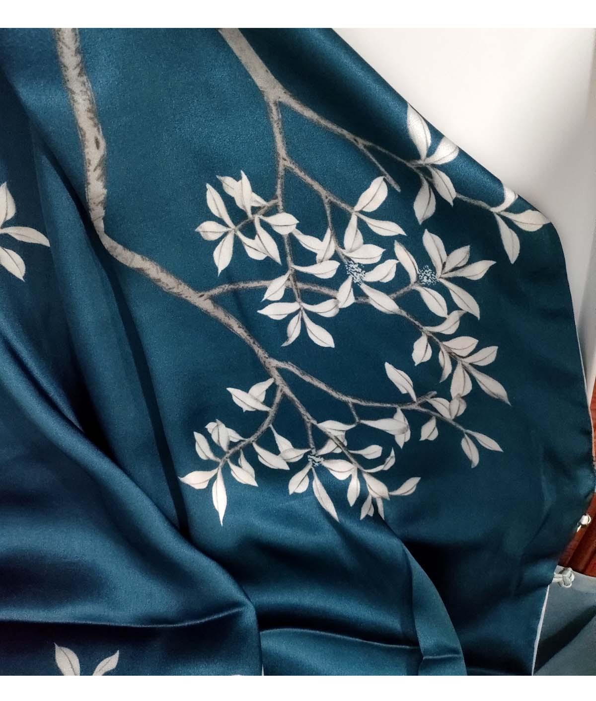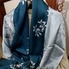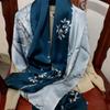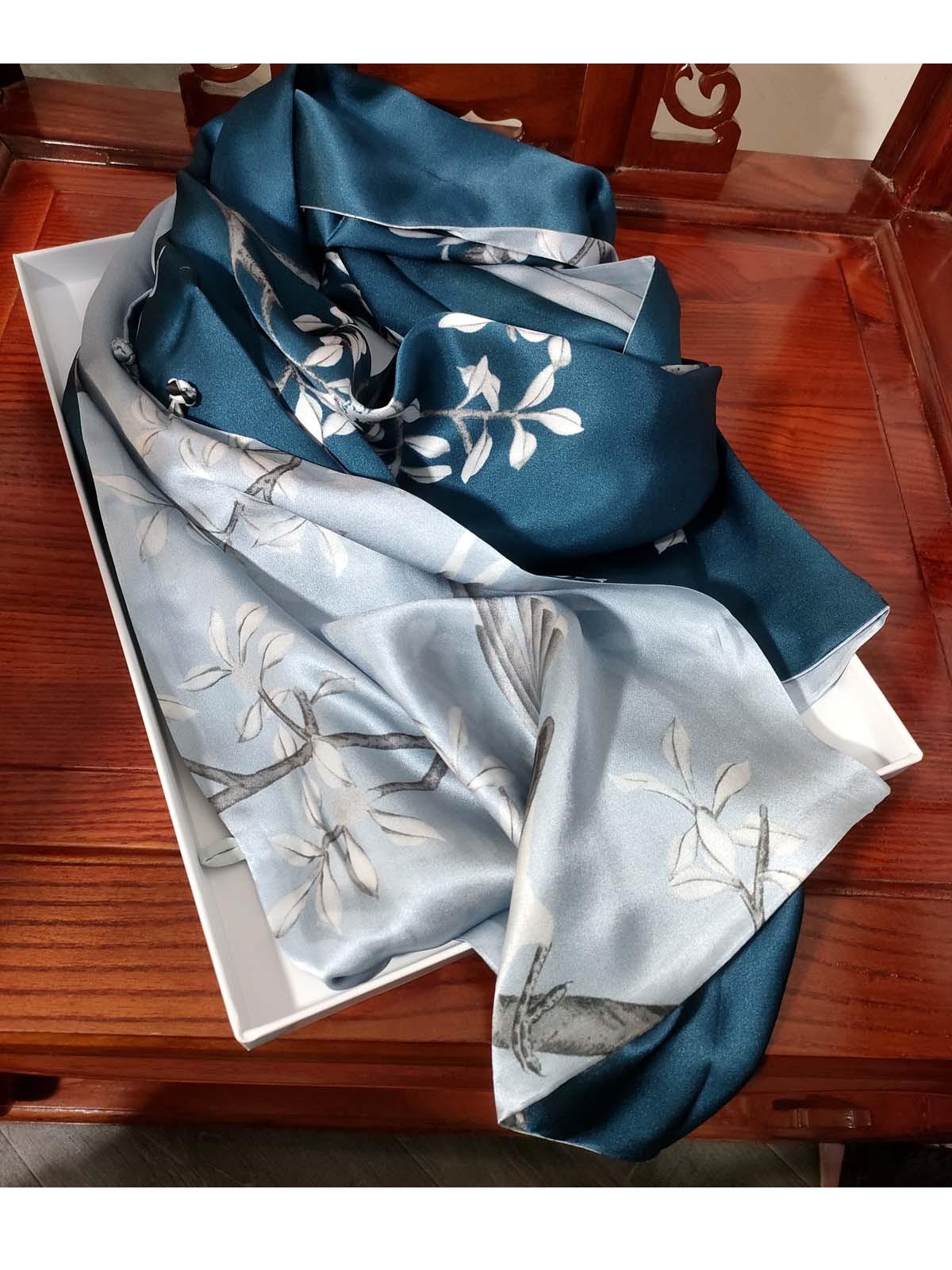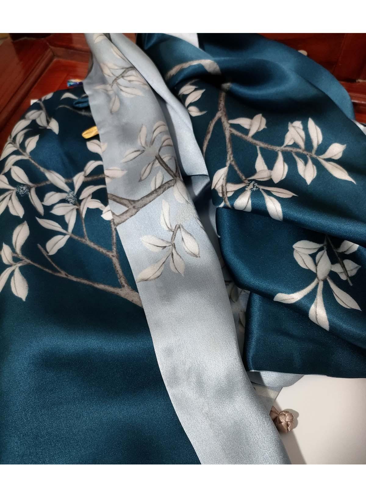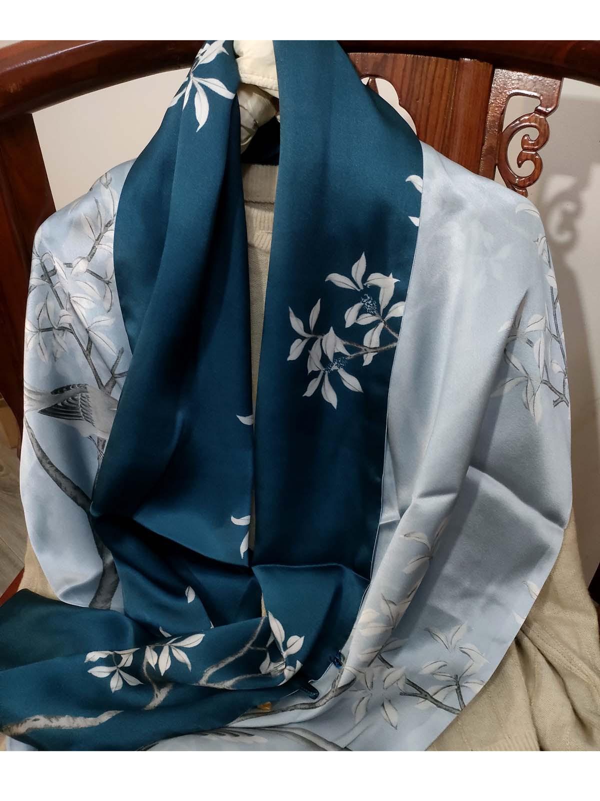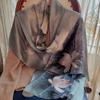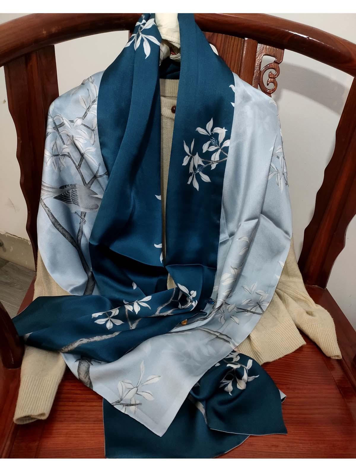 Bufanda de seda satinada con hebilla de loto para mujer Versátil para primavera y otoño Chal de doble capa largo de seda de morera de doble uso