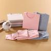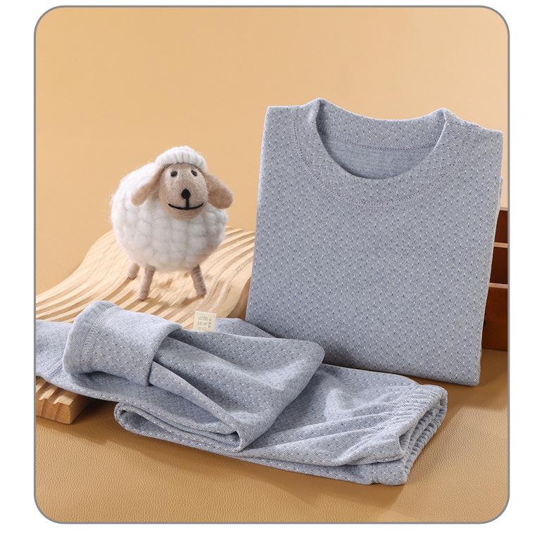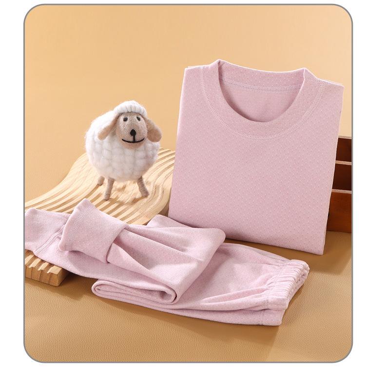 Nuevo Traje de Ropa Interior Térmica de Terciopelo sin Huesos para Niños Ropa de Otoño Gruesa con Cuello Redondo para Niños y Niñas Calzoncillos Largos Pijama de Bebé