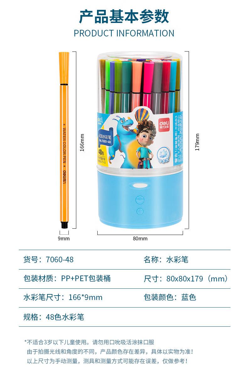 Pluma Acuarela Deli 7060-12/18/24/36/48 Colores Punta Fina Varilla Hexagonal Pluma Acuarela Opcional Multicolor Pincel para Pintar