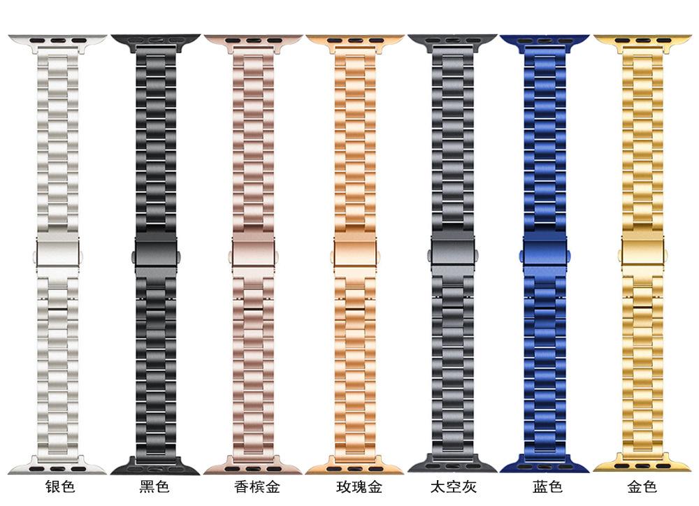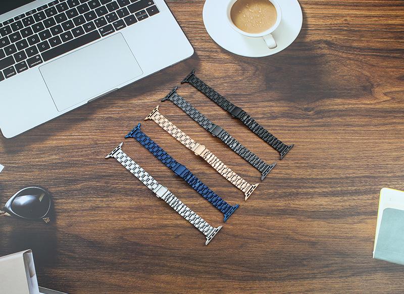 Adecuado para Apple Watch 123456se 7 8 ultra correa de reloj sólida de tres eslabones de acero inoxidable