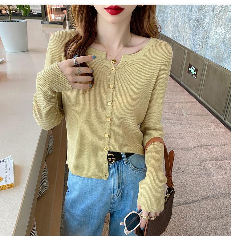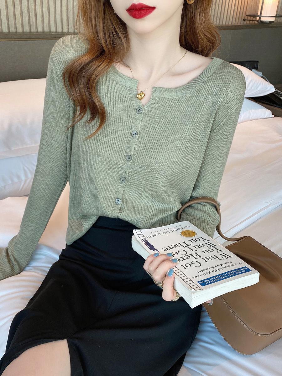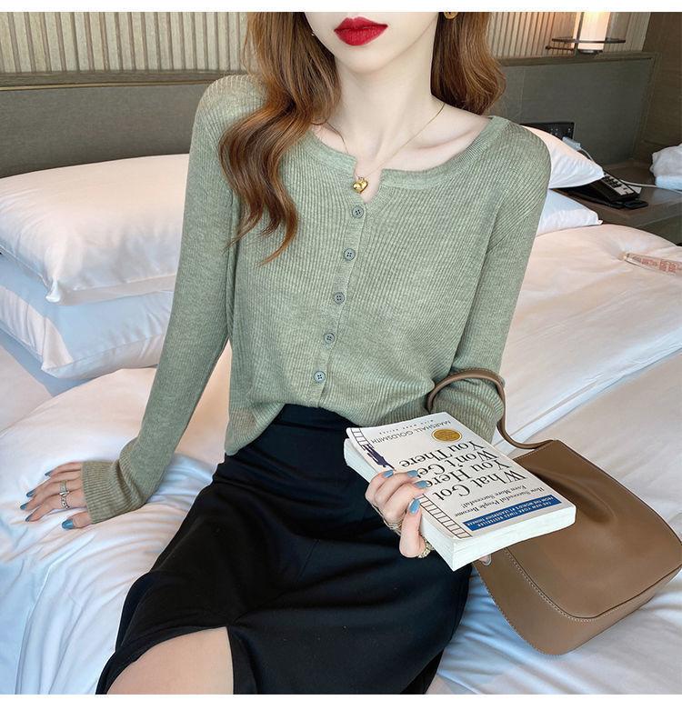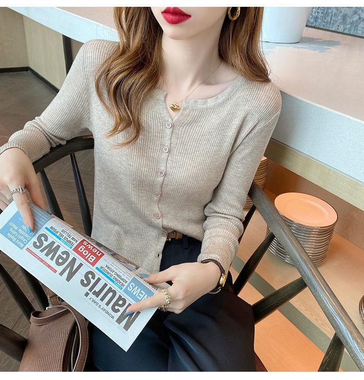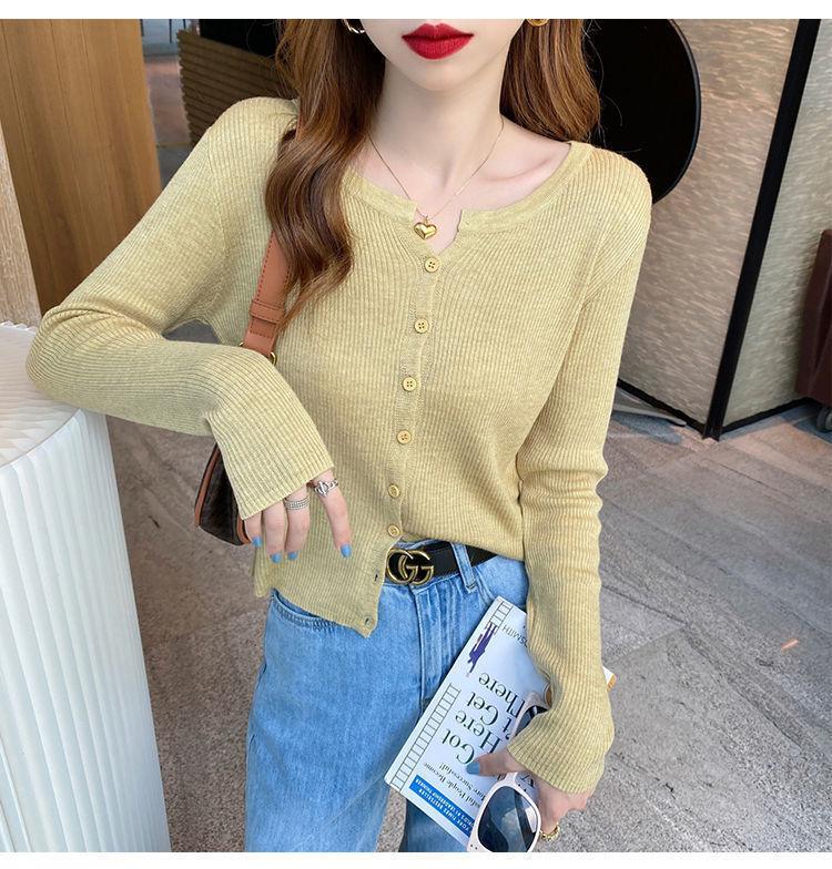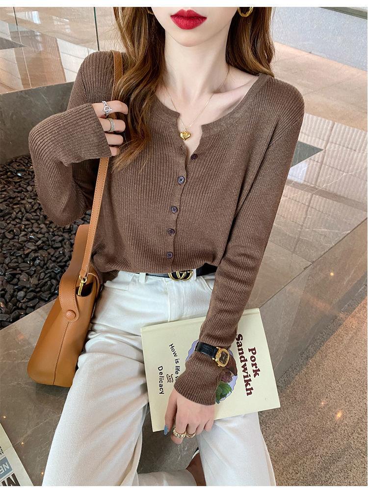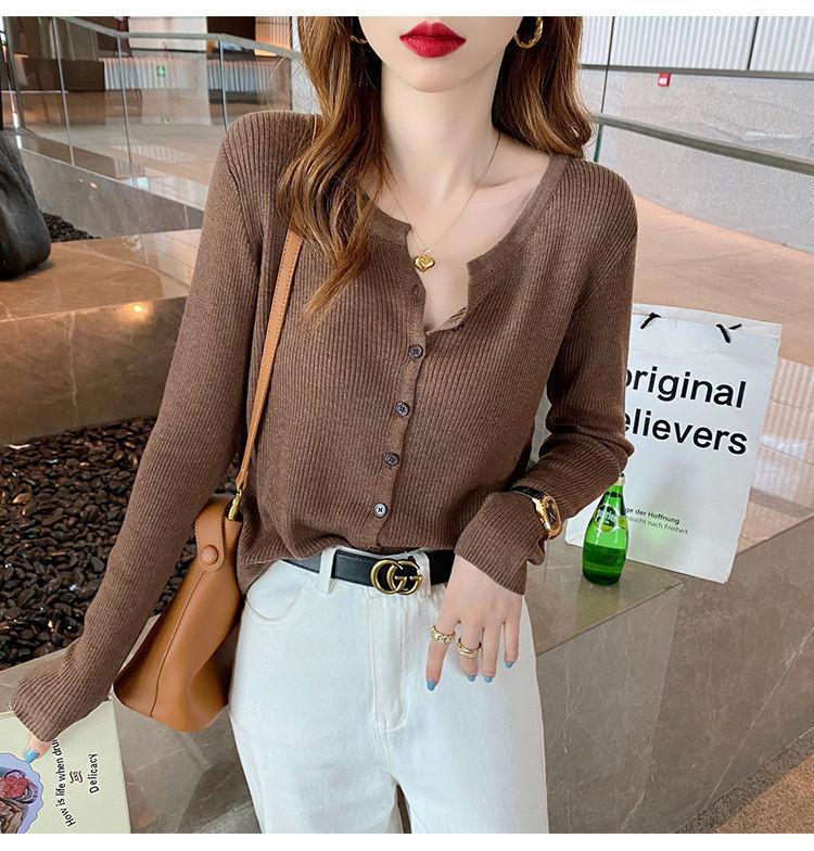 Nuevo cárdigan de punto de verano 2023 para mujer, top versátil de fondo de manga larga, abrigo de suéter fino de primavera y otoño para mujer