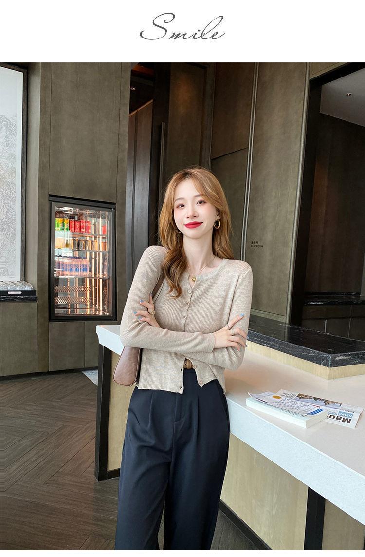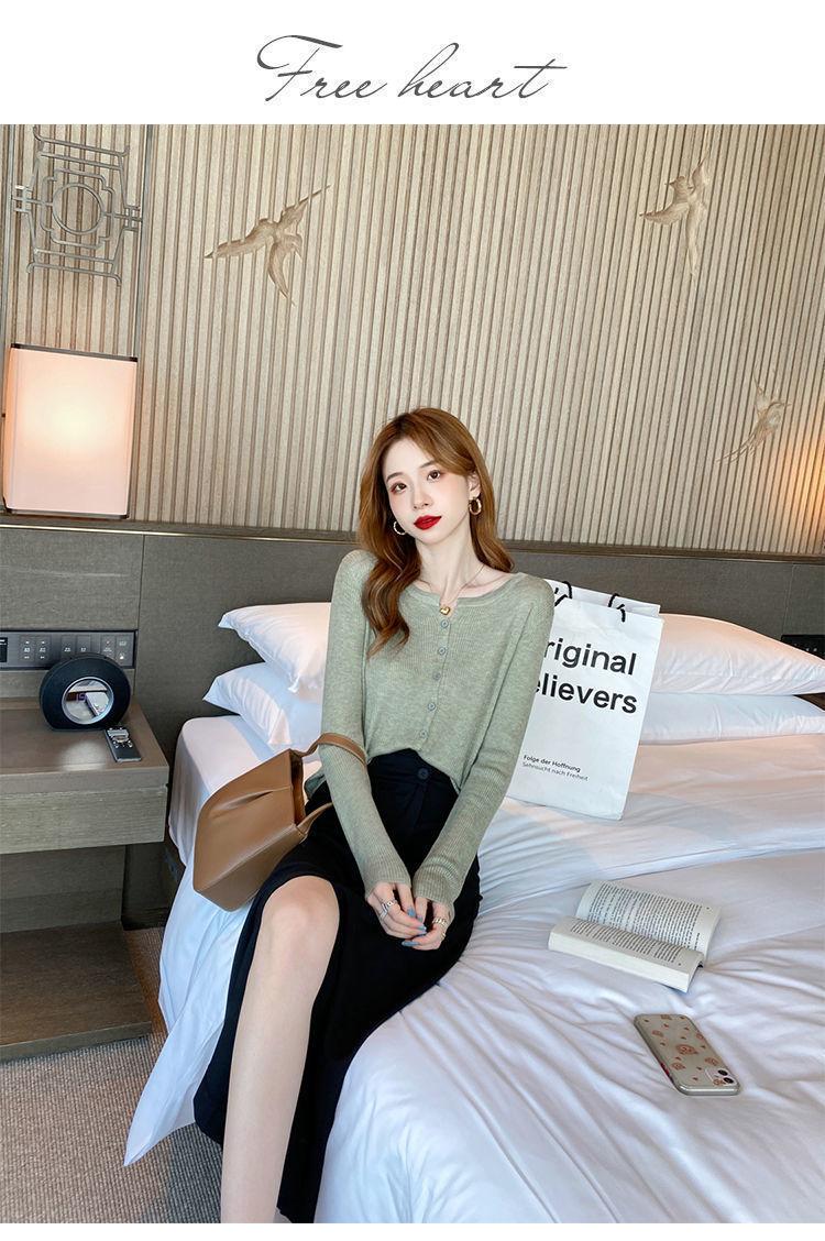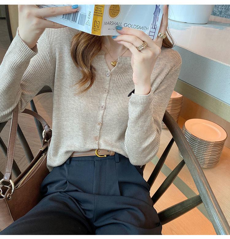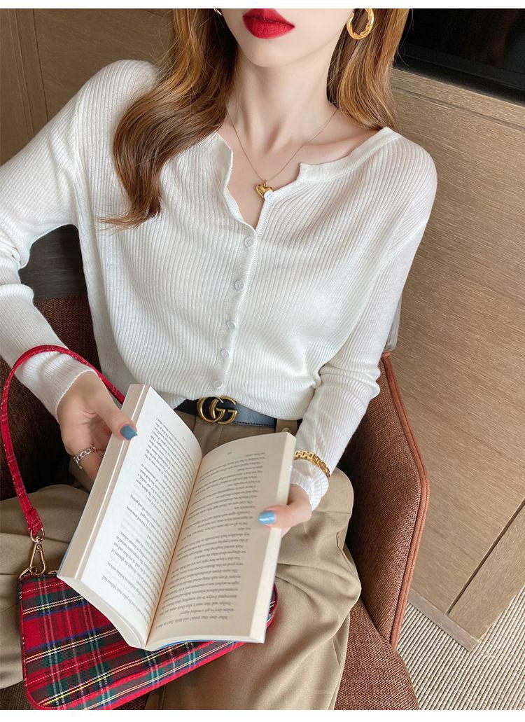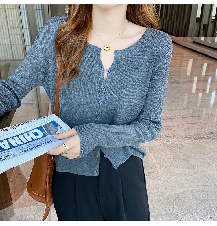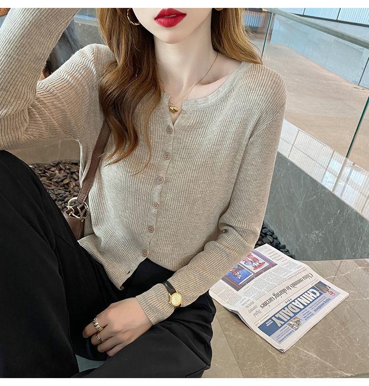 Nuevo cárdigan de punto de verano 2023 para mujer, top versátil de fondo de manga larga, abrigo de suéter fino de primavera y otoño para mujer