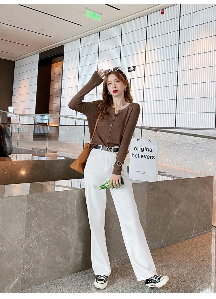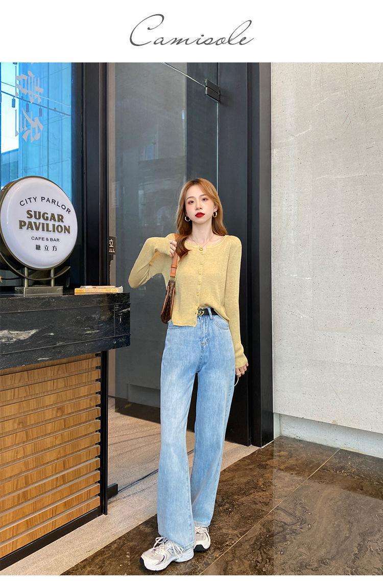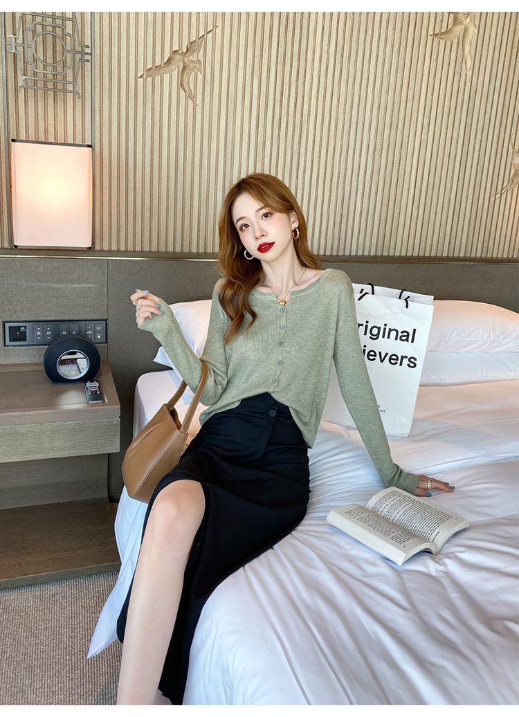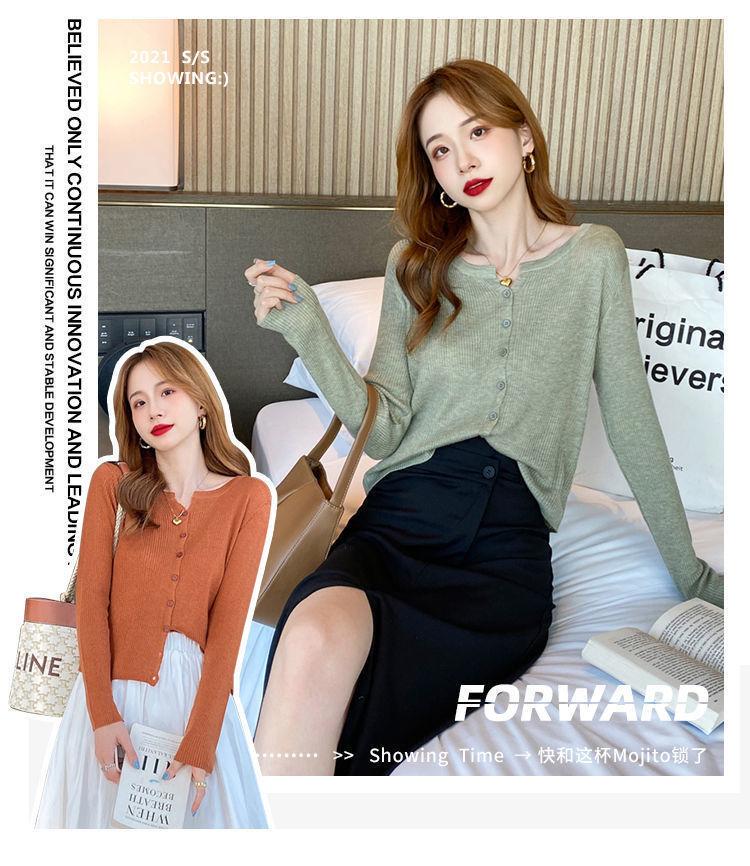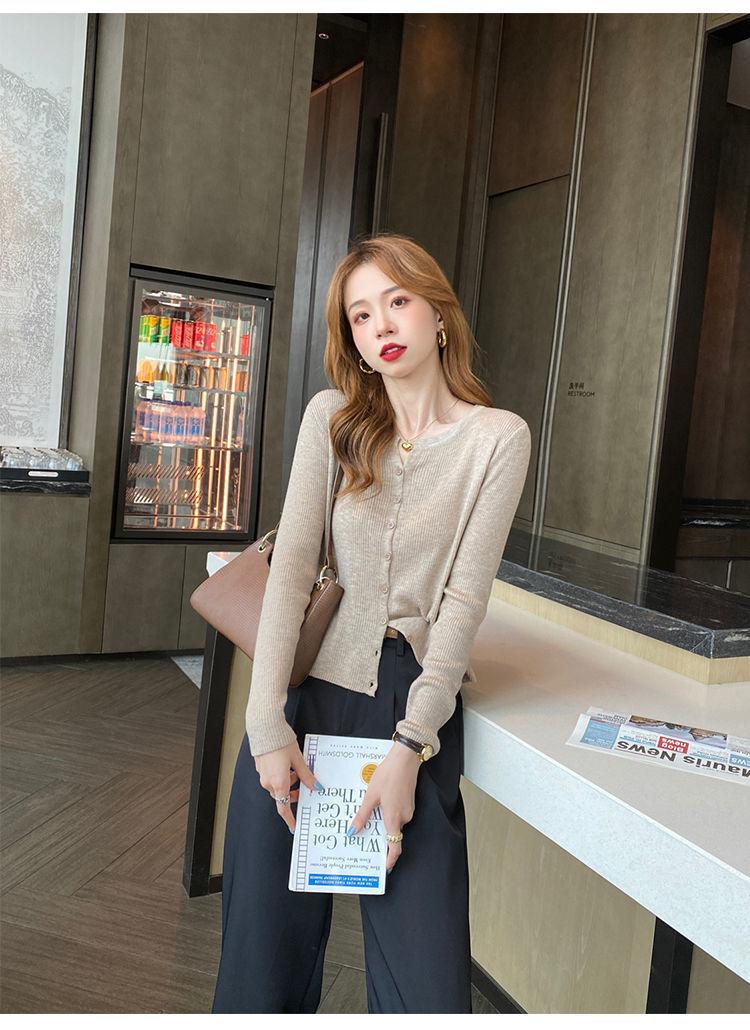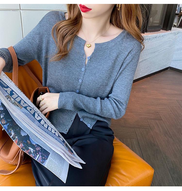 Nuevo cárdigan de punto de verano 2023 para mujer, top versátil de fondo de manga larga, abrigo de suéter fino de primavera y otoño para mujer