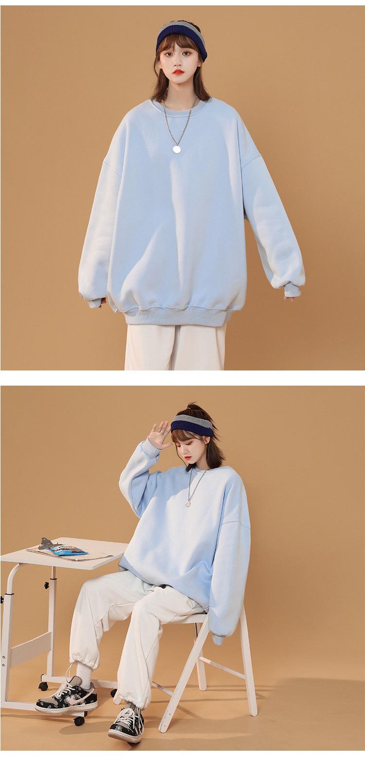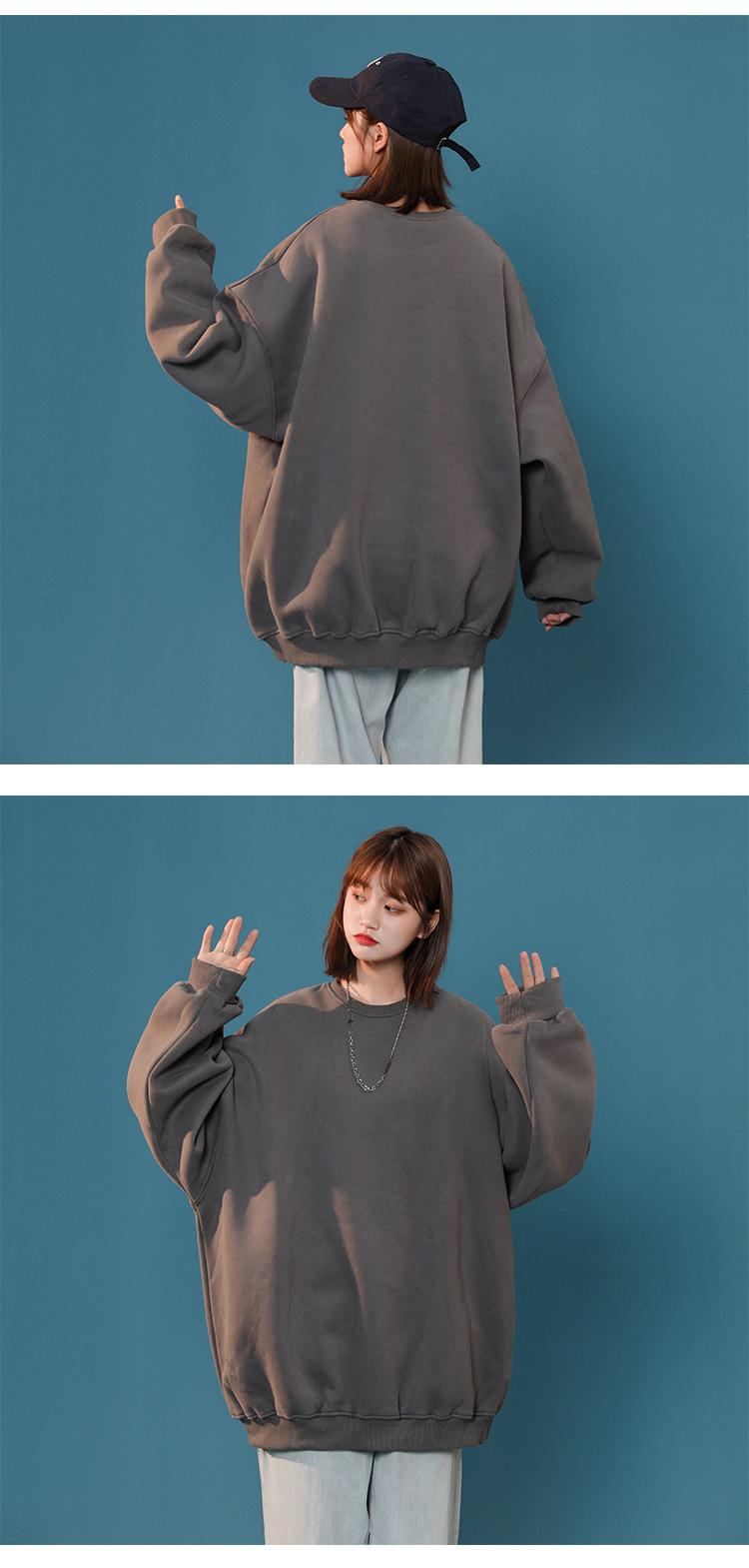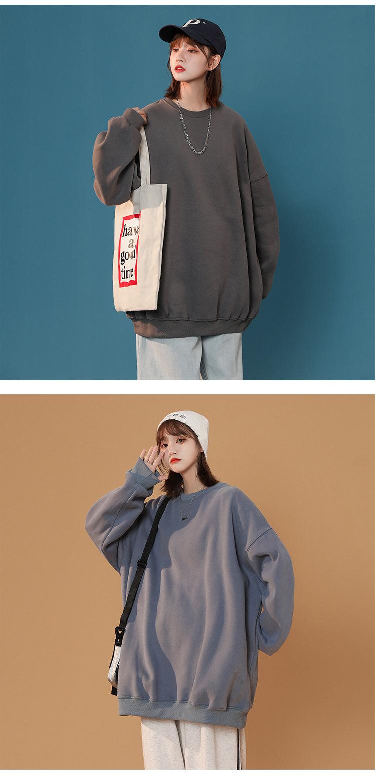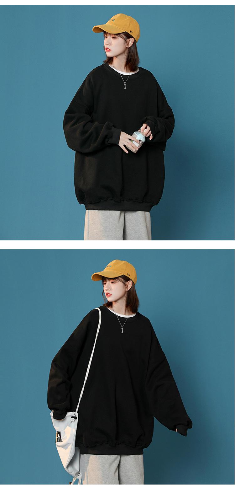 S-5XL talla grande Sudadera de cuello redondo de color sólido para mujer Pareja Manga larga Jersey Chaqueta Sudadera de placa ligera