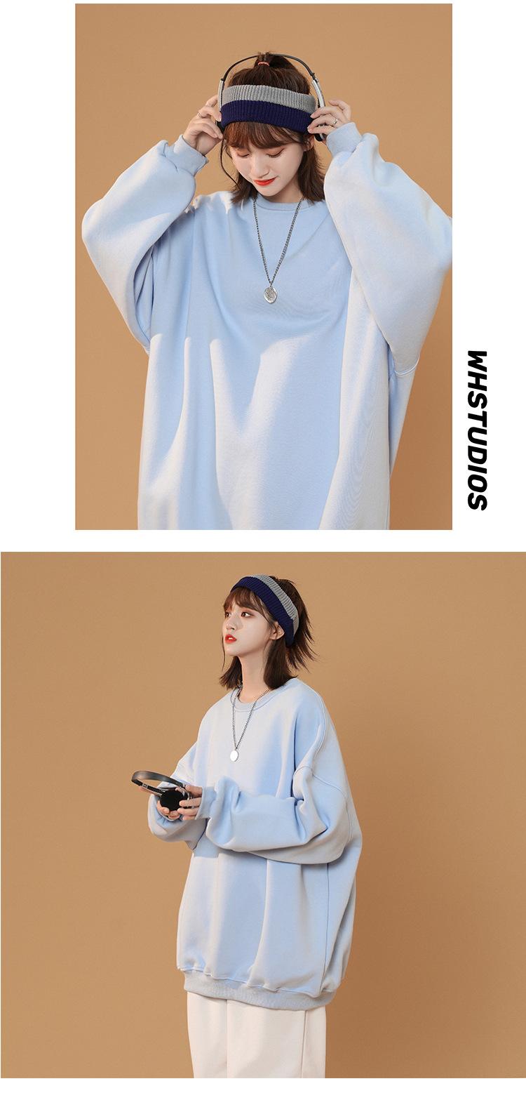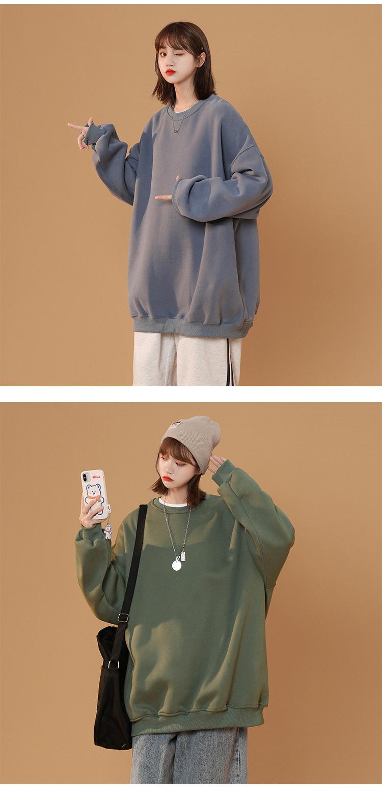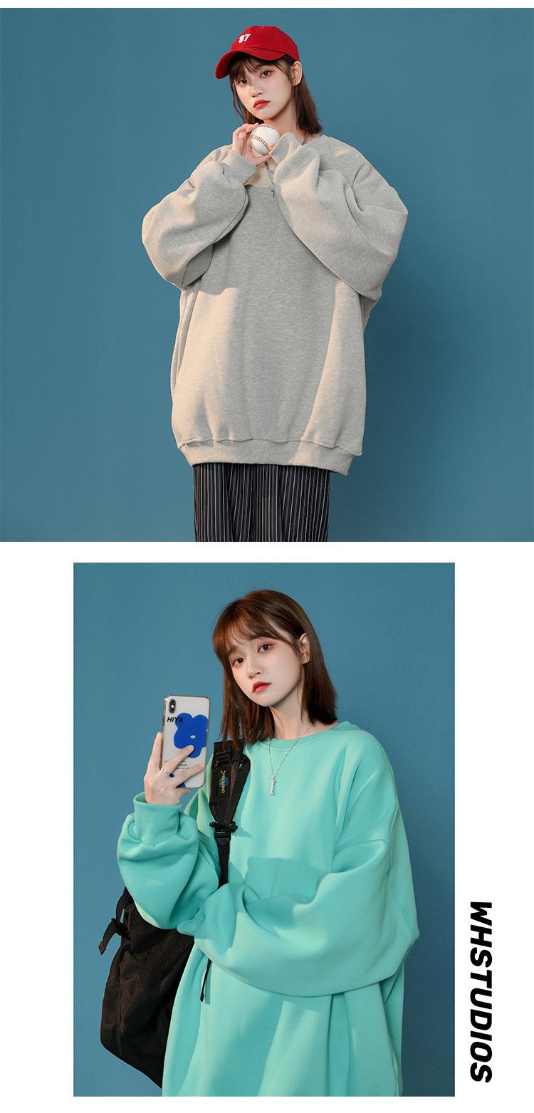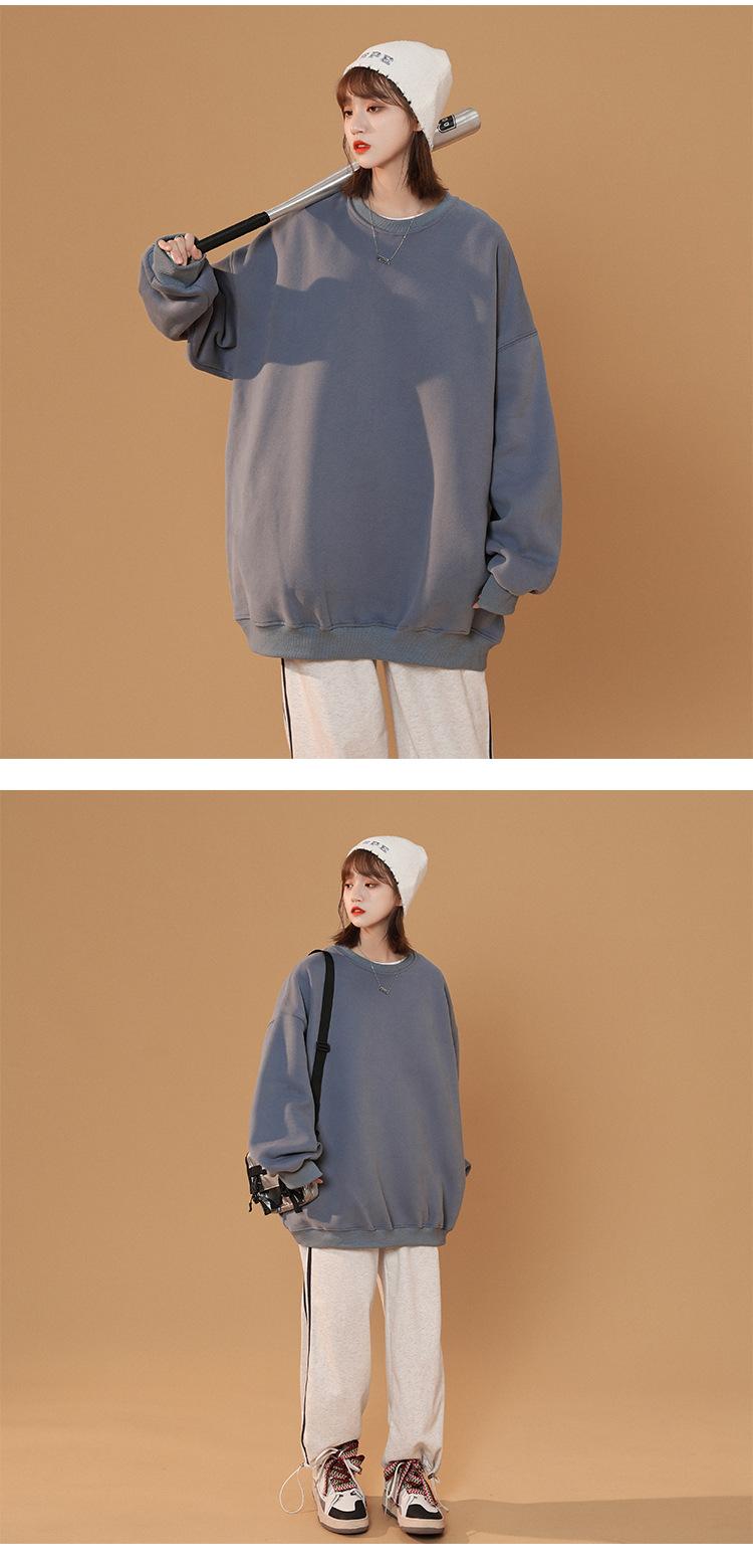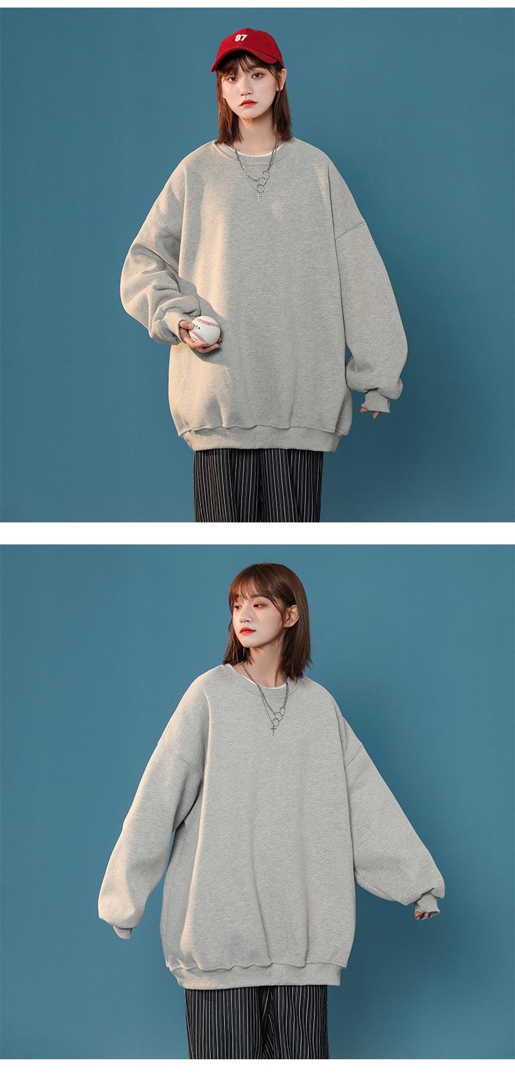 S-5XL talla grande Sudadera de cuello redondo de color sólido para mujer Pareja Manga larga Jersey Chaqueta Sudadera de placa ligera