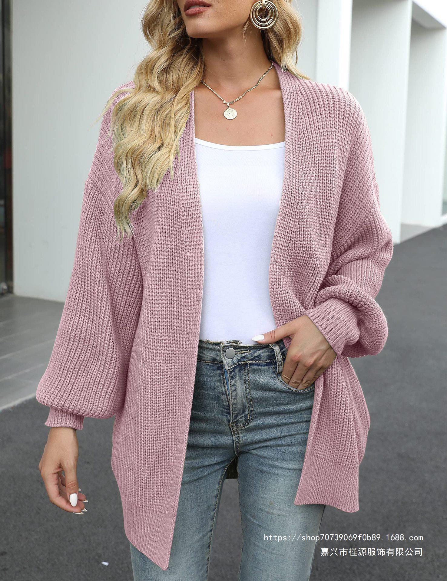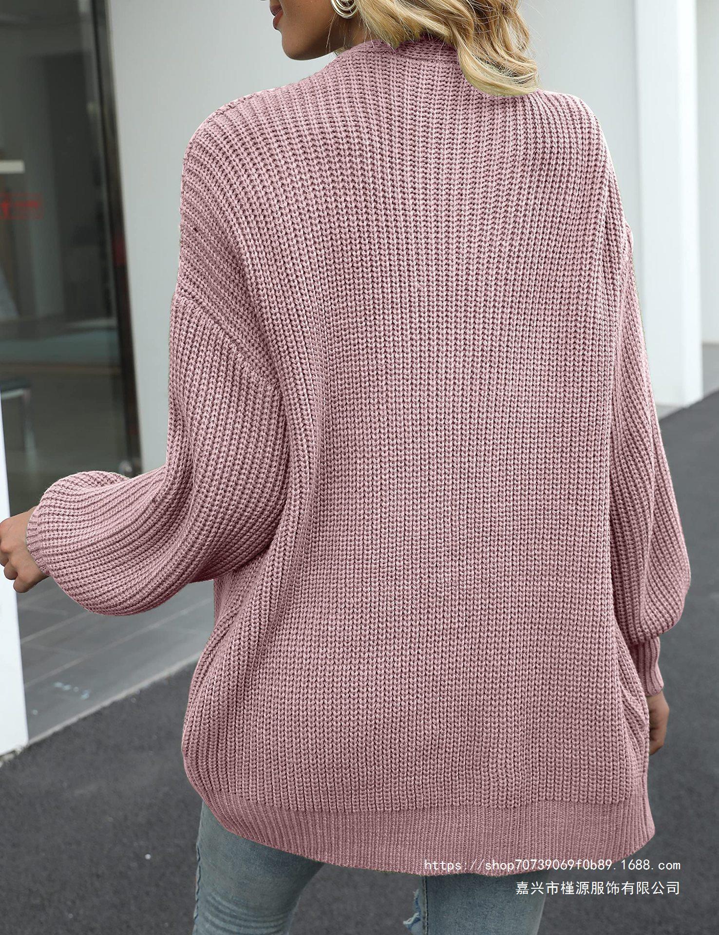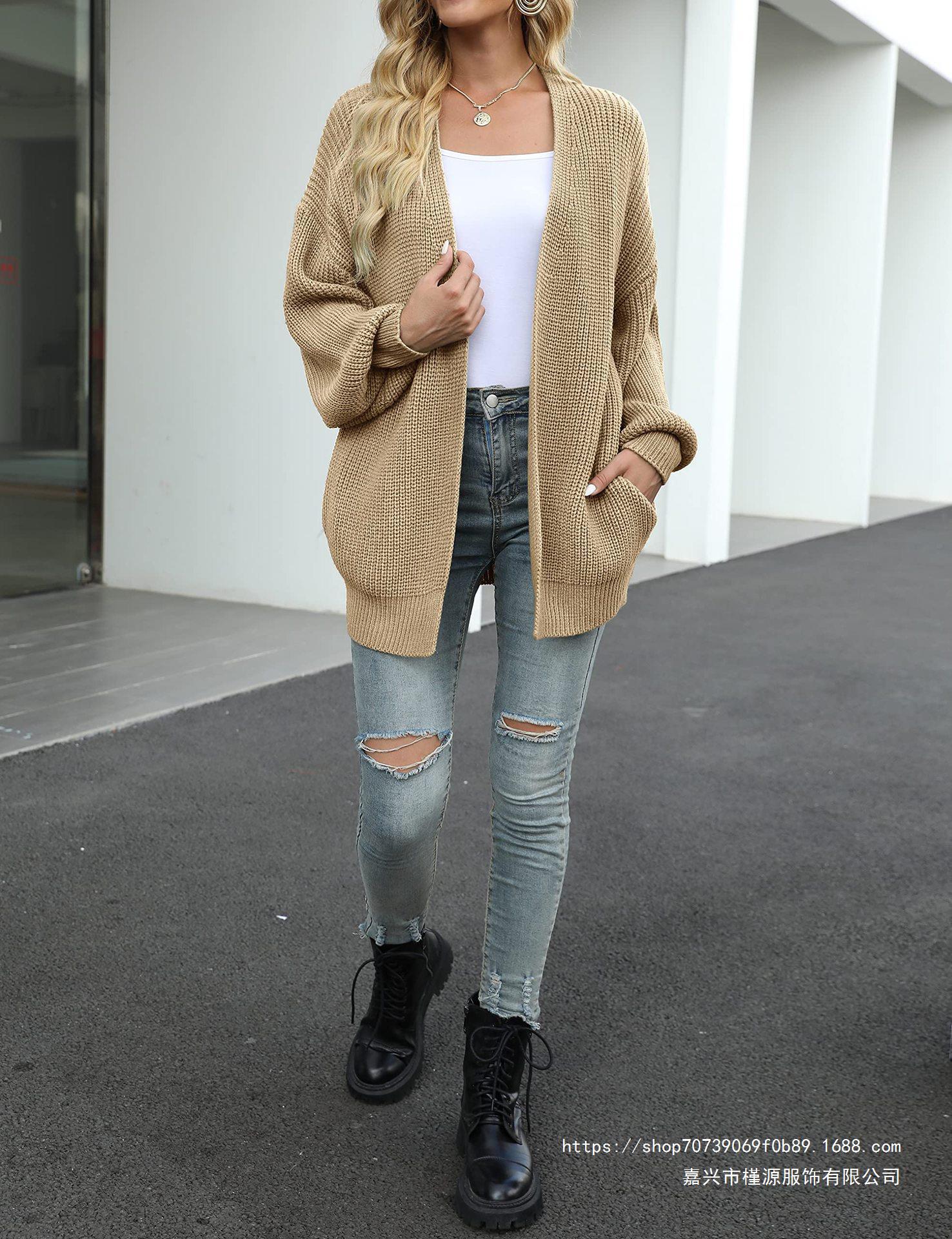 Amazon Comercio Exterior Cárdigan de Punto de Galga Gruesa con Manga Farol para Mujer 2025 Otoño e Invierno Nuevo Suéter Tejido con Bolsillos Chaqueta para Mujer