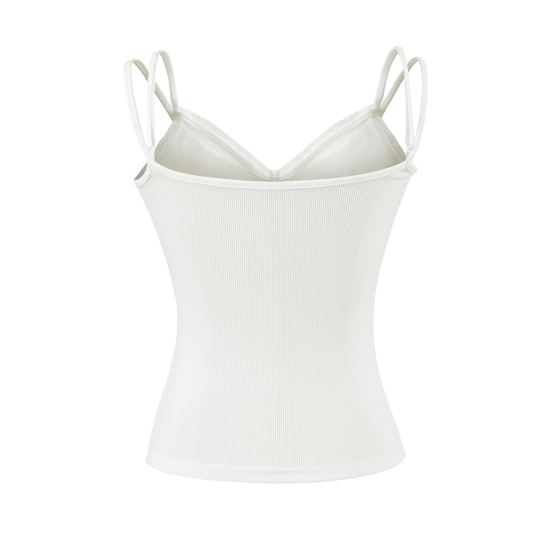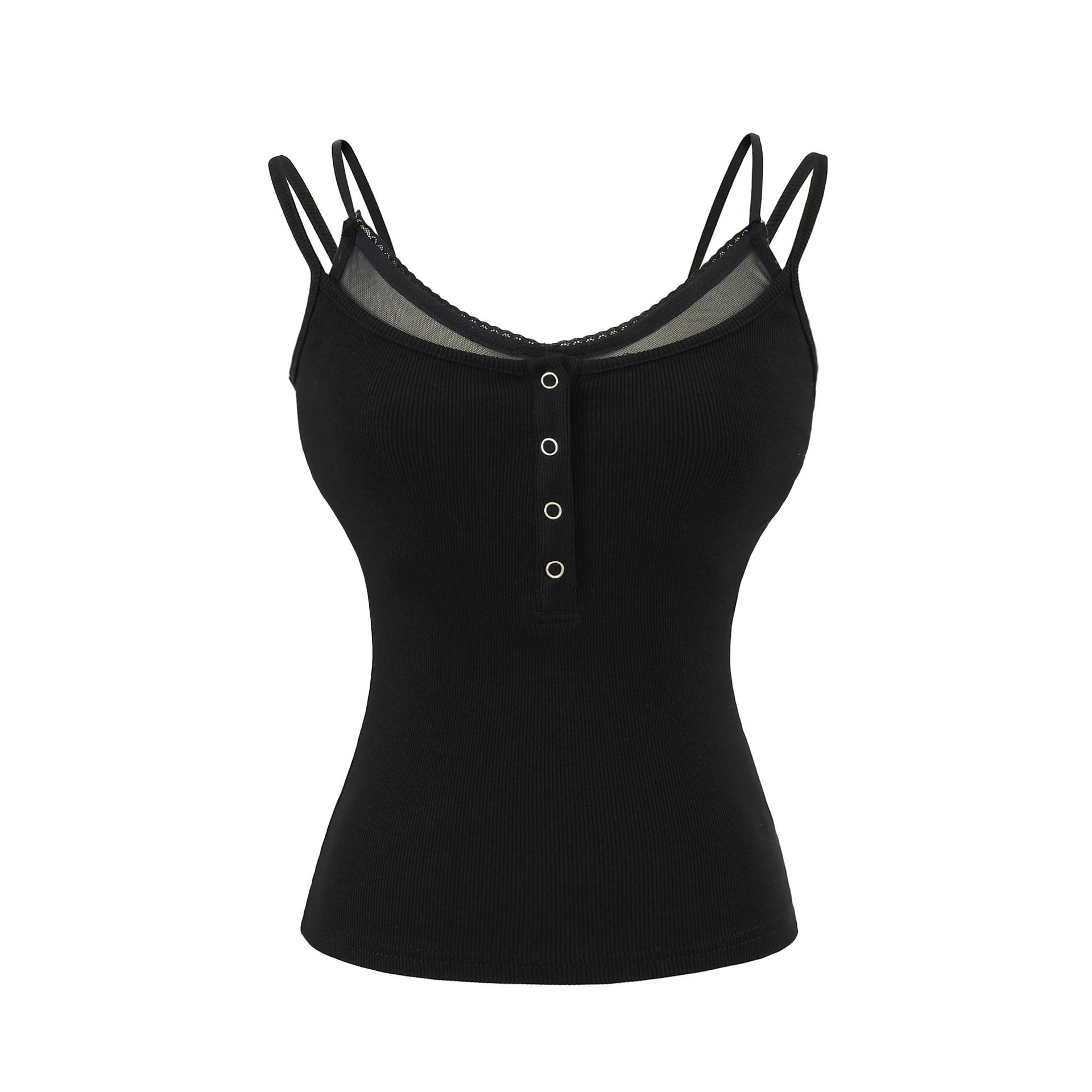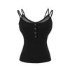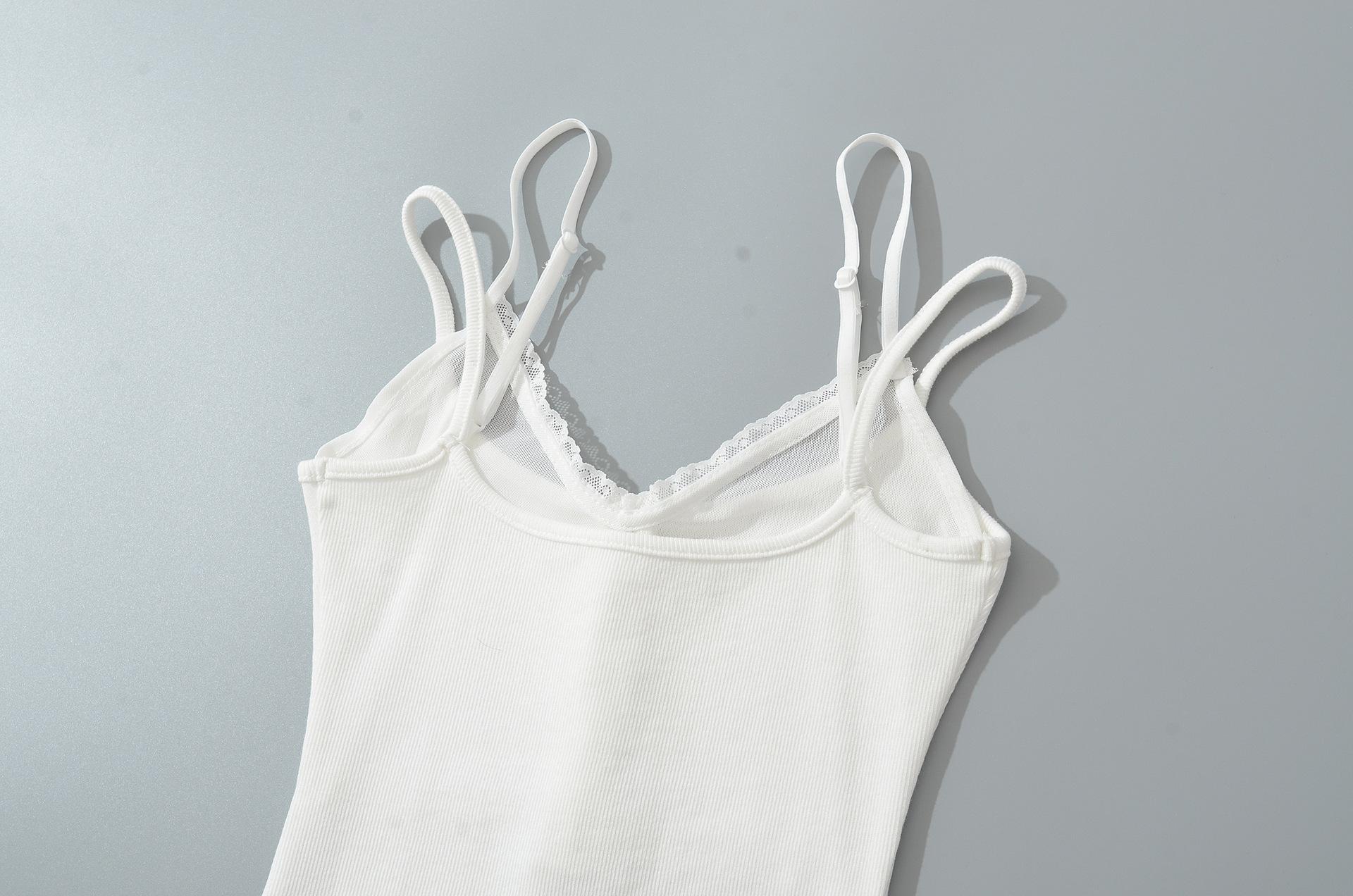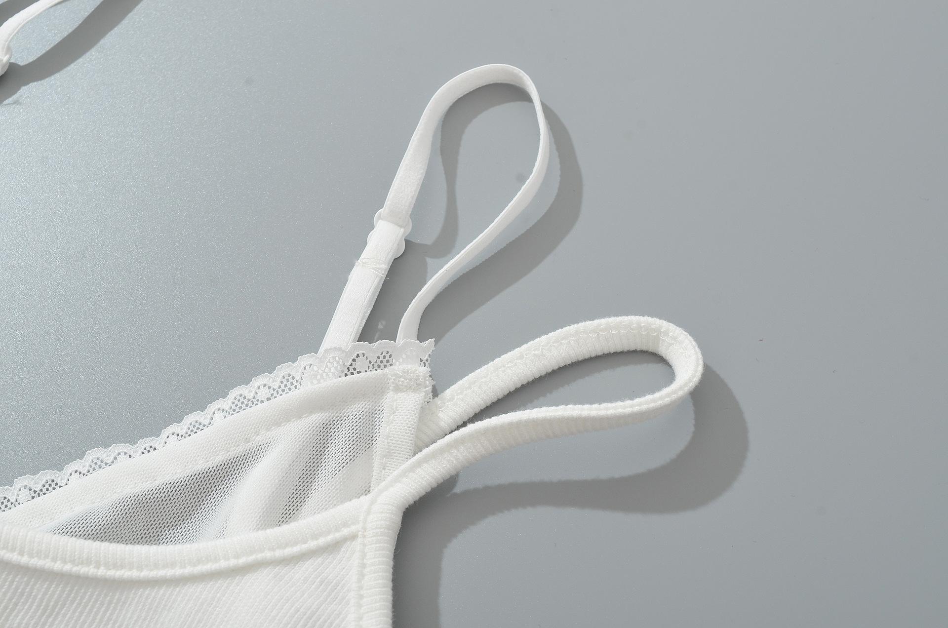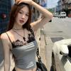 Top Americano Sexy de Dos Piezas Falsas para Verano Nuevo de Encaje con Parche de Canalé Ropa Exterior Espalda Hermosa