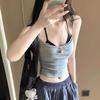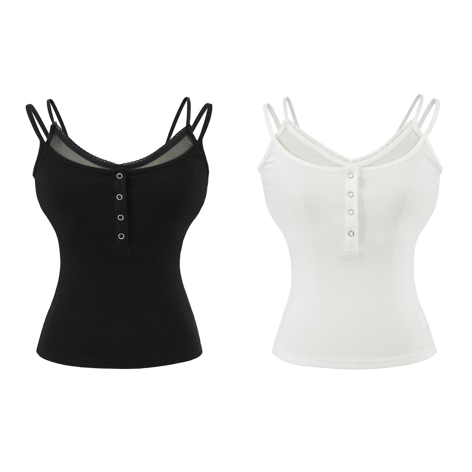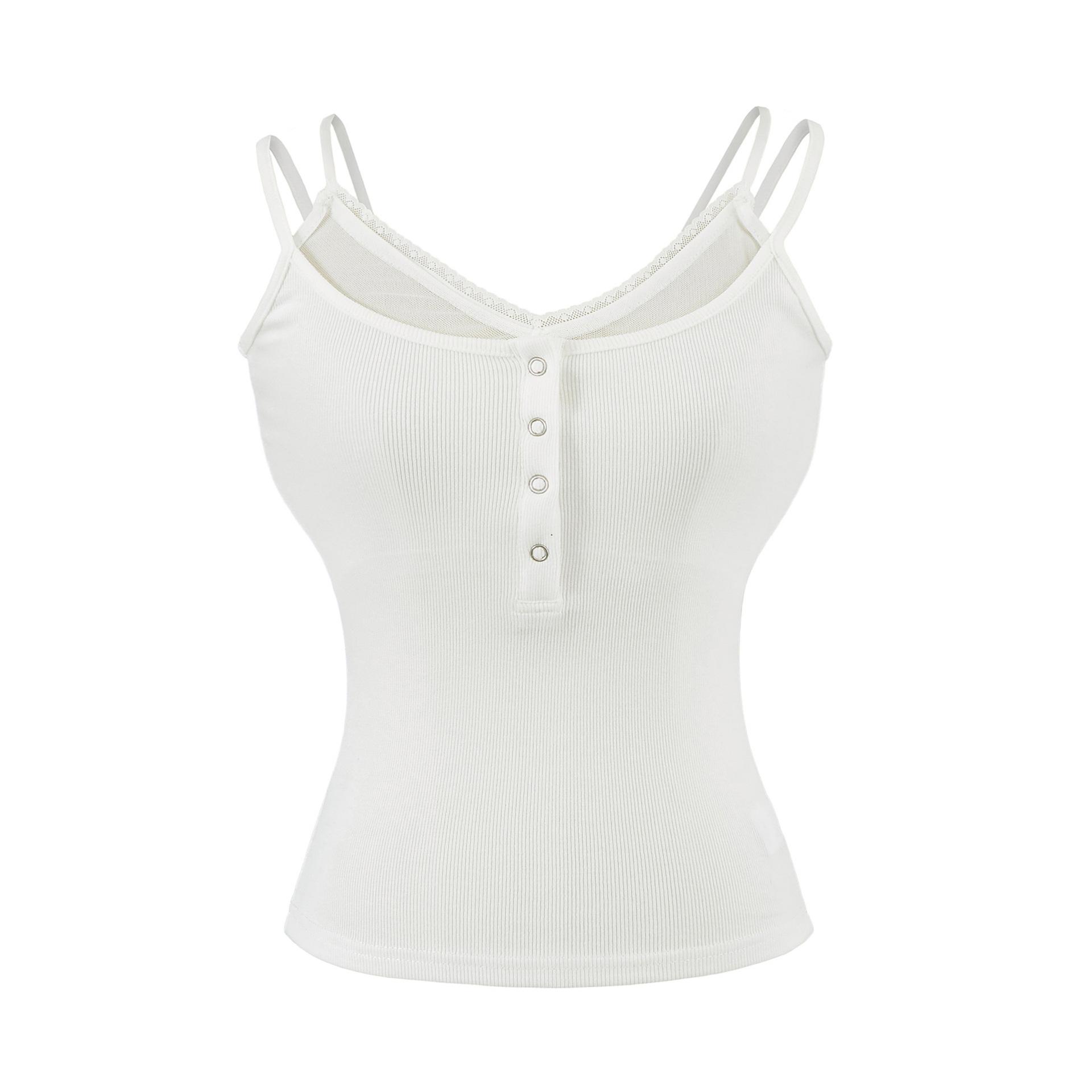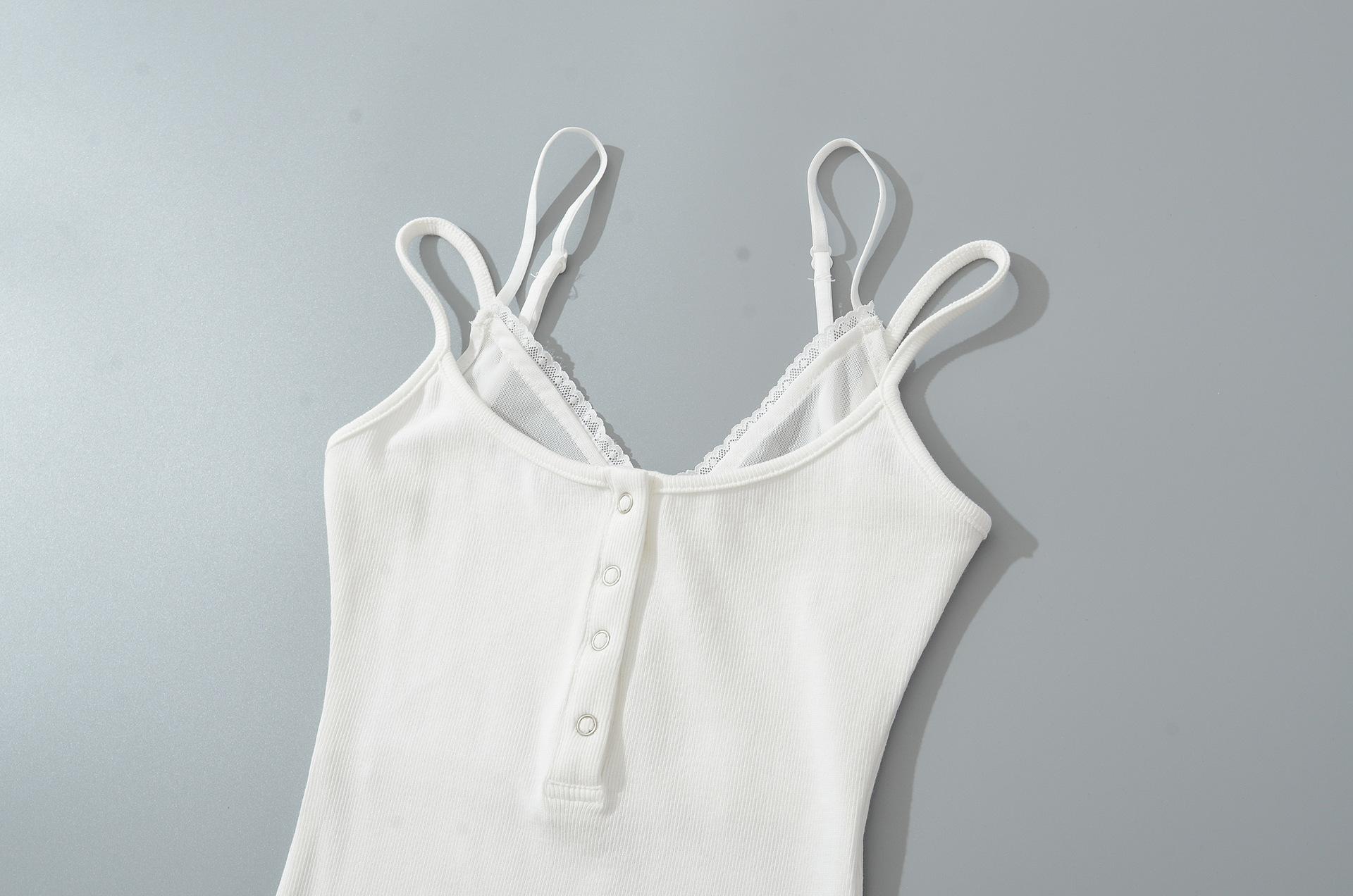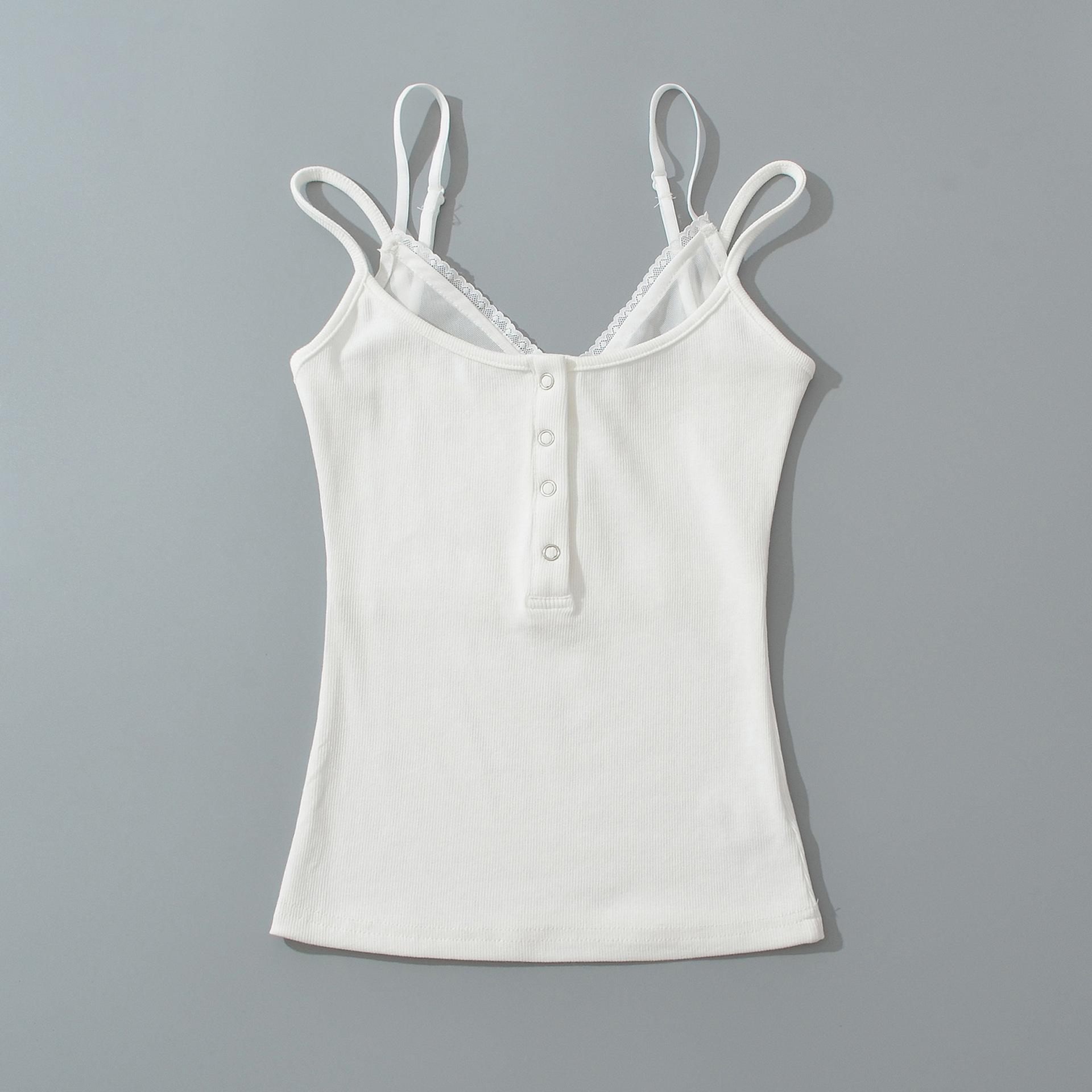 Top Americano Sexy de Dos Piezas Falsas para Verano Nuevo de Encaje con Parche de Canalé Ropa Exterior Espalda Hermosa