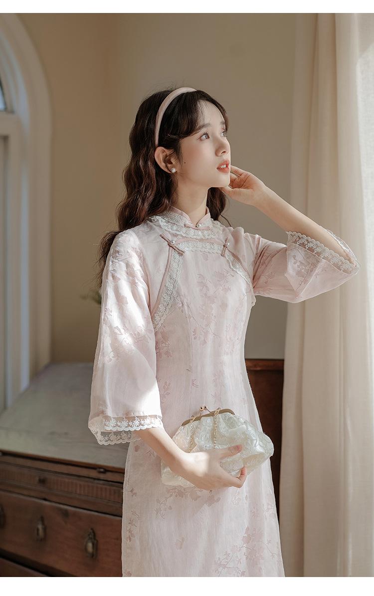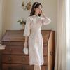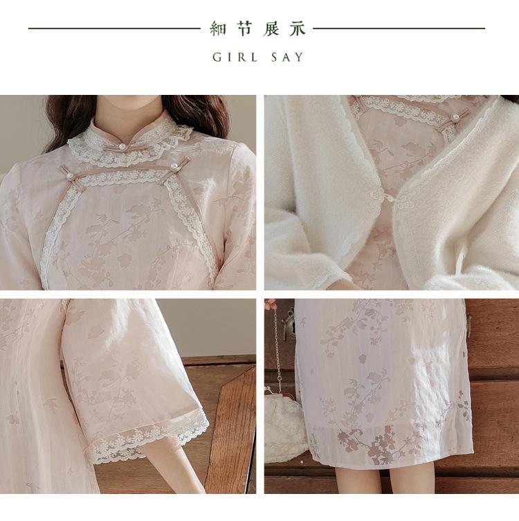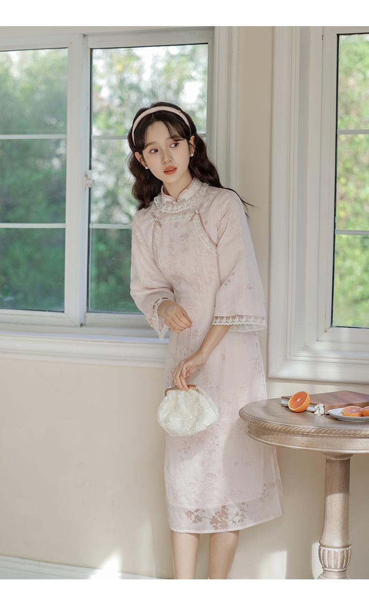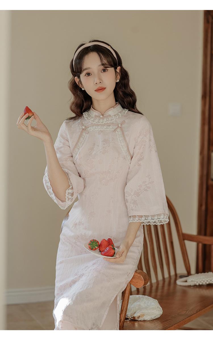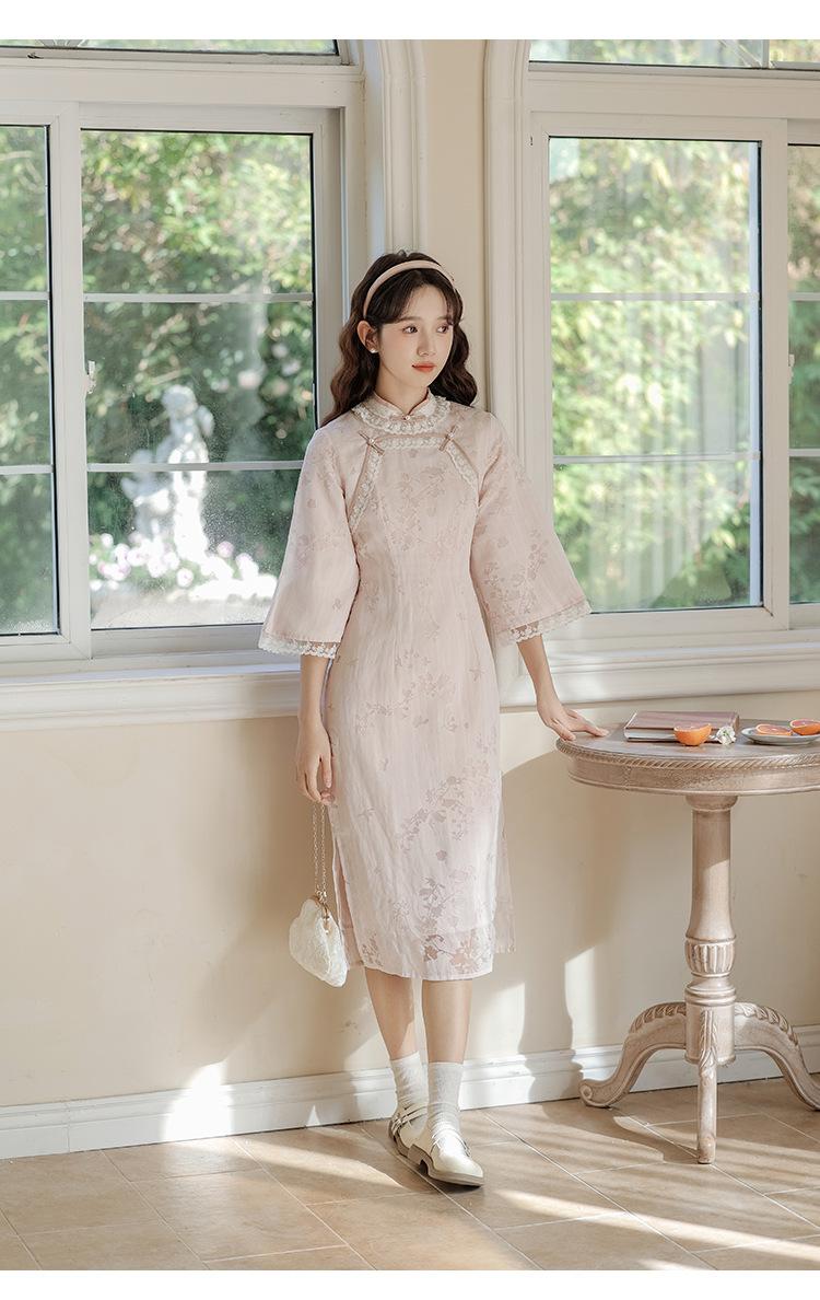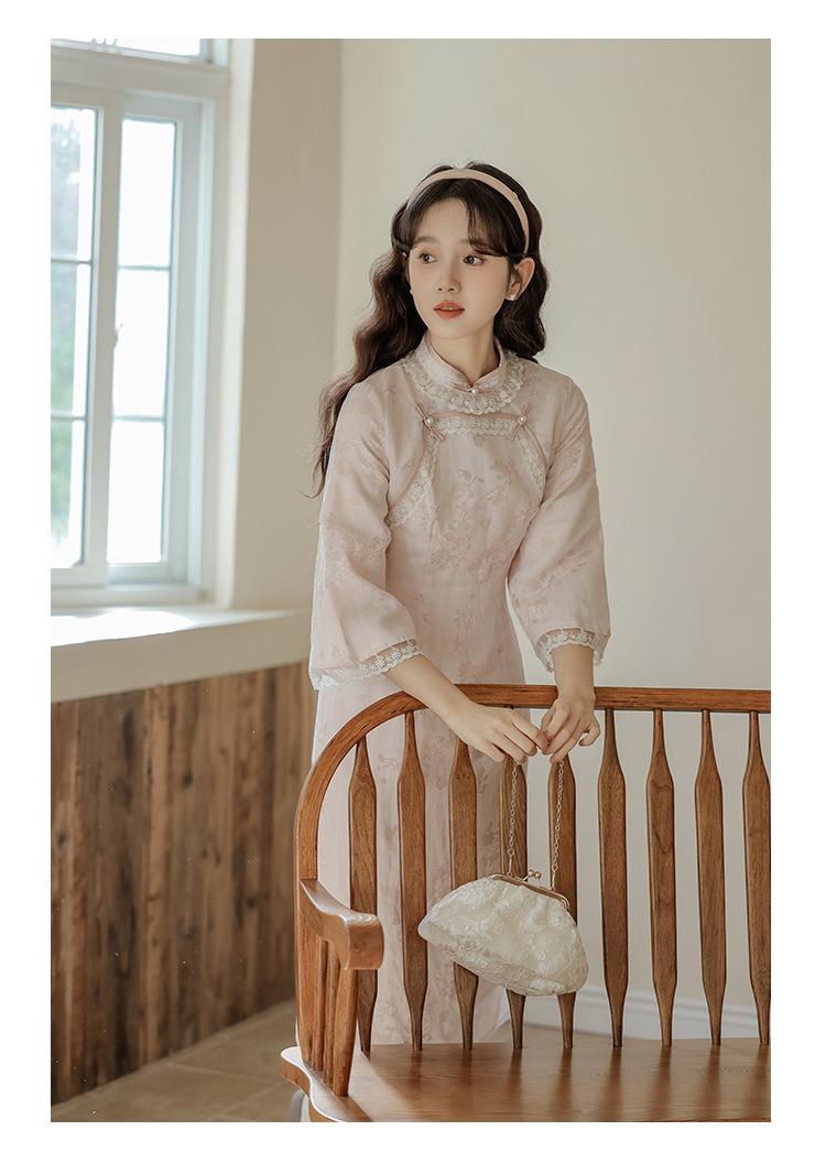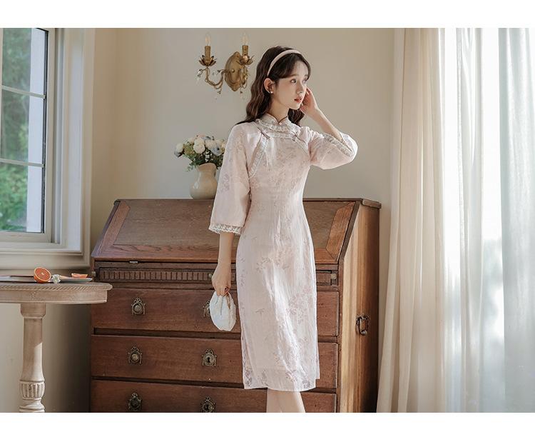 Cheongsam de manga larga para mujer 2025 primavera temprana nuevo estilo nacional retro rosa para niña nuevo chino elegante vestido elegante