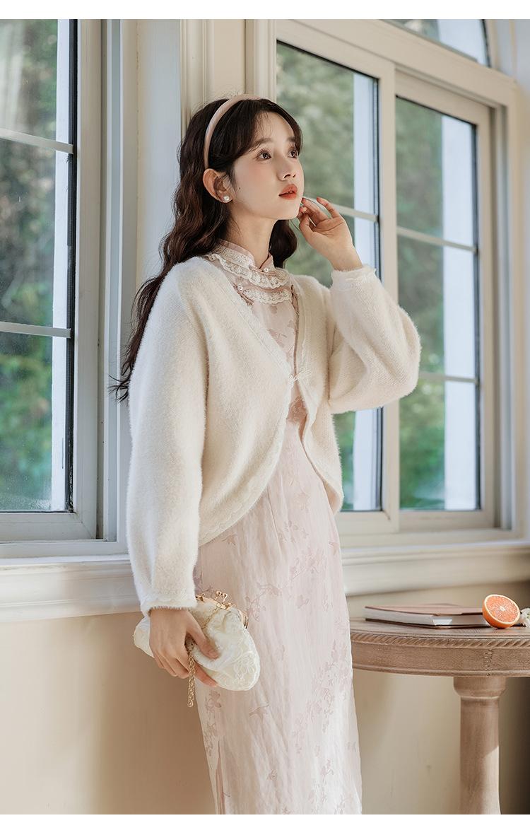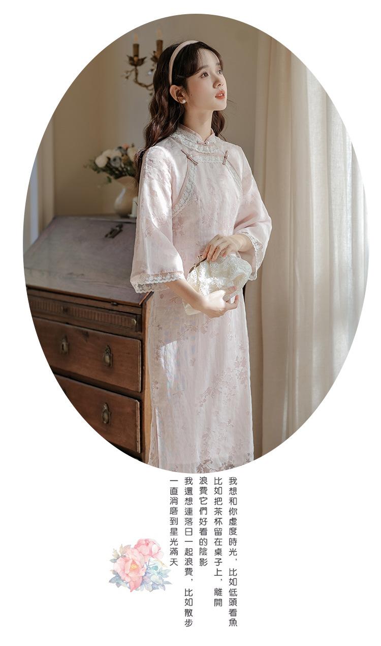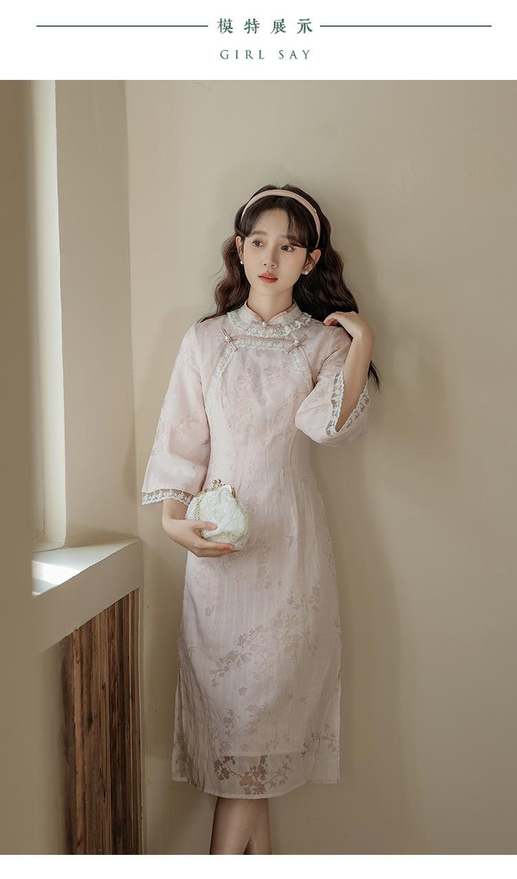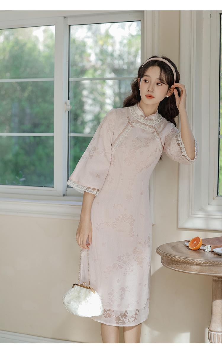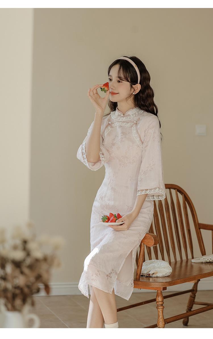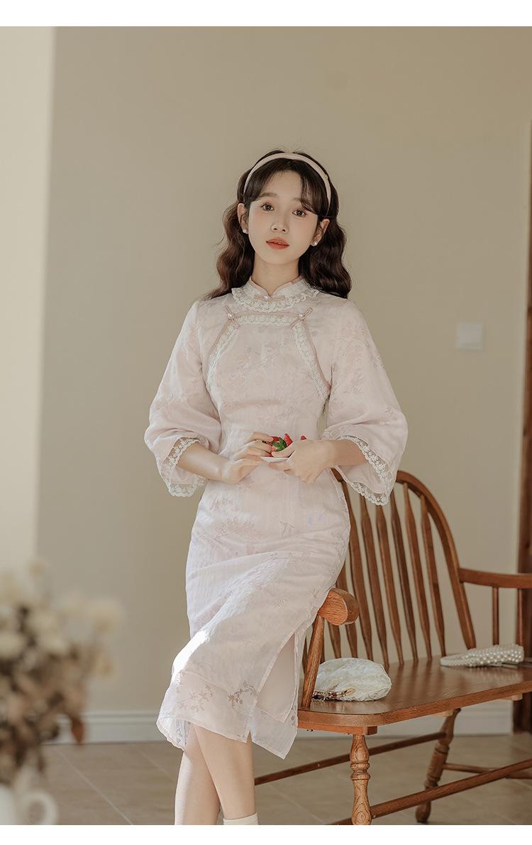 Cheongsam de manga larga para mujer 2025 primavera temprana nuevo estilo nacional retro rosa para niña nuevo chino elegante vestido elegante