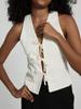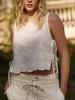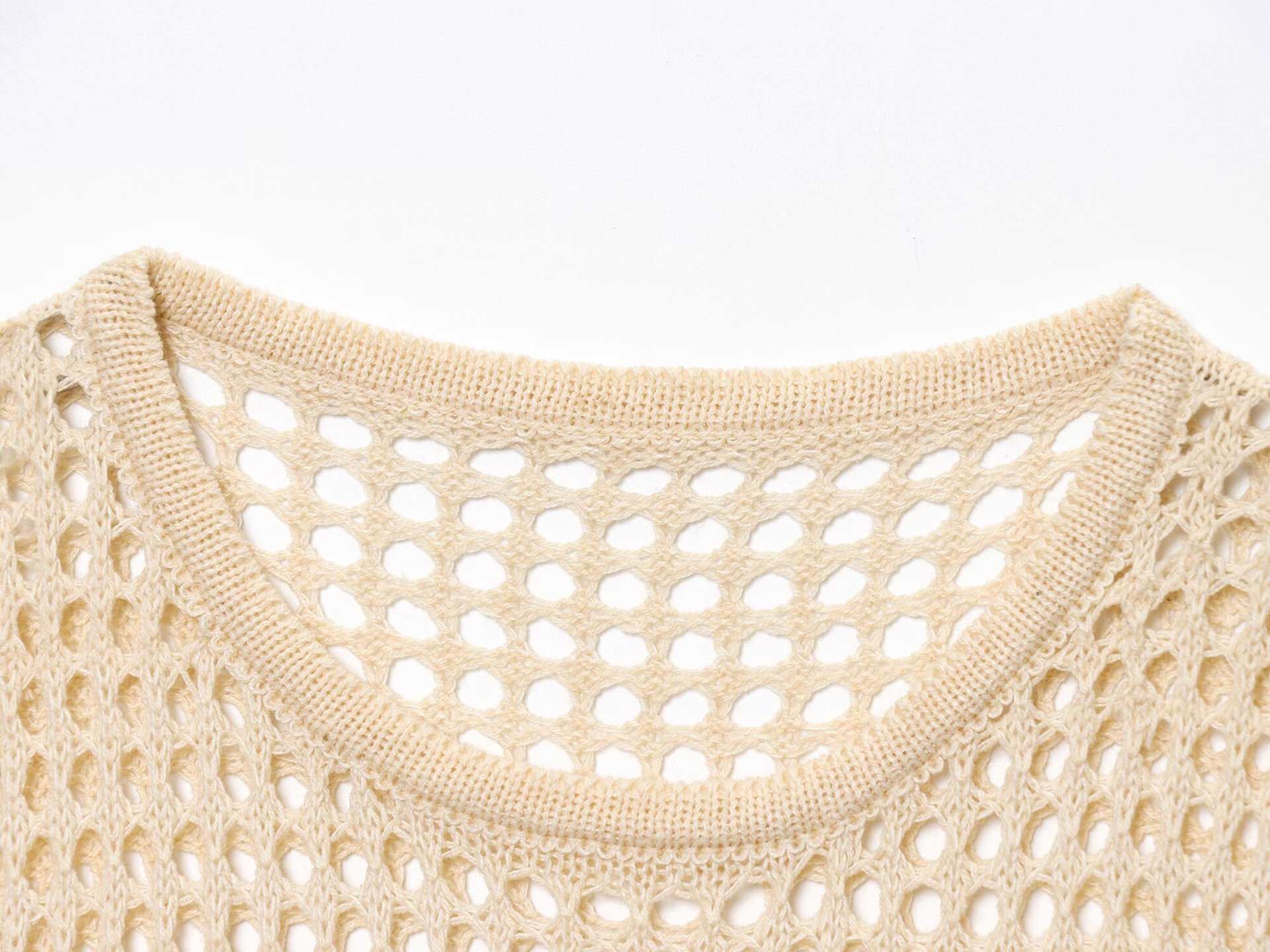 Venta al por mayor Estilo Europeo y Americano Calado Floral Moda Transfronteriza Chaleco Chaleco de Crochet Nuevo Cuello Redondo Color Albaricoque